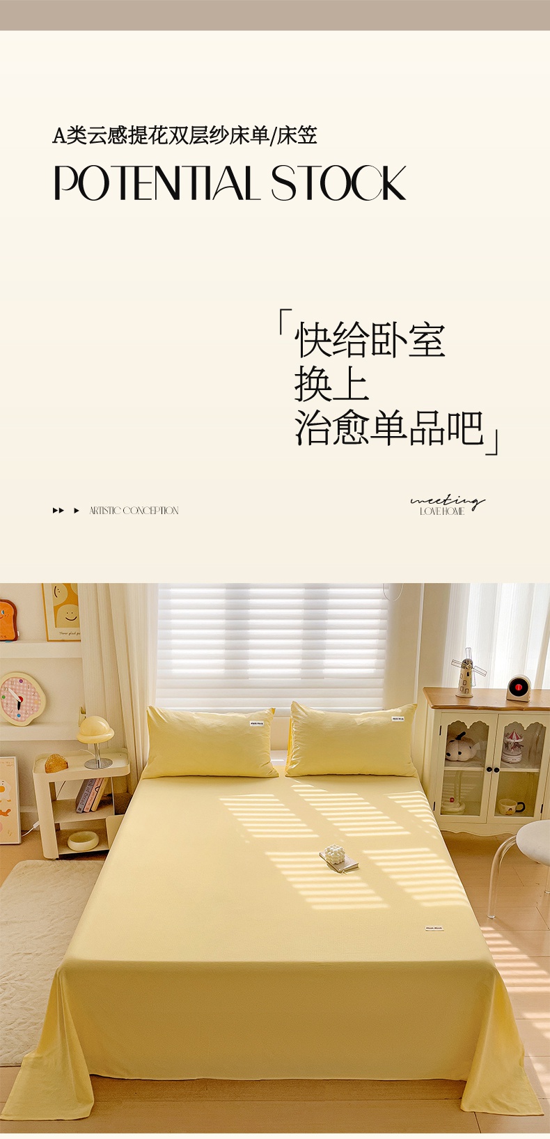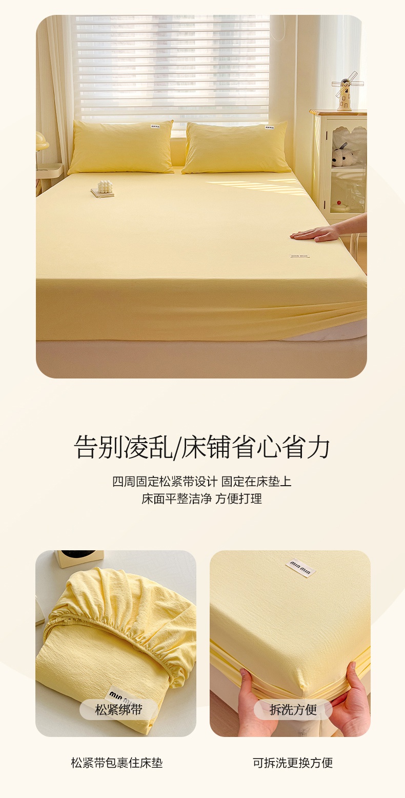 商品名称:罗亿家纺 2025新款云感提花双层纱定标minmin(系列)床笠 奶黄