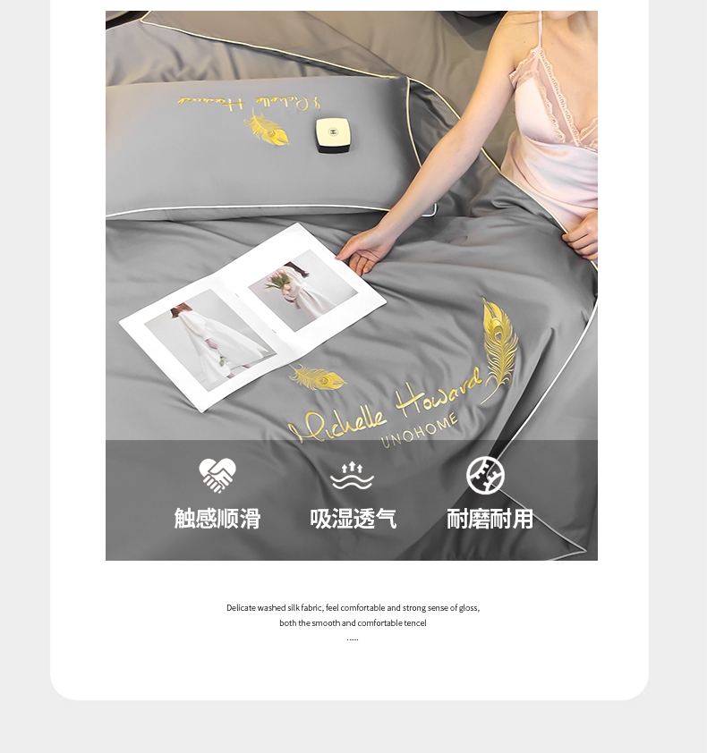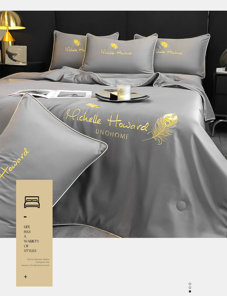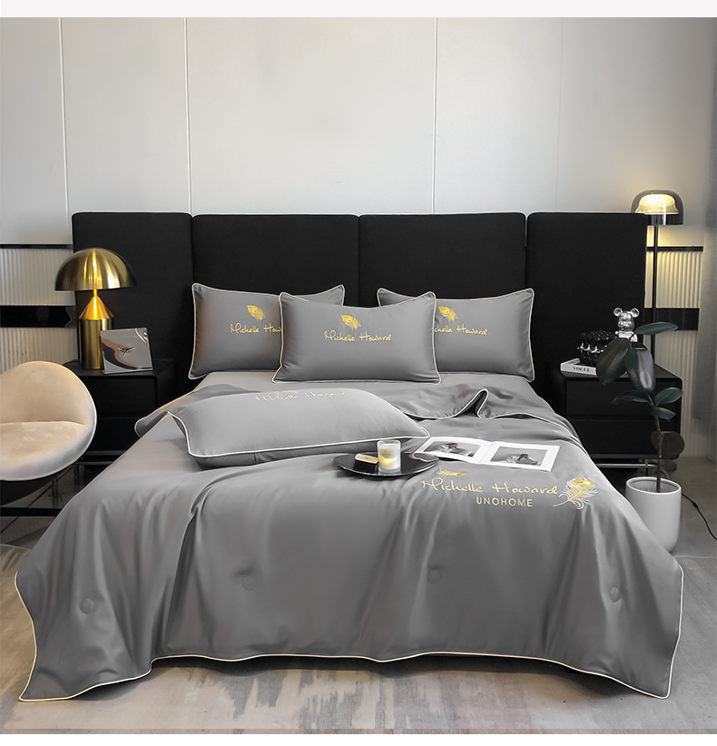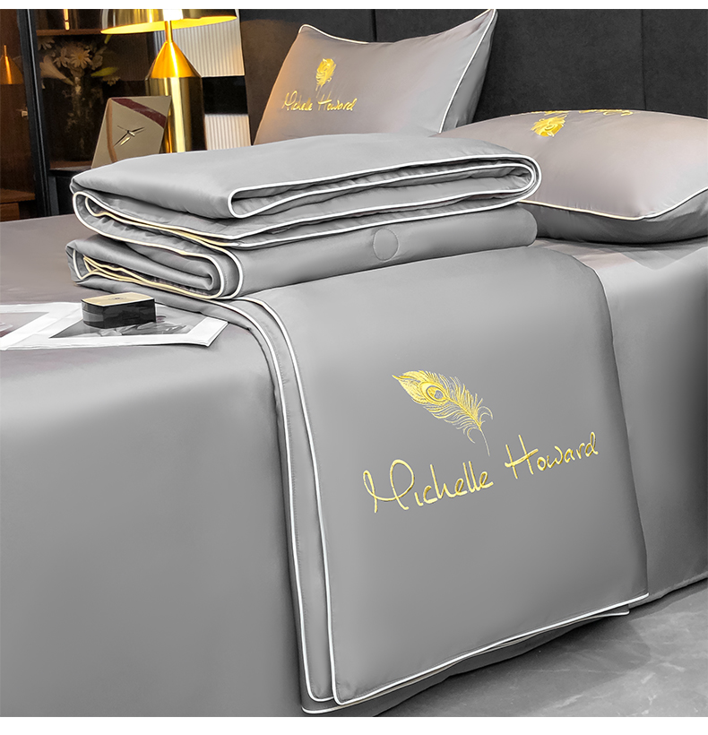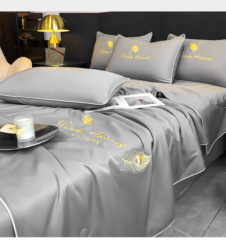 • 91家纺网 家纺一手货源 找家纺 吾诺 2025 双拼及羽毛刺绣夏被四件套绣花夏被水洗天丝夏被水洗真丝夏凉被空调被 羽毛-经典灰