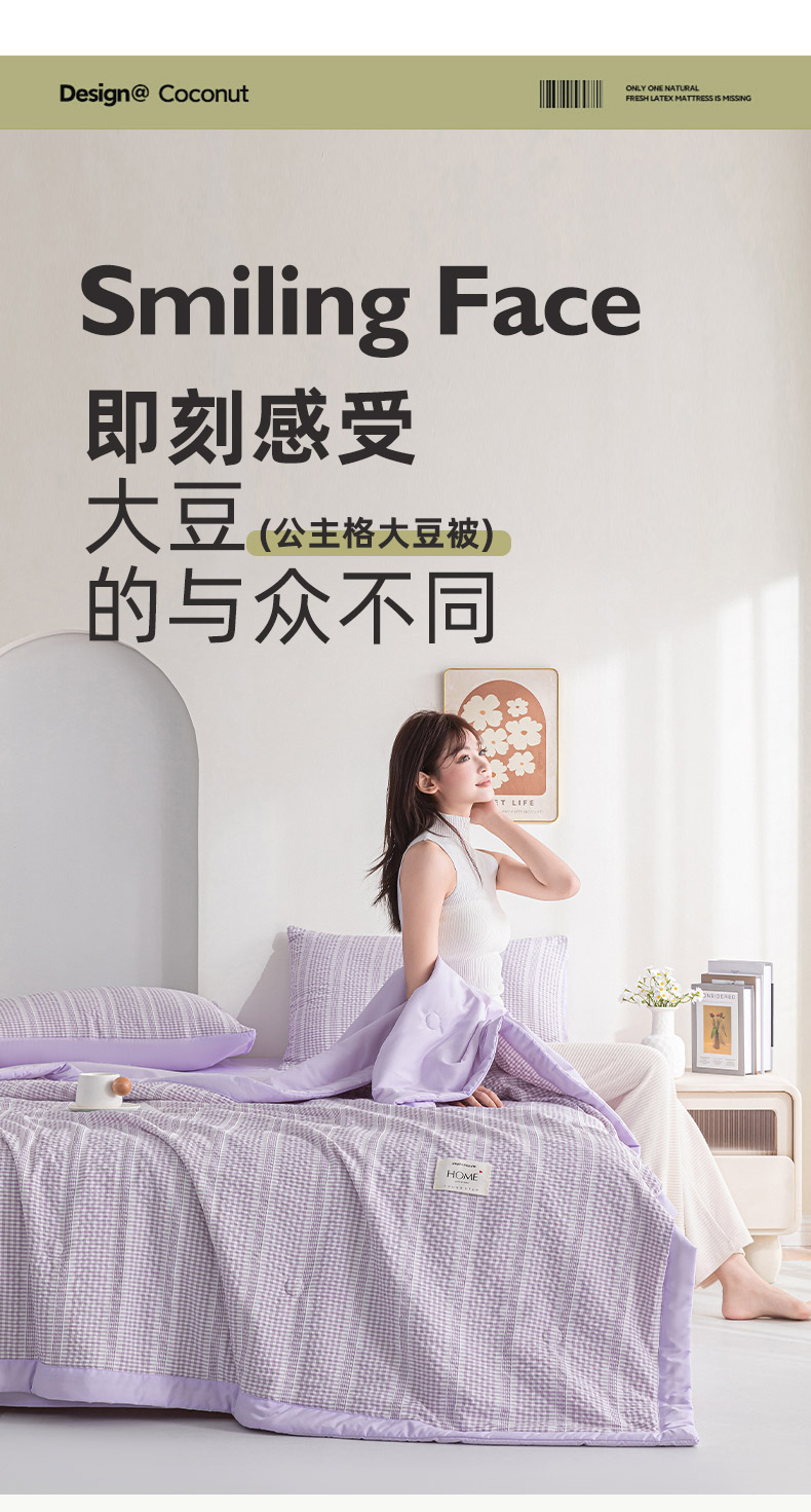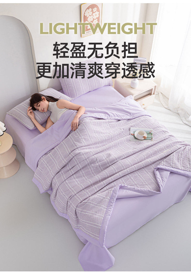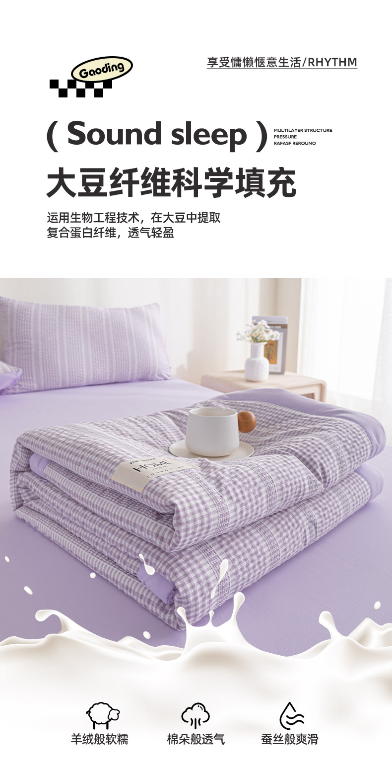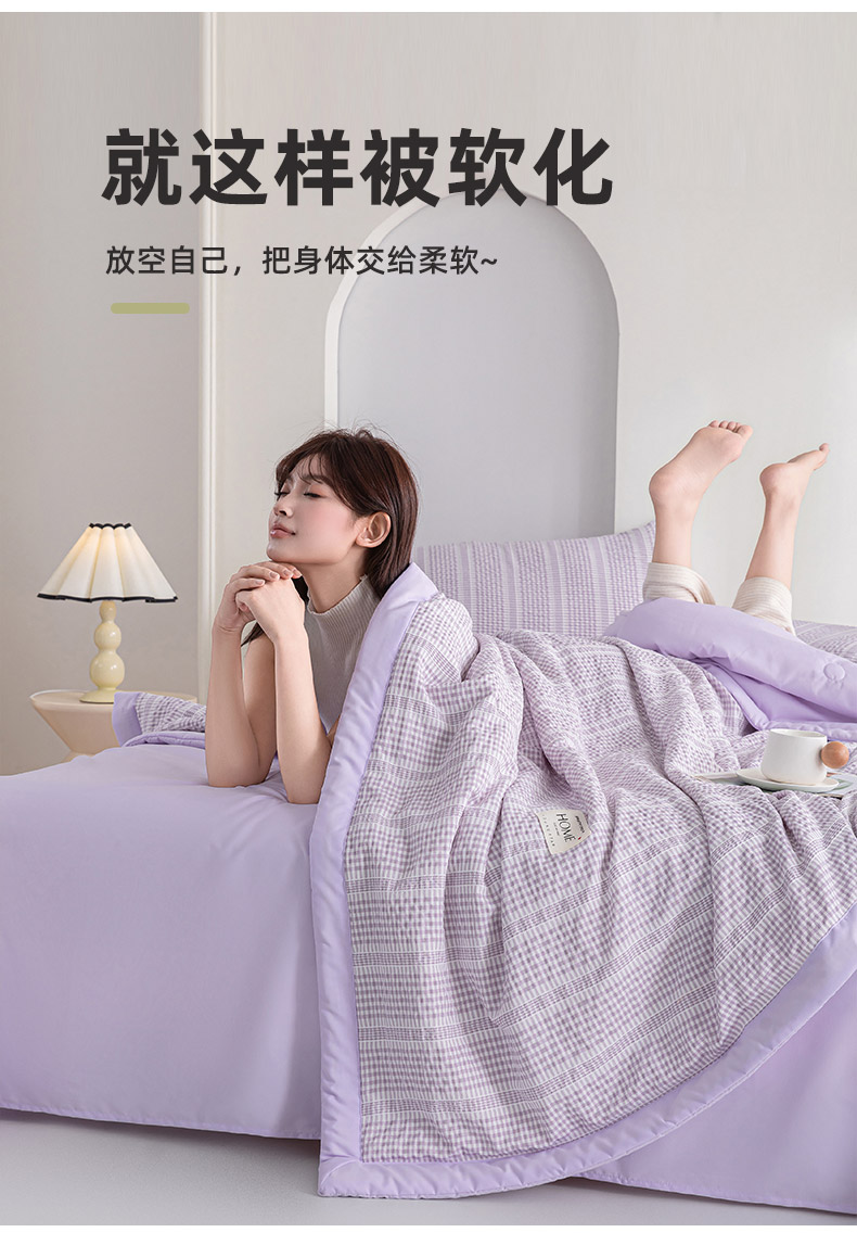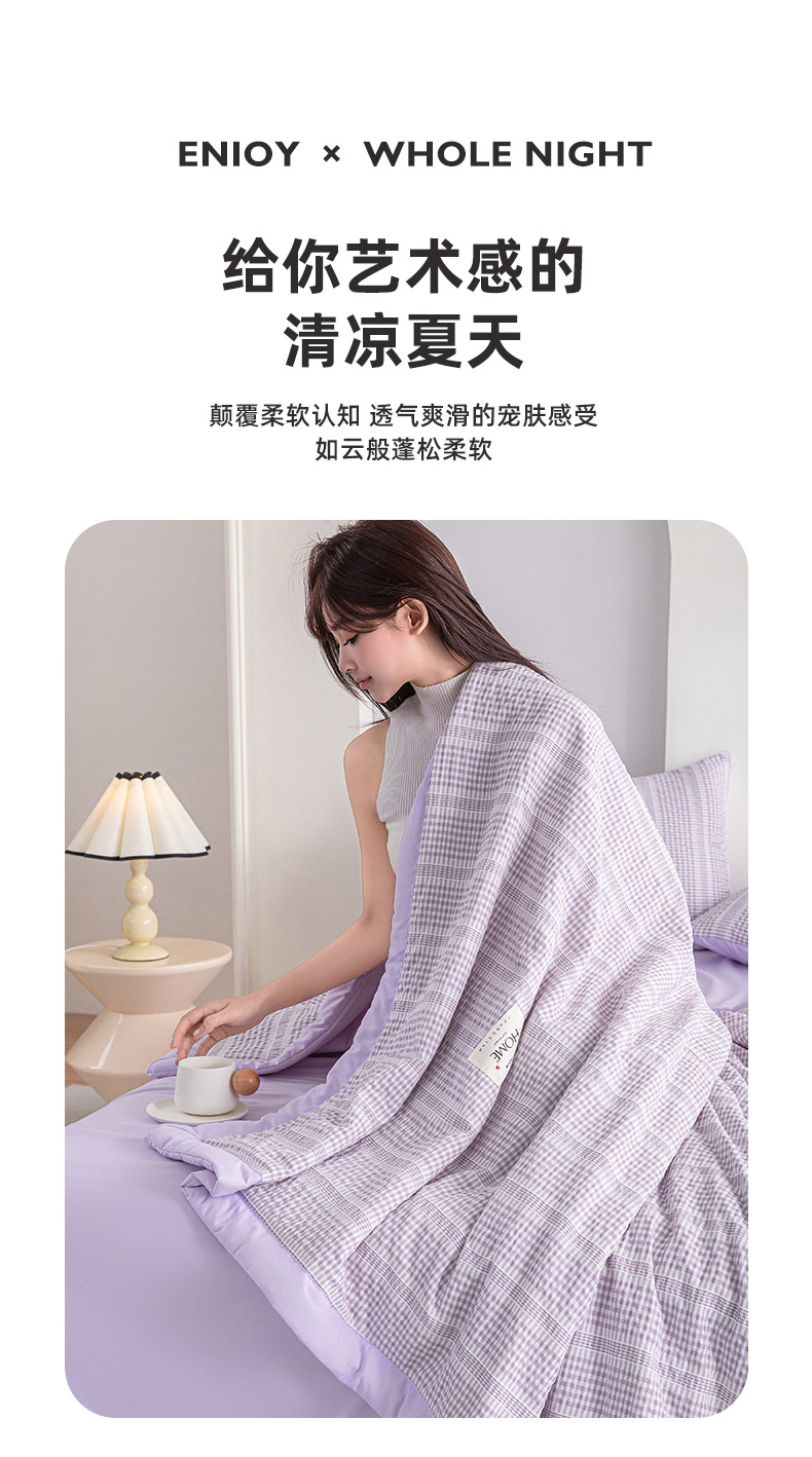 商品名称:吾诺 2025 韩式立体提花公主格大豆夏被子被芯夏凉被夏被四件套 公主格-紫