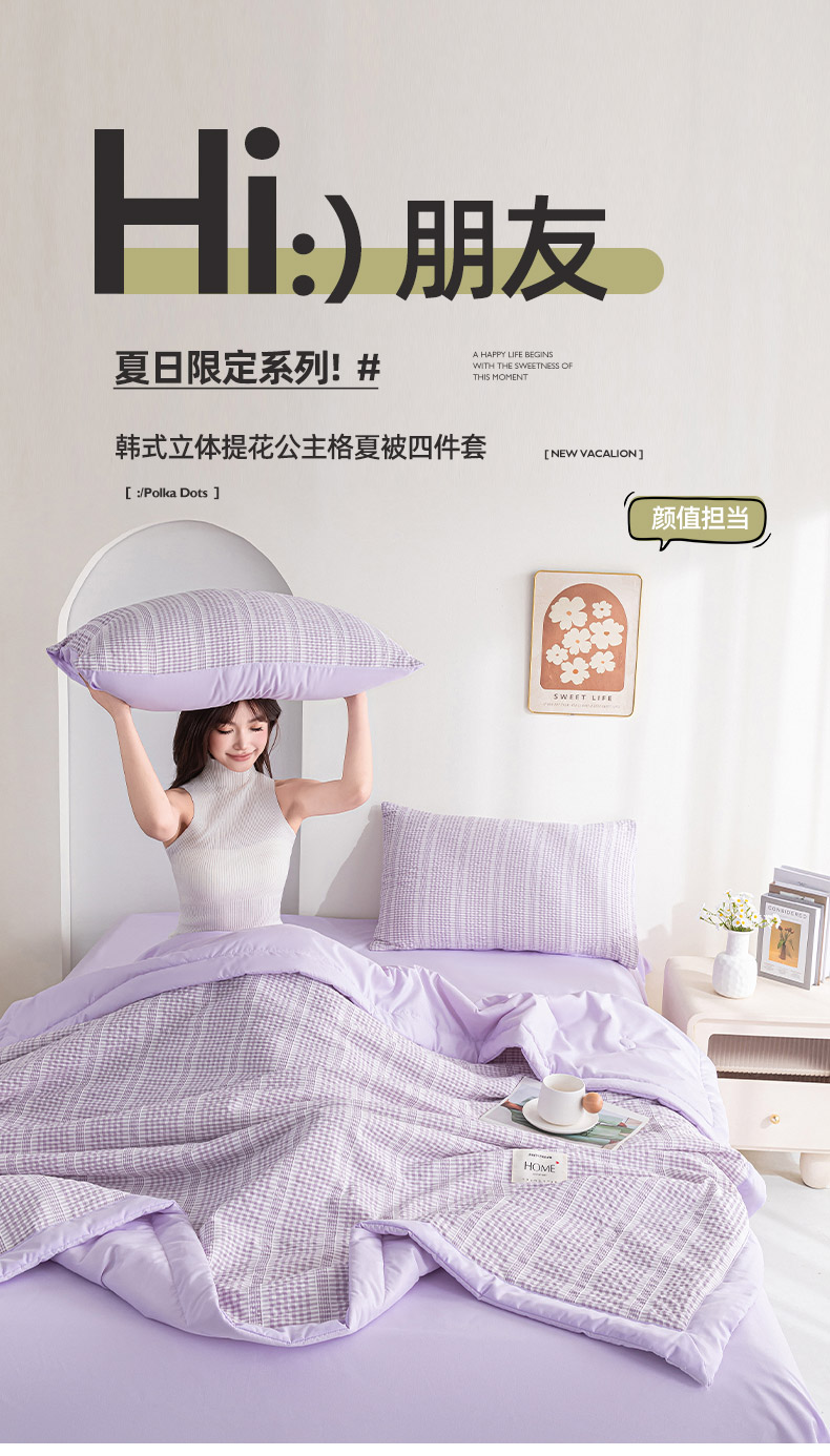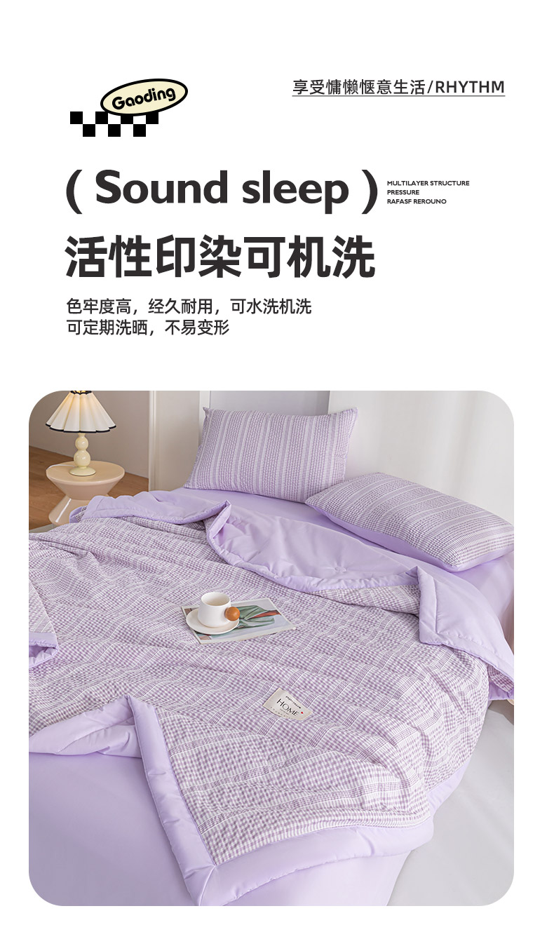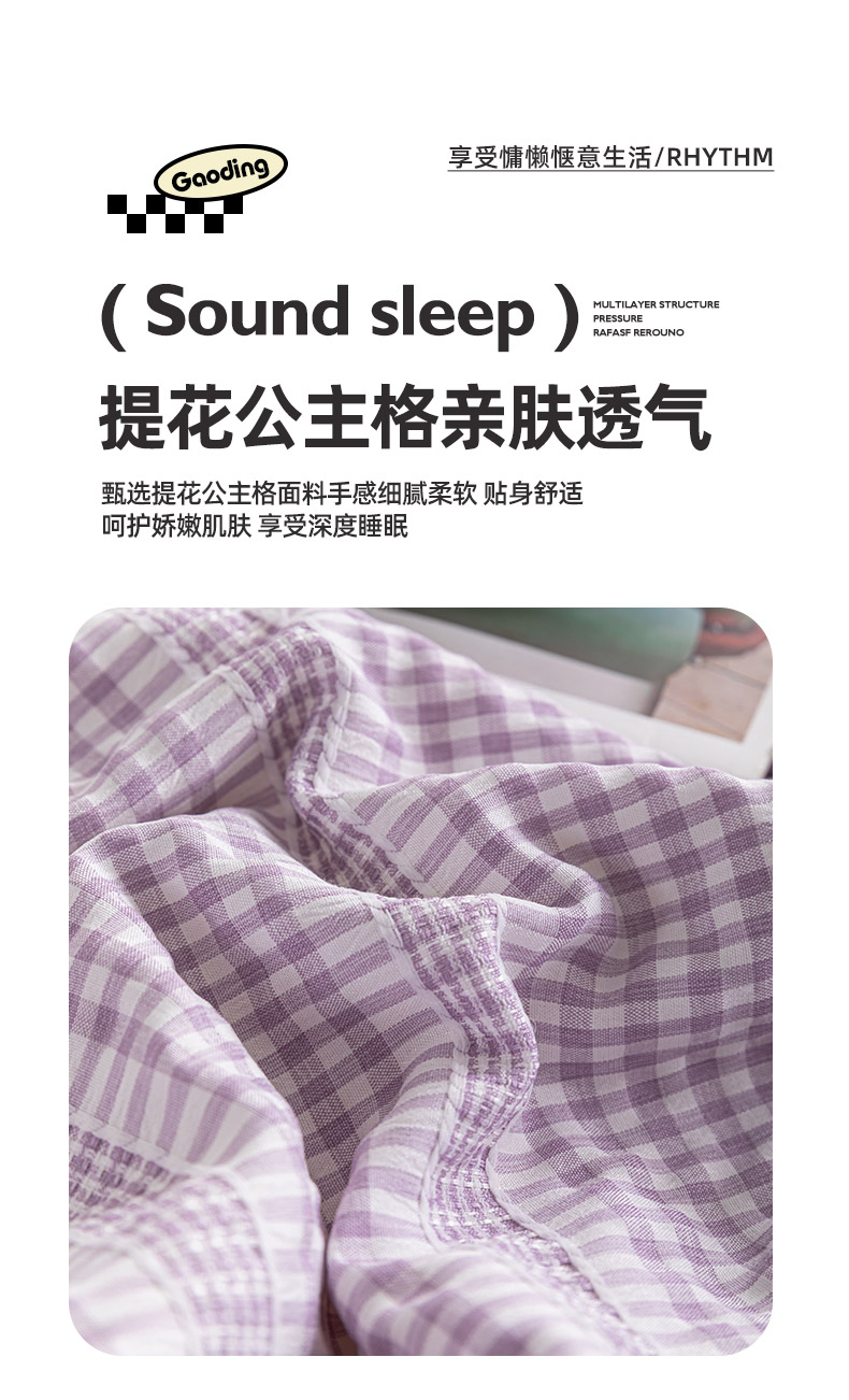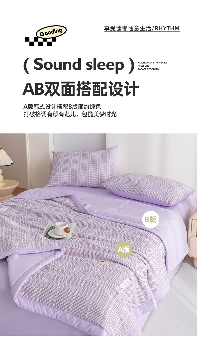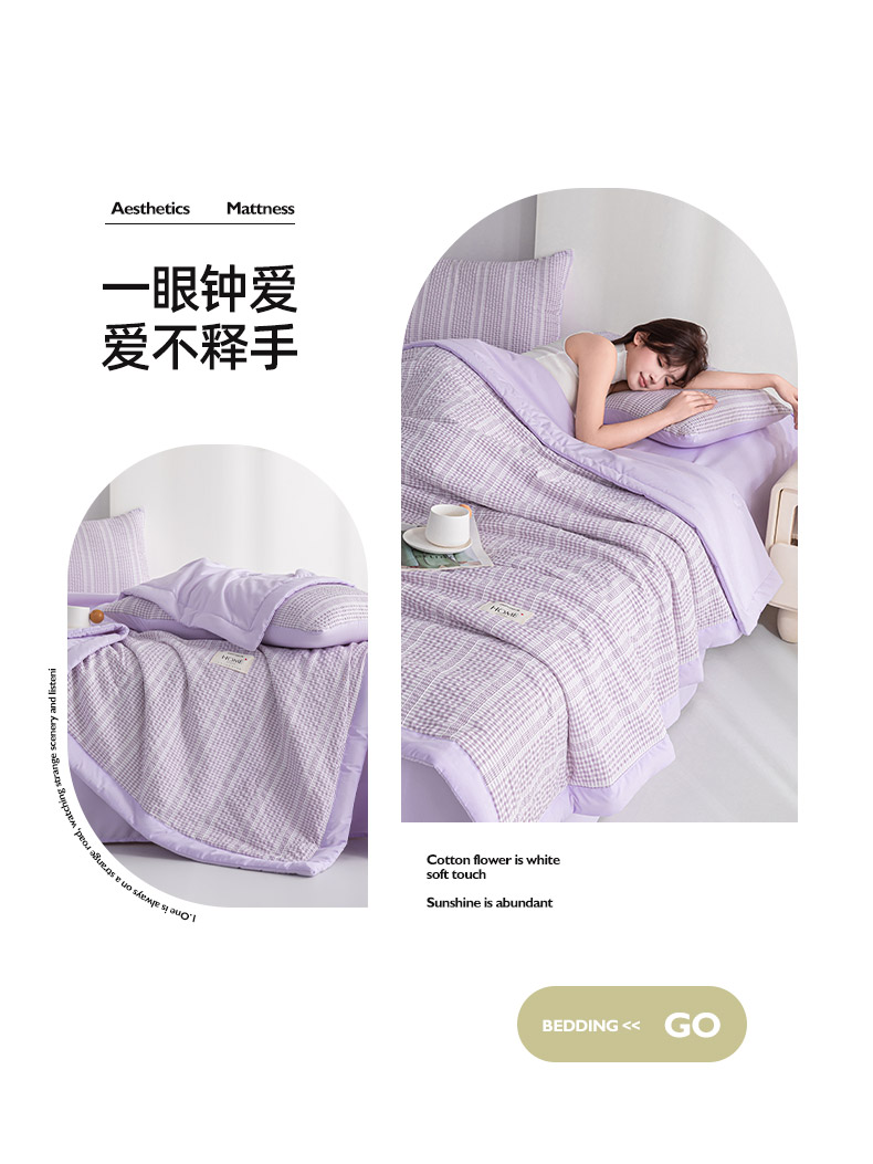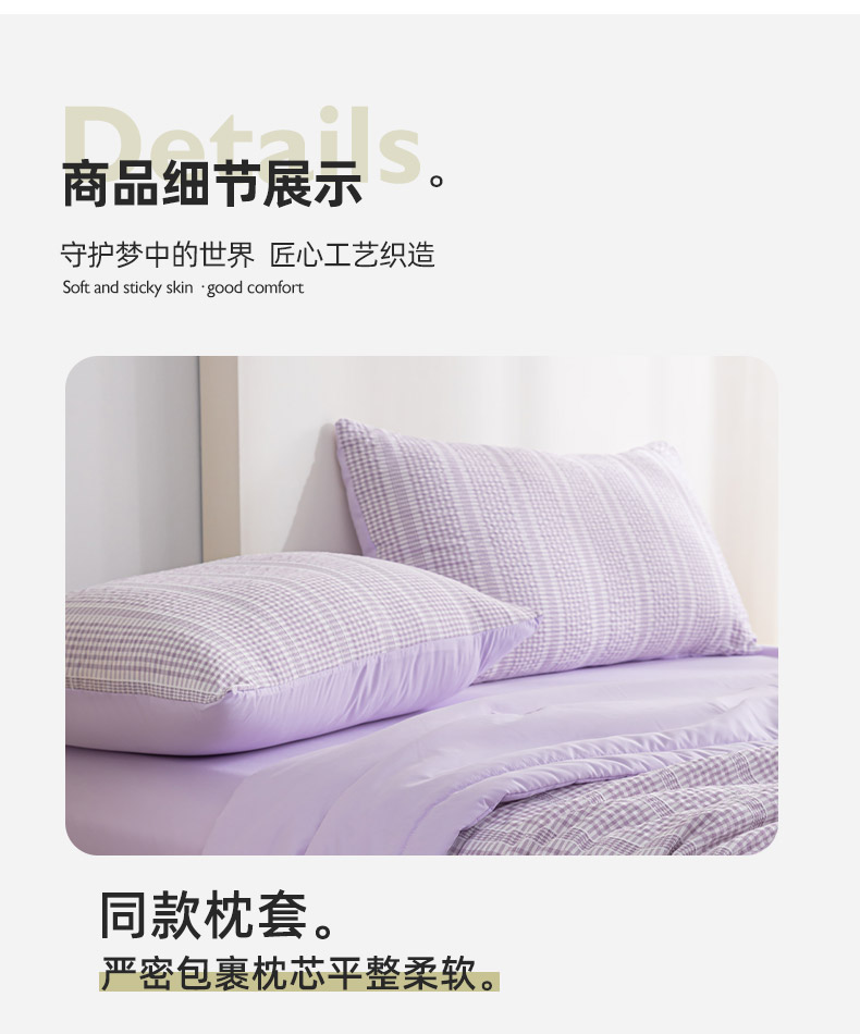 商品名称:吾诺 2025 韩式立体提花公主格大豆夏被子被芯夏凉被夏被四件套 公主格-紫