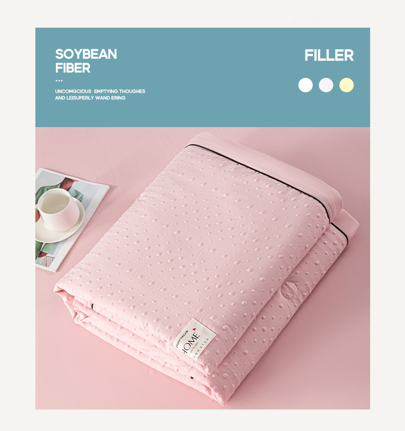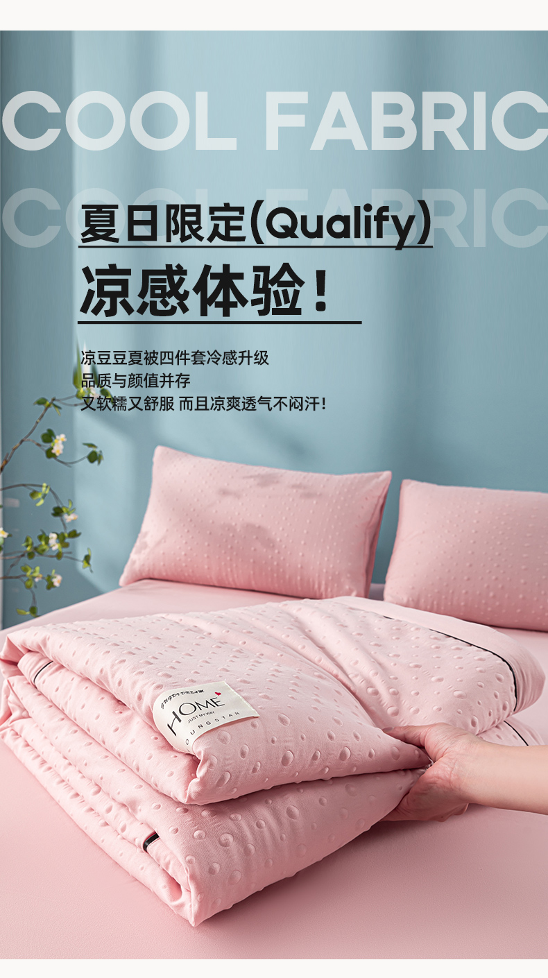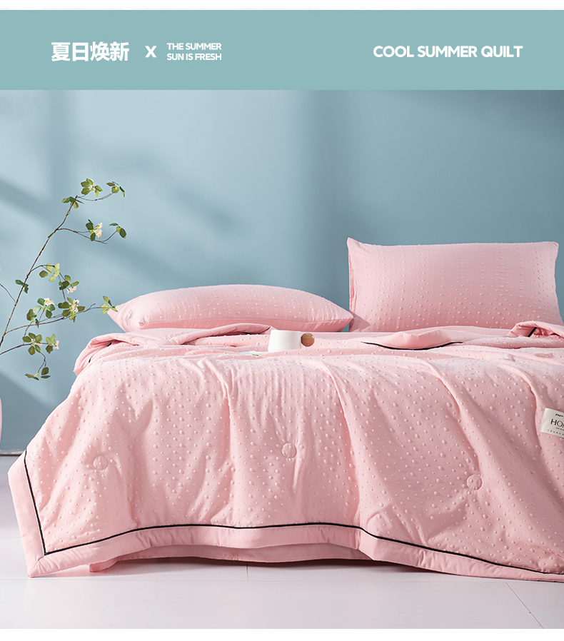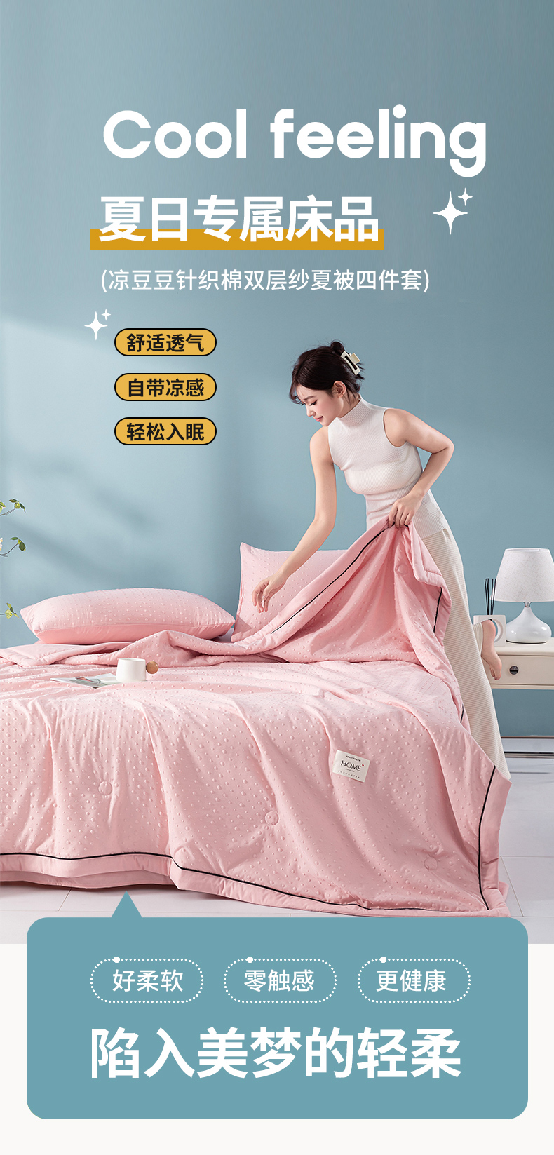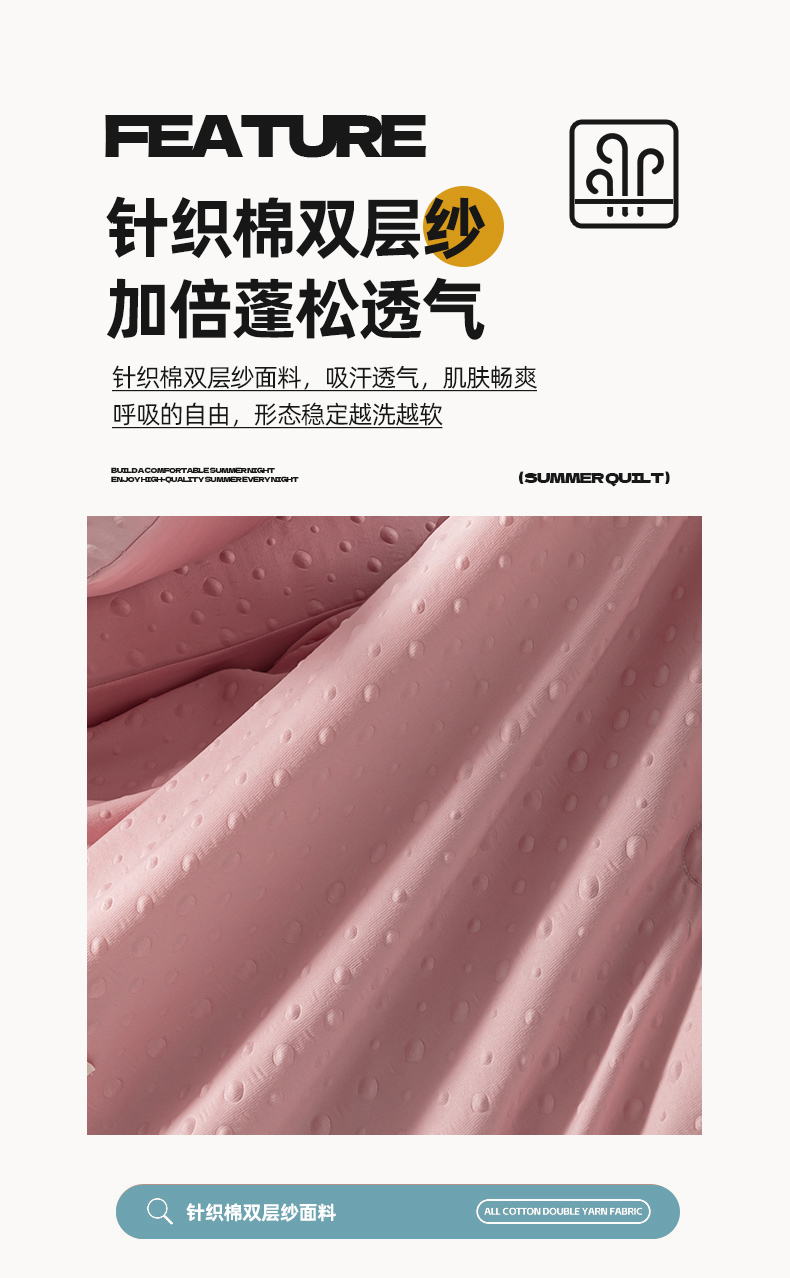商品名称:吾诺 2025 凉豆豆针织棉双层纱夏被四件套水洗棉夏凉被空调被 豆豆粉