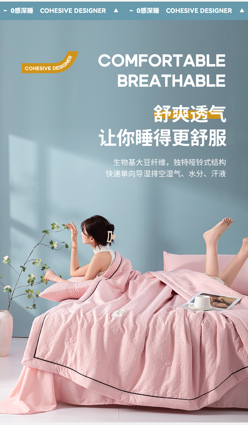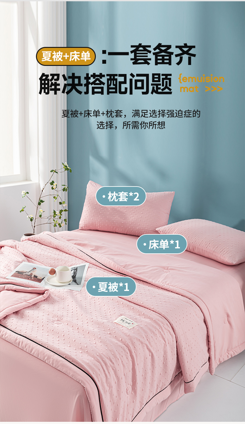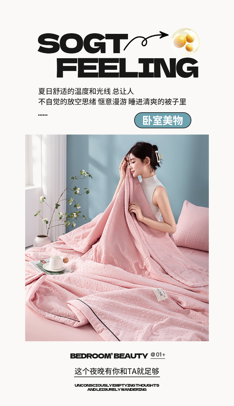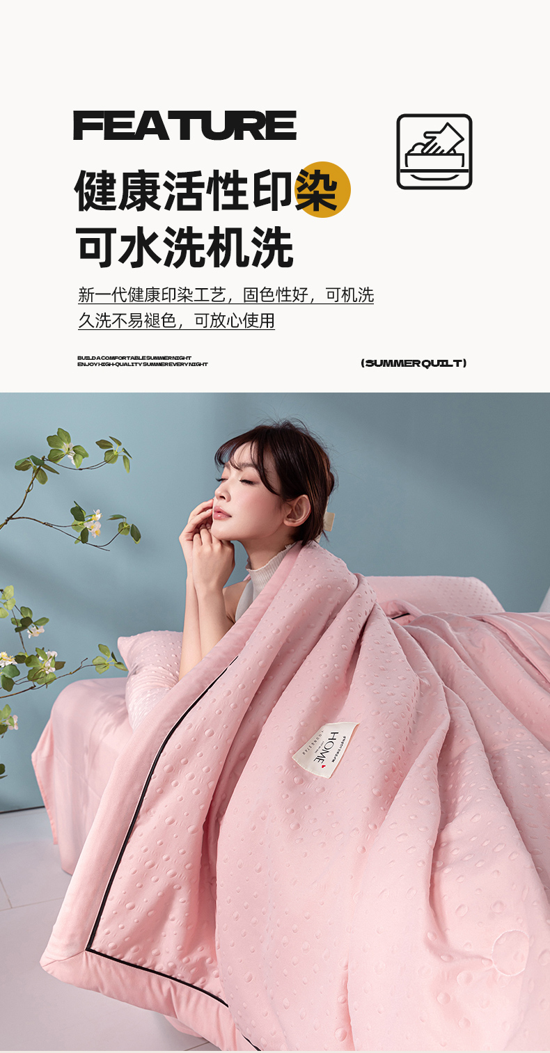 商品名称:吾诺 2025 凉豆豆针织棉双层纱夏被四件套水洗棉夏凉被空调被 豆豆粉