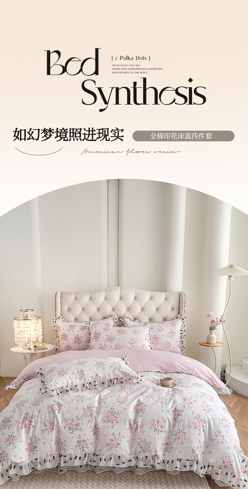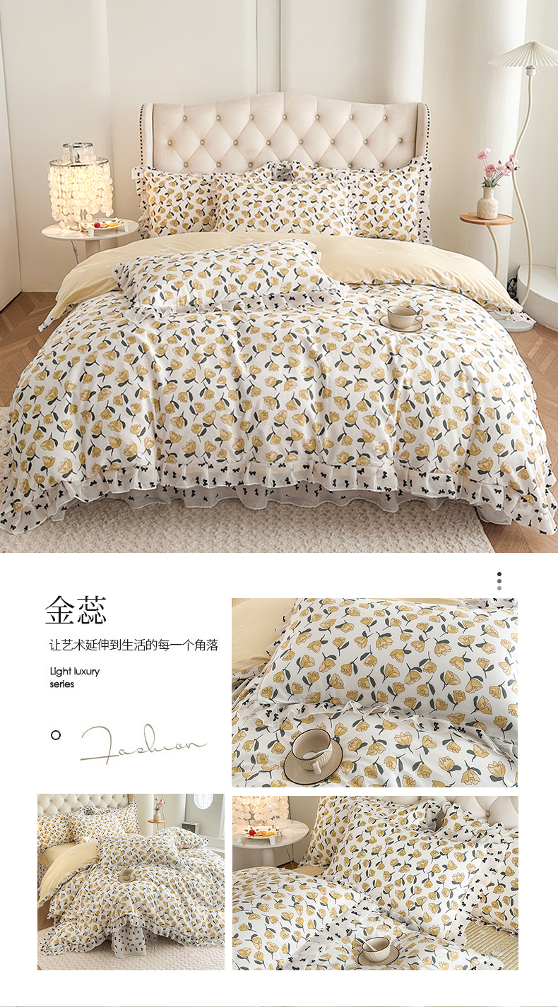商品名称:美伦美焕 2025新款全棉印花床盖四件套 金蕊