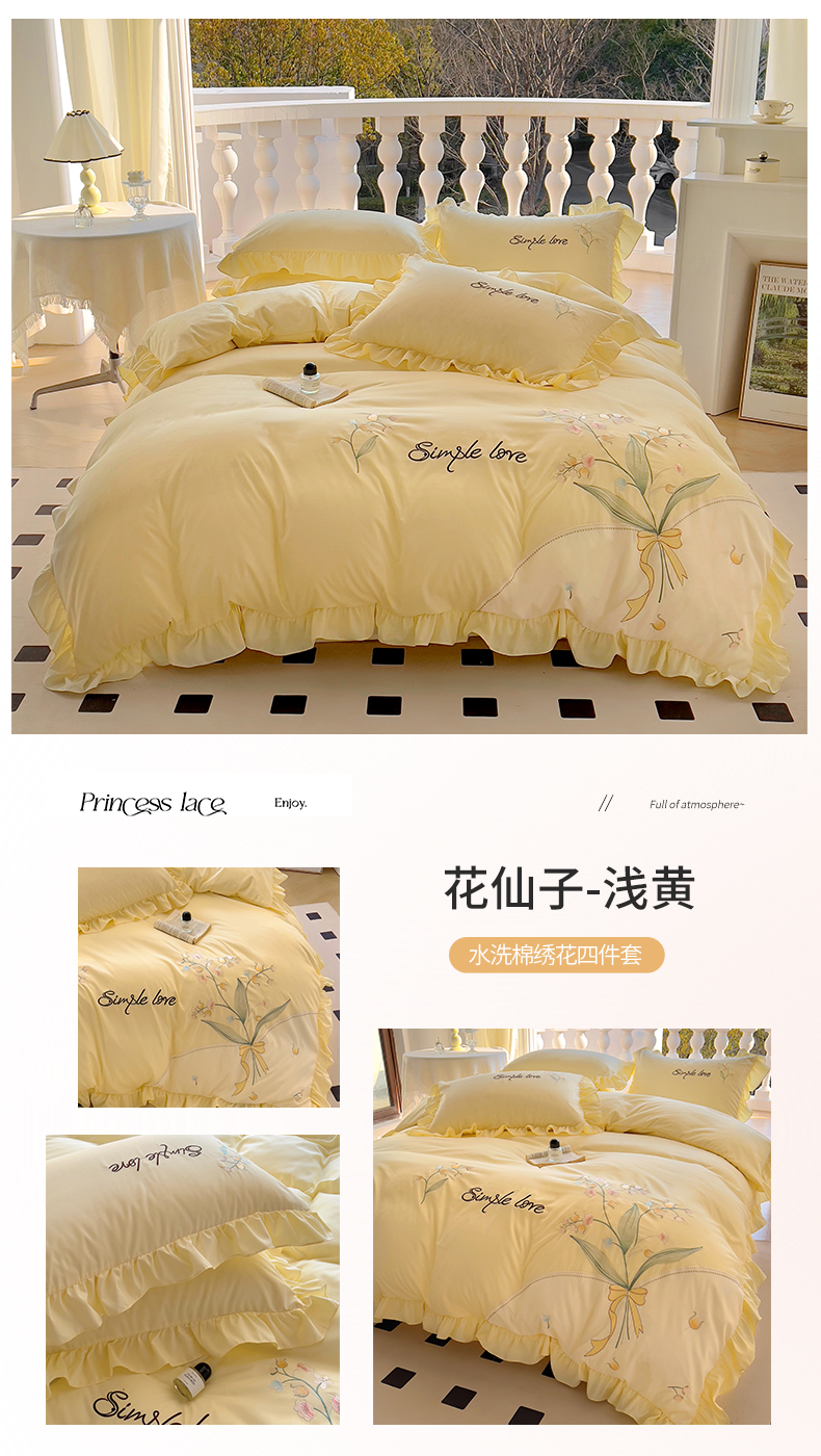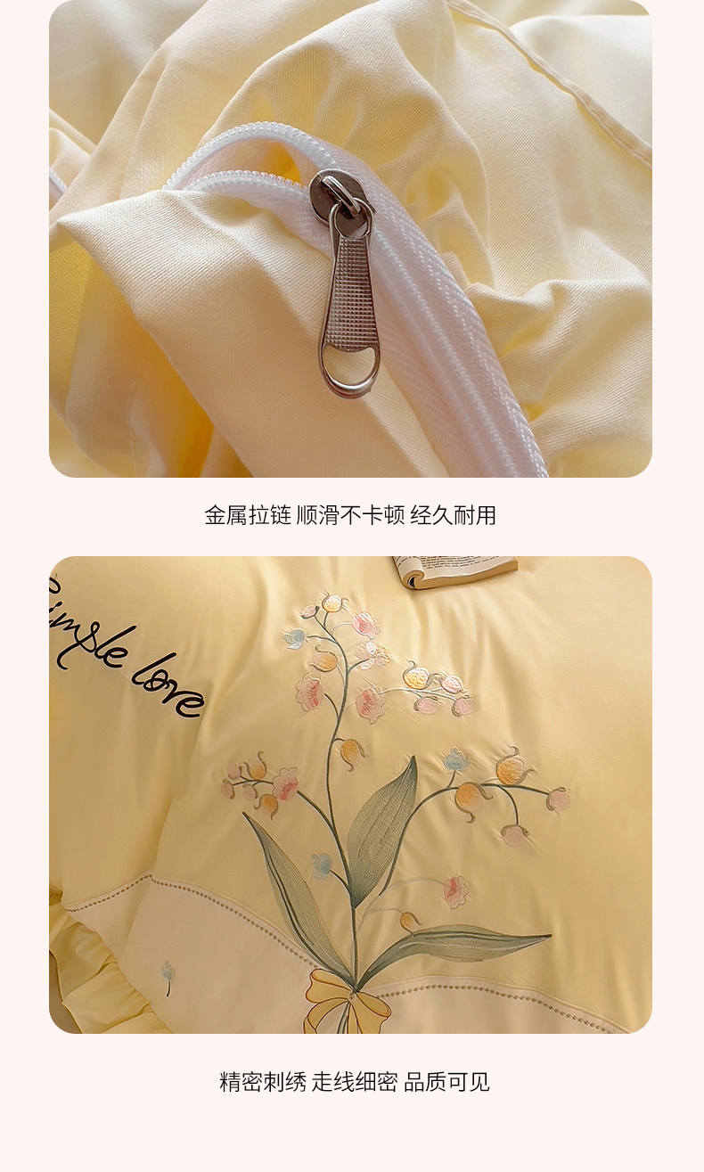 当前位置: 91家纺网 > 商品网购 > 床品套件 > 四件套 > 磨毛活性四件套 > 凯美家居 2025新款超柔亲肤磨毛刺绣花仙子系列四件套 花仙子 浅黄