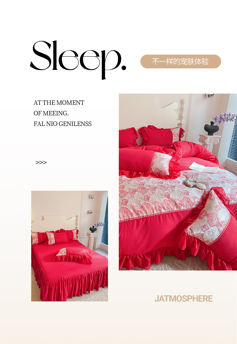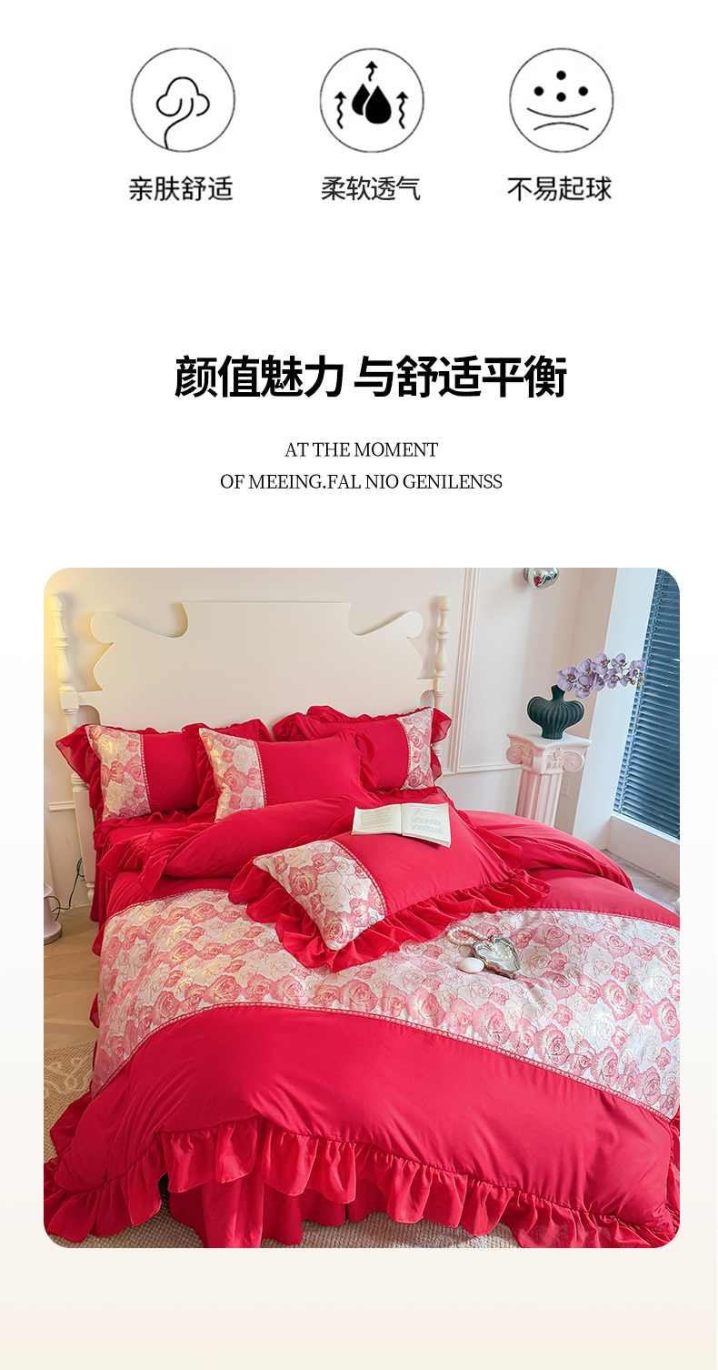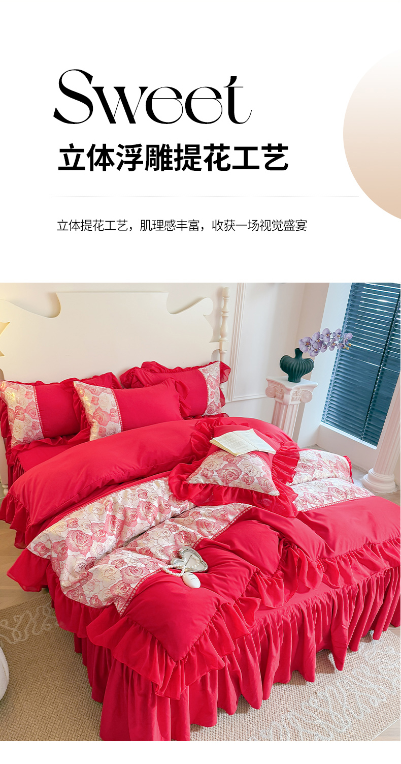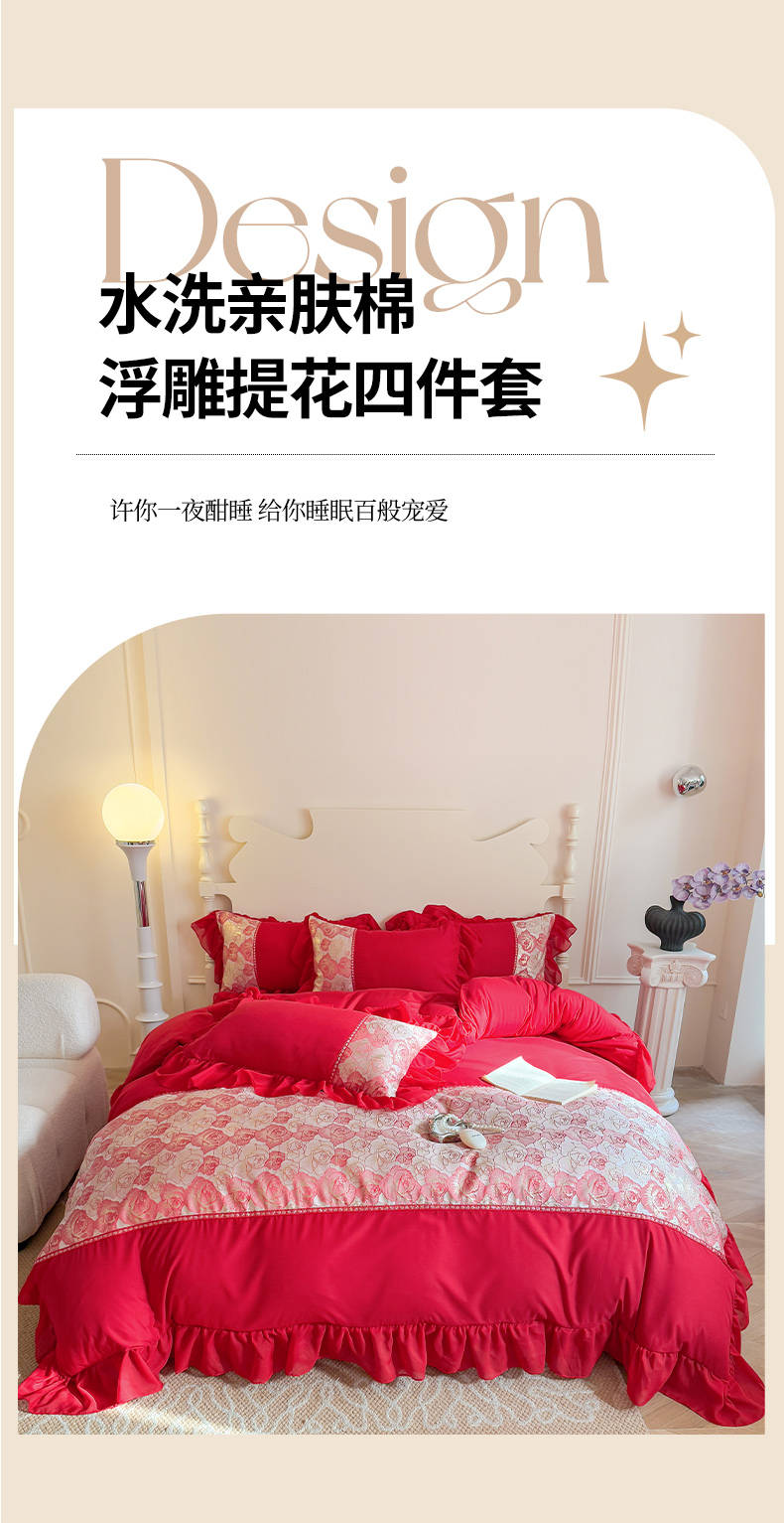 当前位置: 91家纺网 > 商品网购 > 床品套件 > 四件套 > 全棉普通四件套 > 富盛 2025新款水洗亲肤棉浮雕提花公主风四件套 月光恋人-大红