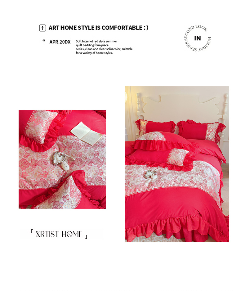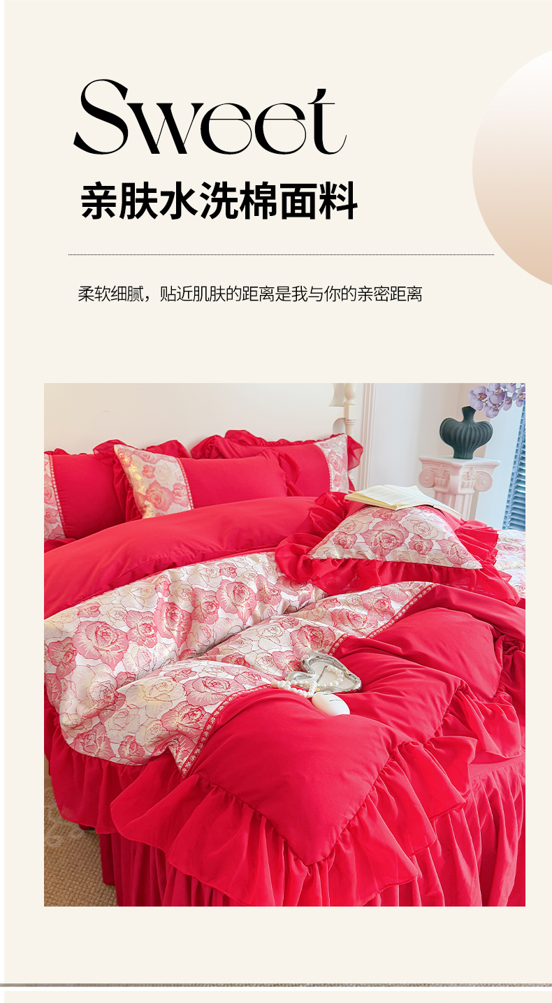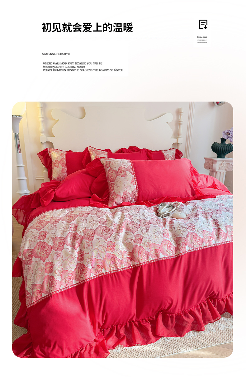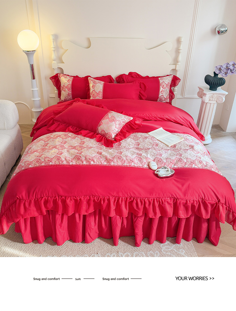 当前位置: 91家纺网 > 商品网购 > 床品套件 > 四件套 > 全棉普通四件套 > 富盛 2025新款水洗亲肤棉浮雕提花公主风四件套 月光恋人-大红