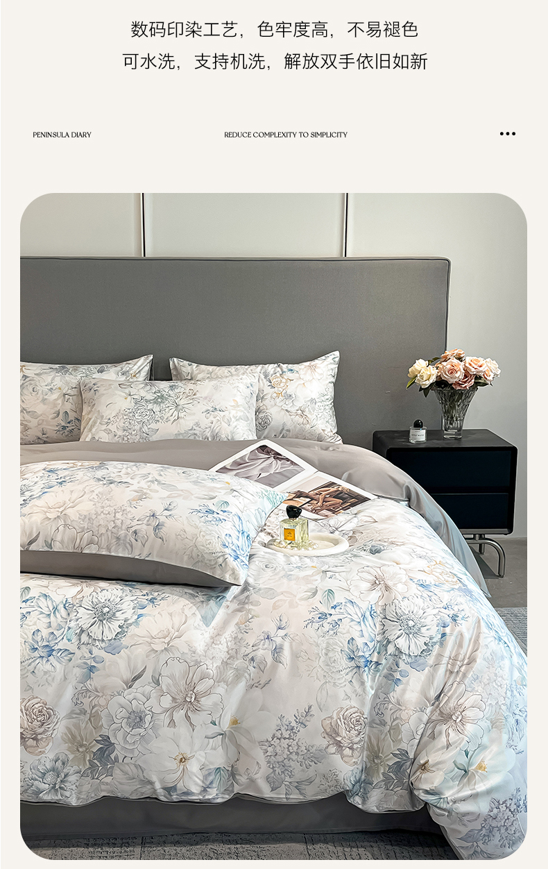 笙意家纺2025新款水洗冰丝数码印花暗盒款四件套 花韵