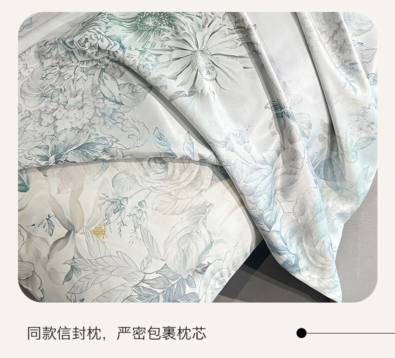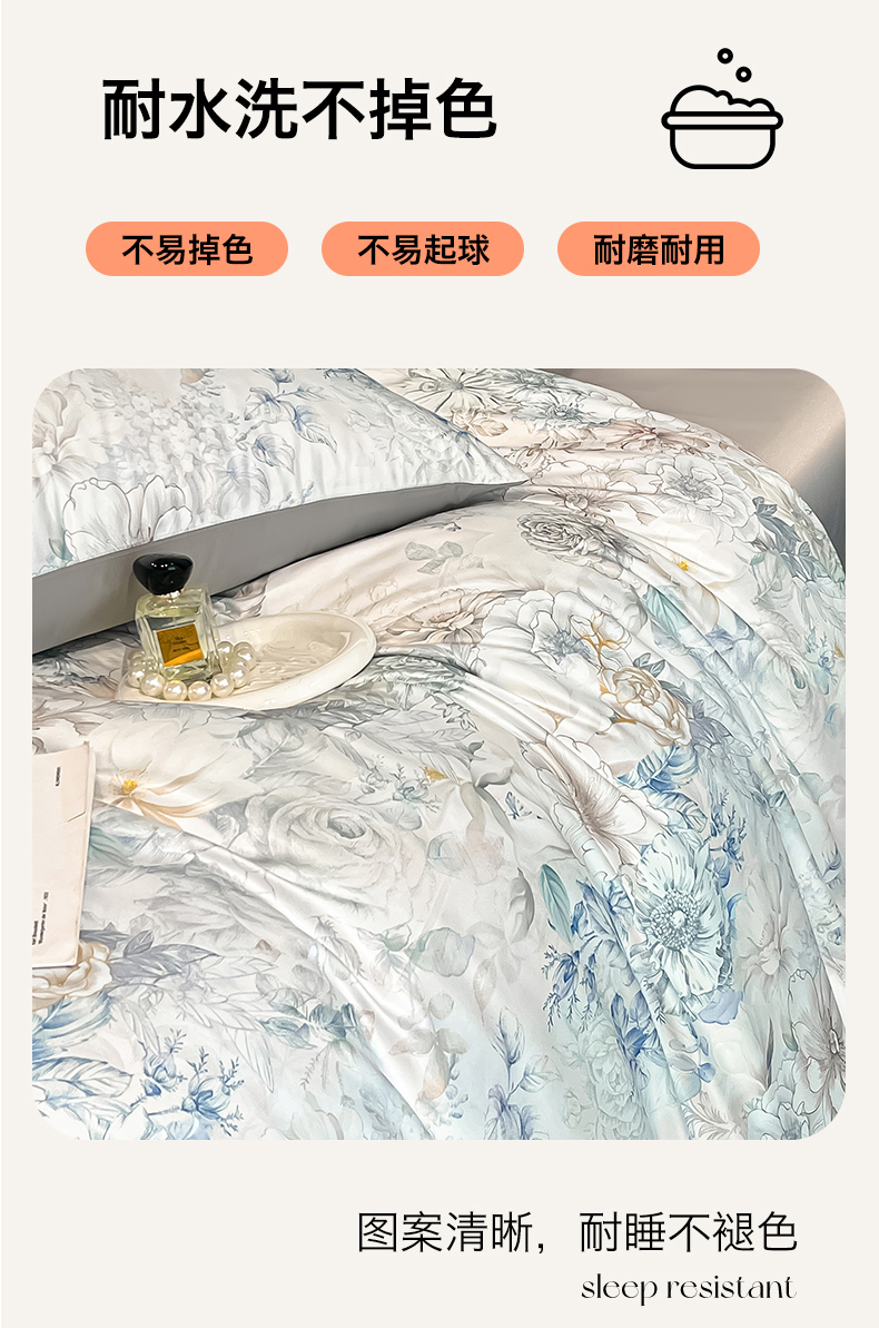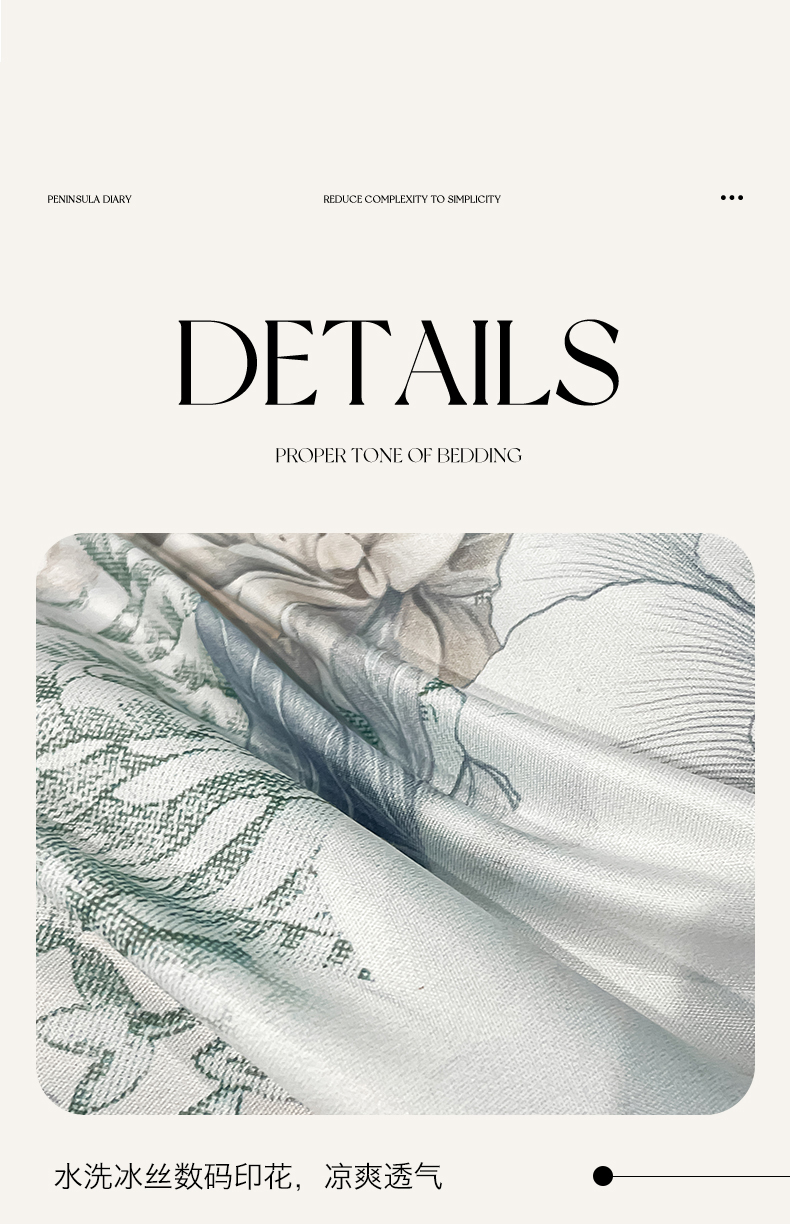 商品名称:笙意家纺2025新款水洗冰丝数码印花暗盒款四件套 花韵