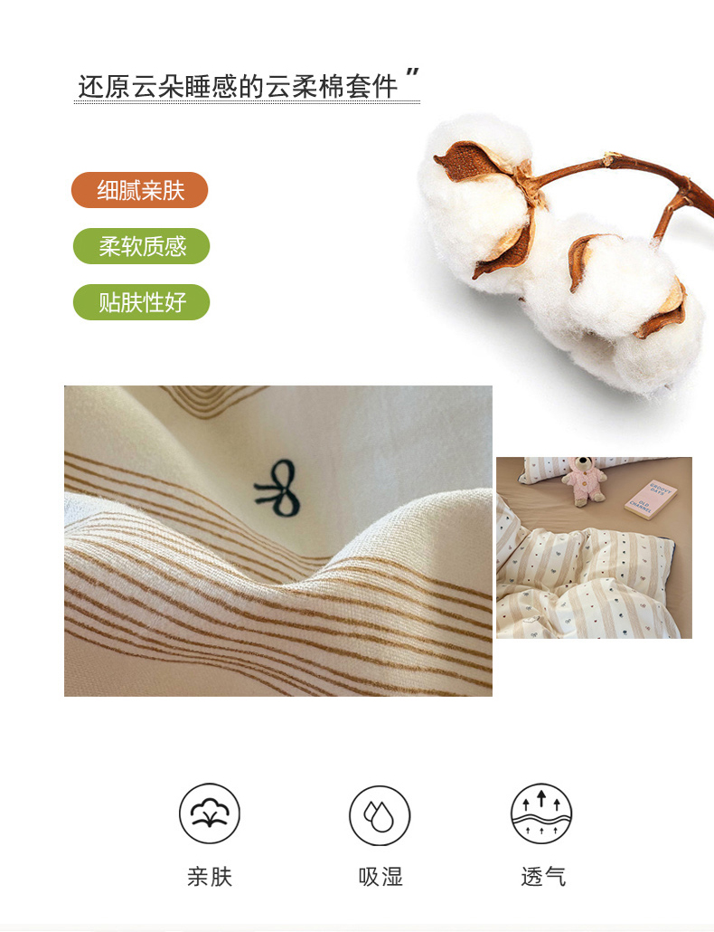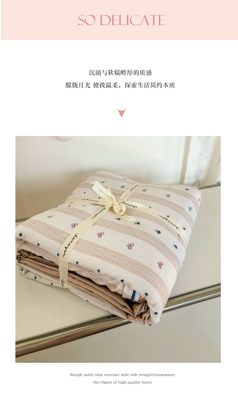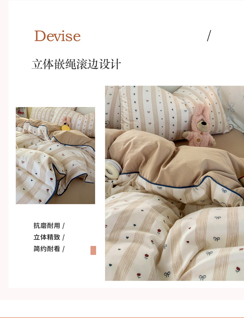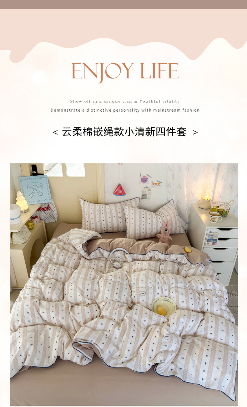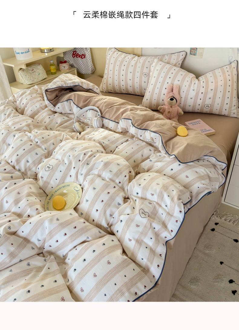 商品名称:潮邦创意家居 2025新款云柔棉立体嵌绳款小清新四件套 浅调爱纹