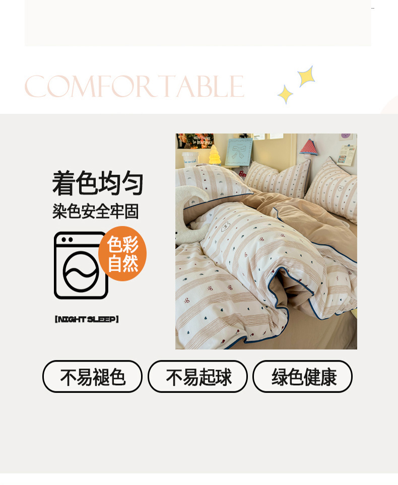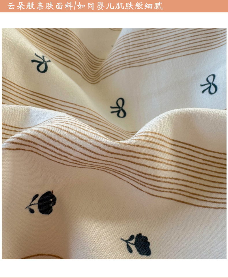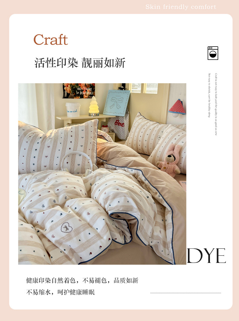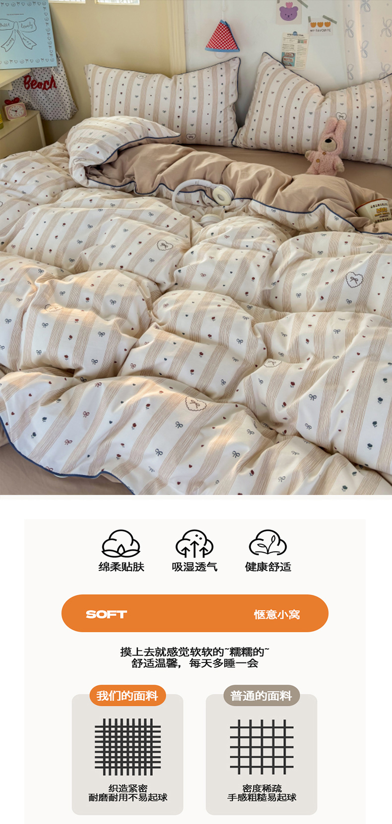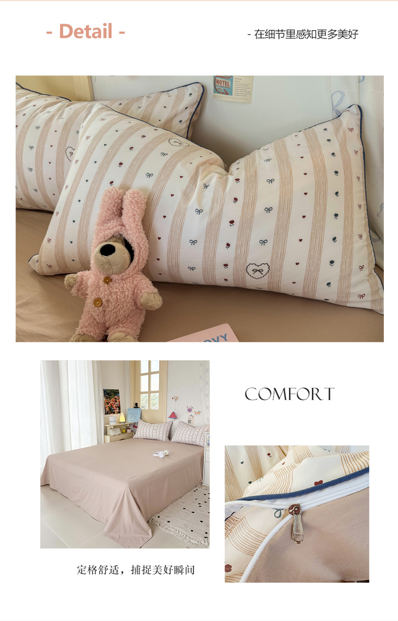 商品名称:潮邦创意家居 2025新款云柔棉立体嵌绳款小清新四件套 浅调爱纹