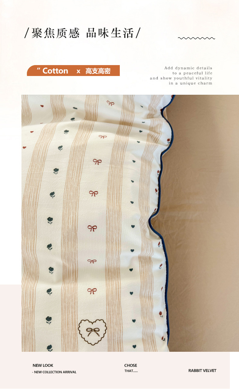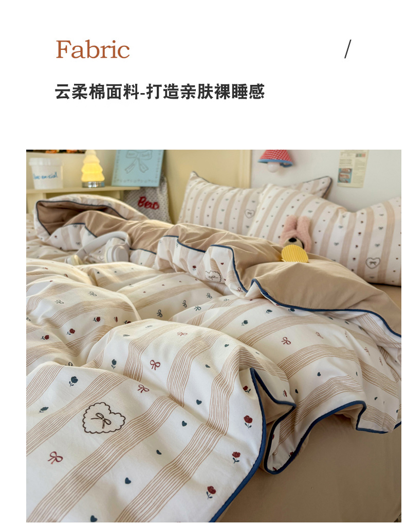 潮邦创意家居 2025新款云柔棉立体嵌绳款小清新四件套 浅调爱纹
