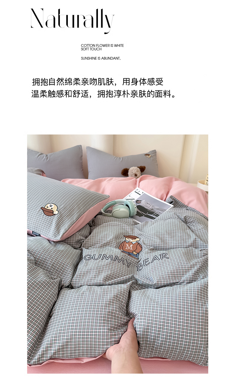 商品名称:KA家纺 春夏新款A类色织水洗棉四件套 休闲英伦蓝粉大格