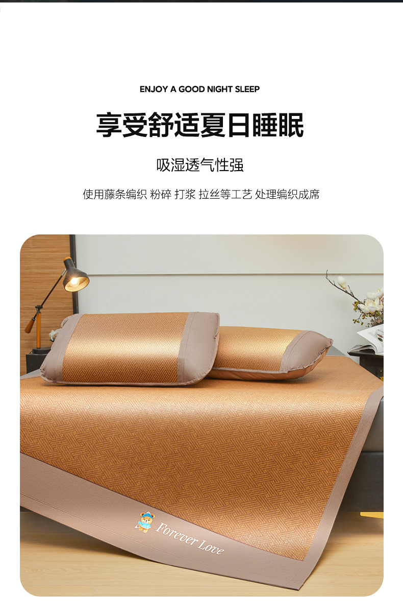 商品名称:尚品凤凰 2025新款冰藤席小熊绣花藤席 饼干花