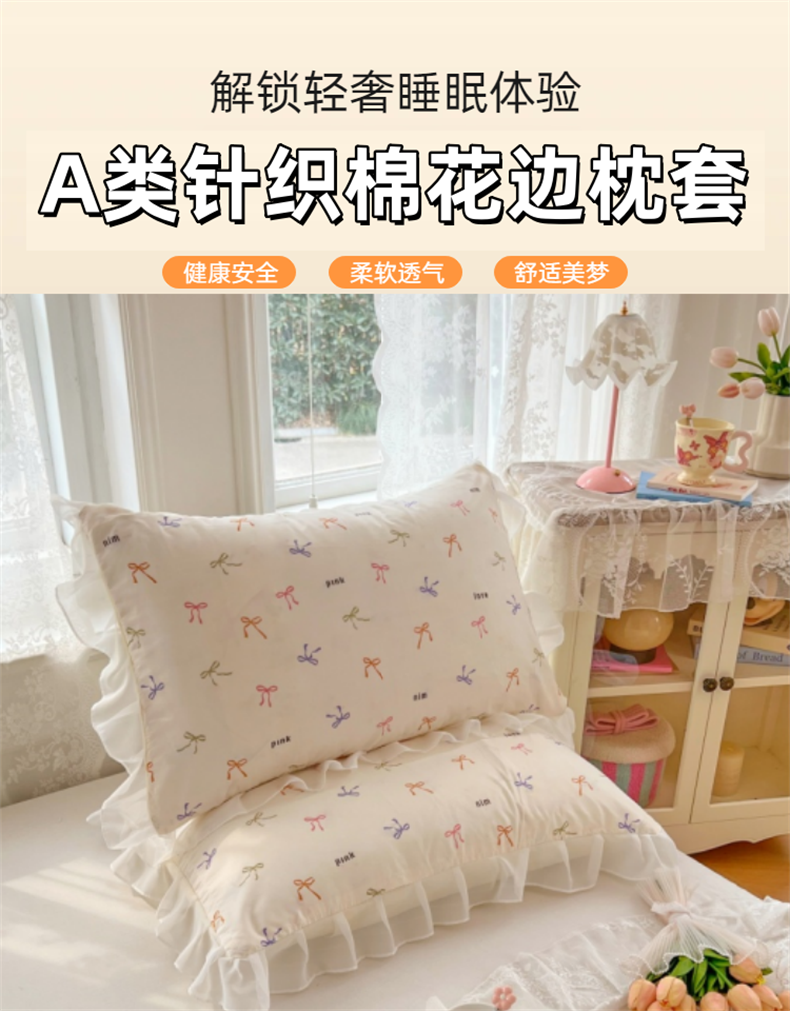 商品名称:梦舒羽 2025新款针织棉双层纱花边枕头套双人枕套枕芯套宿舍单人枕头内胆套 花边款-彩色心情