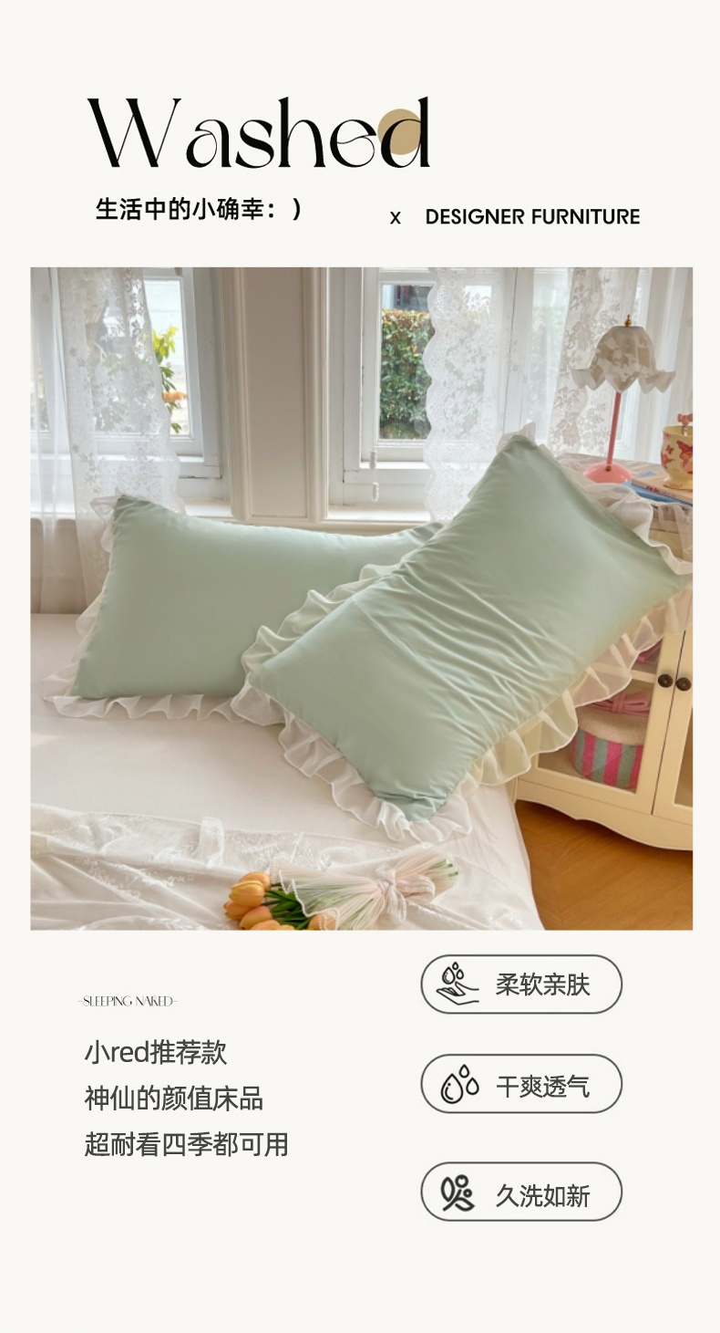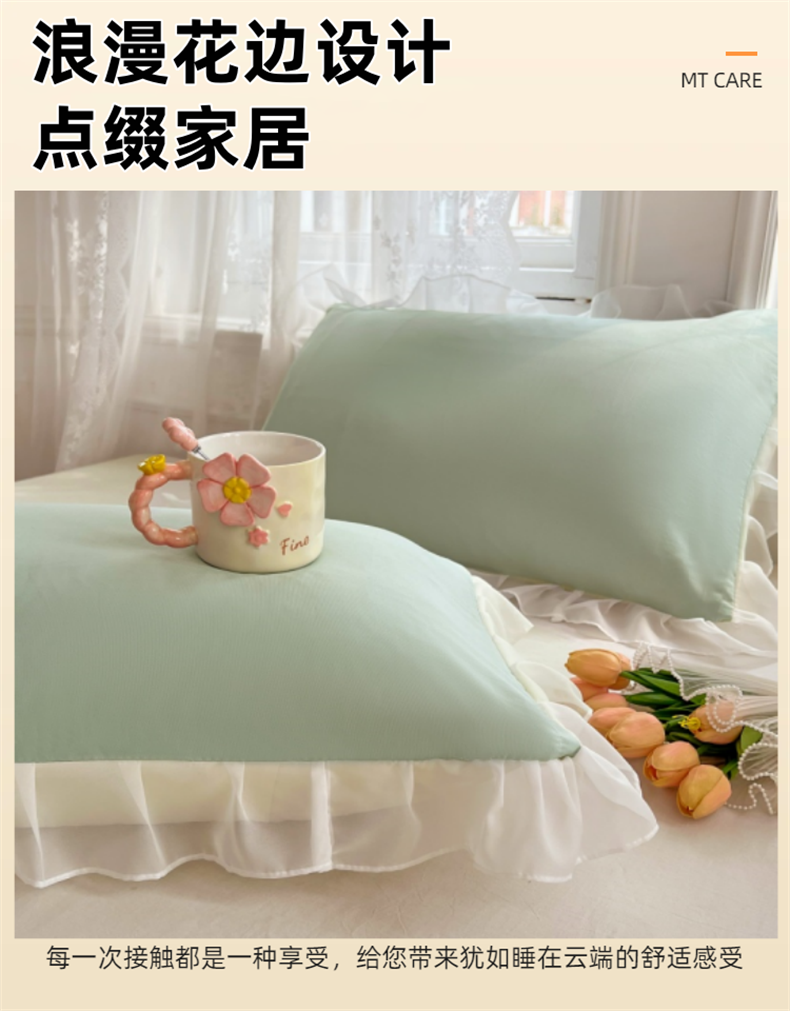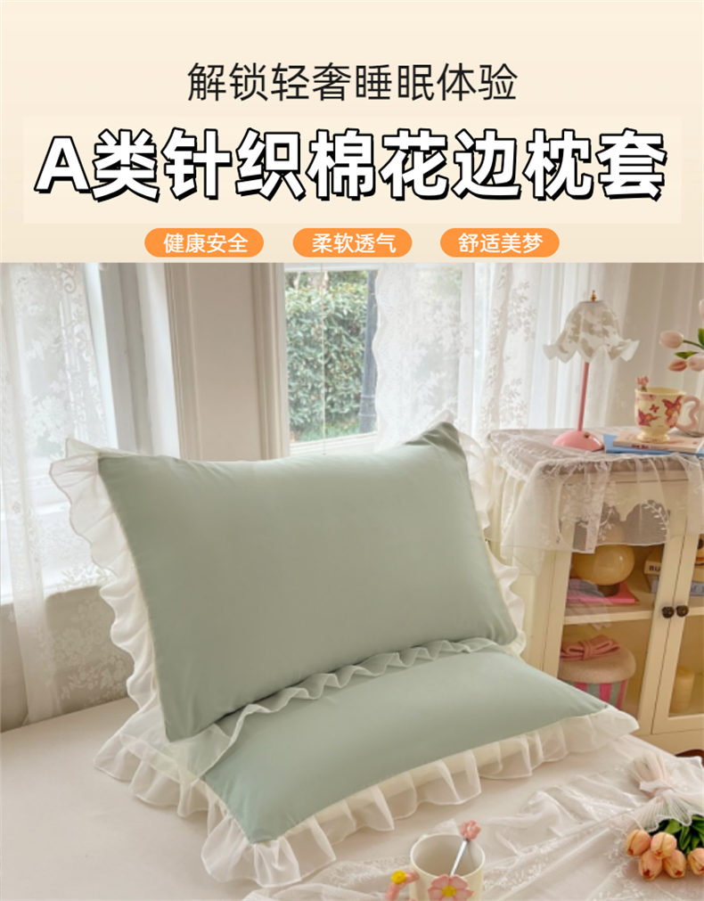 商品名称:梦舒羽 2025新款针织棉双层纱花边枕头套双人枕套枕芯套宿舍单人枕头内胆套 花边款-浅清绿
