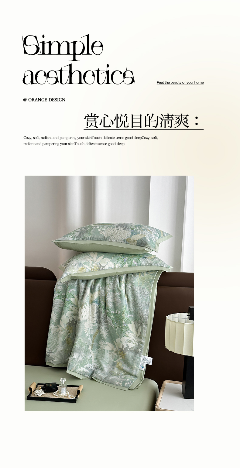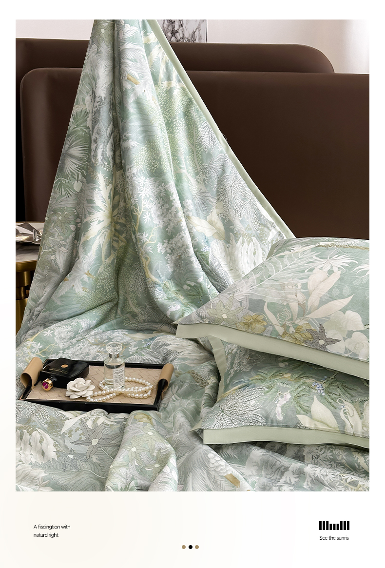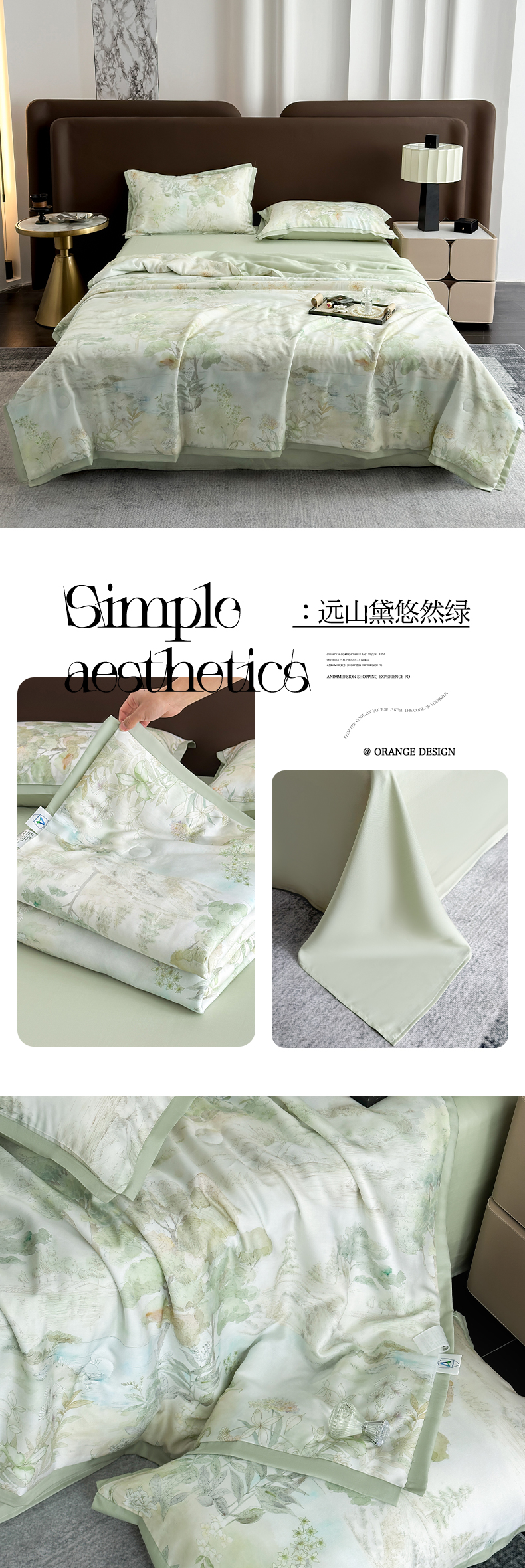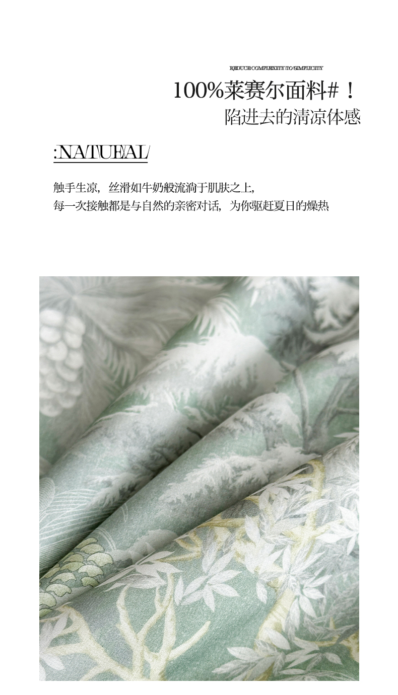 当前位置: 91家纺网 > 商品网购 > 床品套件 > 四件套 > 夏被四件套 > 莱登卡奴 25新款A类50支100%莱赛尔天丝数码印花夏被四件套 阡陌丛林悠然绿