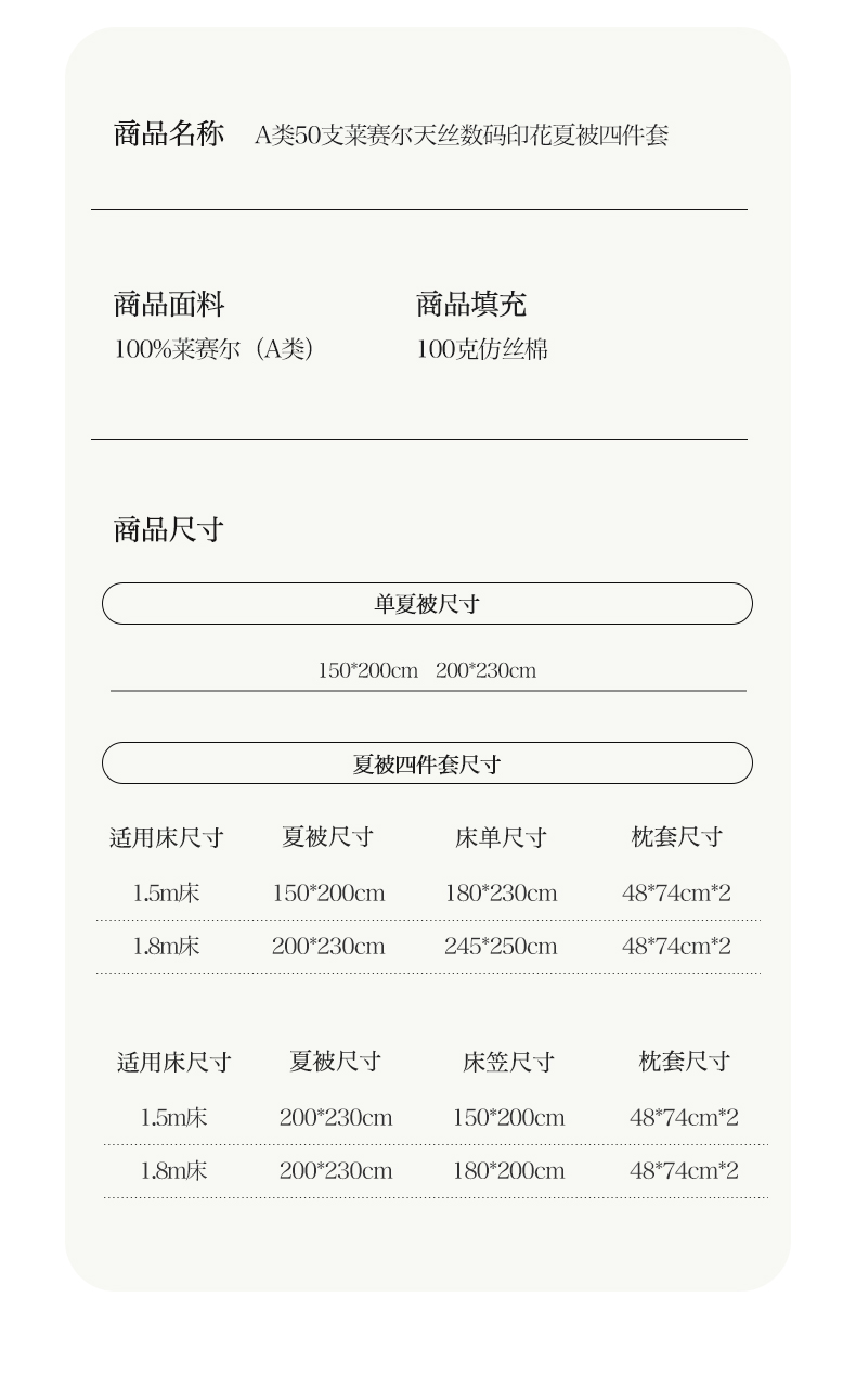 1.5米夏被+1.8米床单+枕套一对(小四件套) | ¥148.00 |