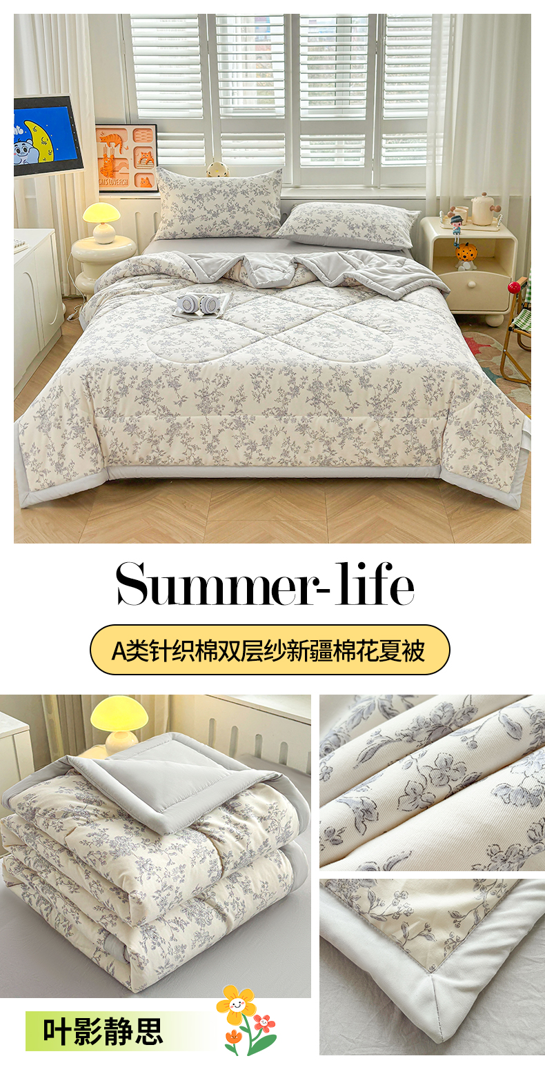 商品名称: 壹张床 2025新款A类针织棉双层纱100%新疆棉花夏凉被《包检测》(提供买家秀) 叶影静思