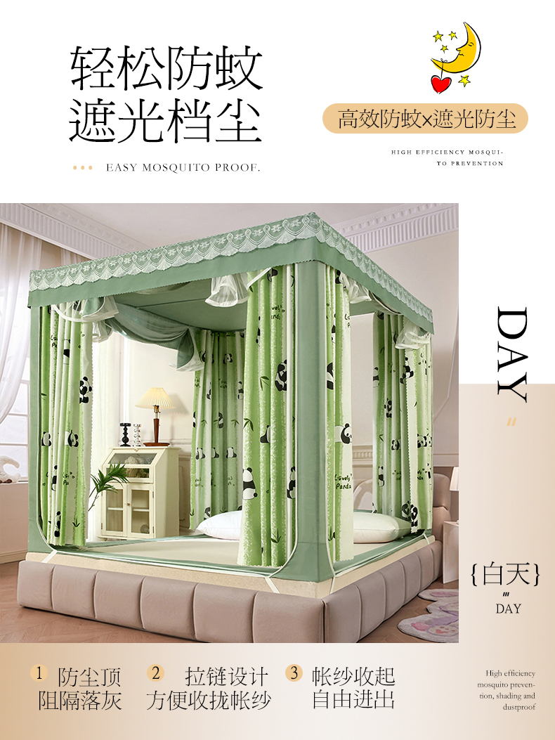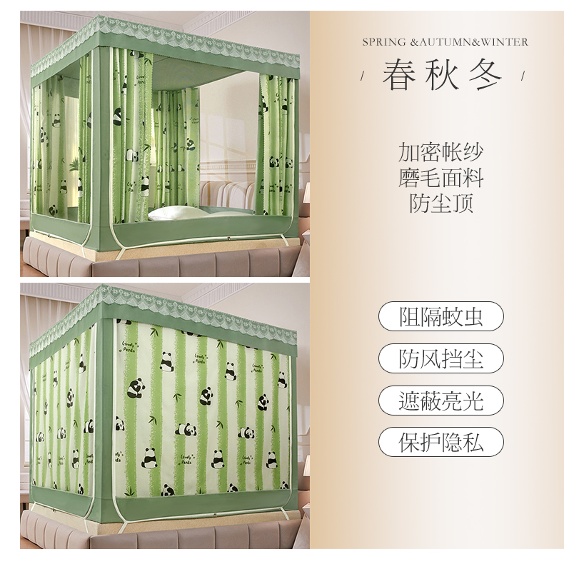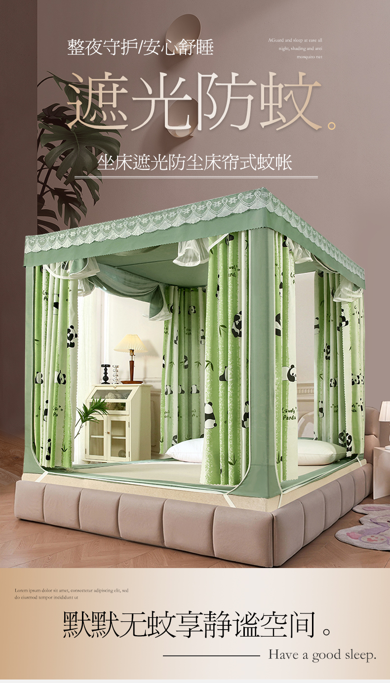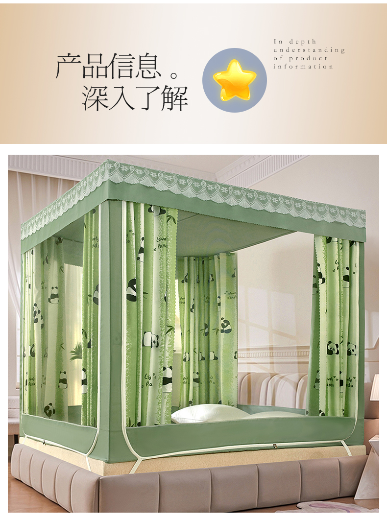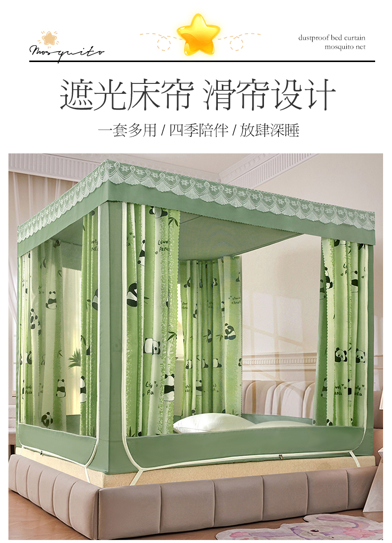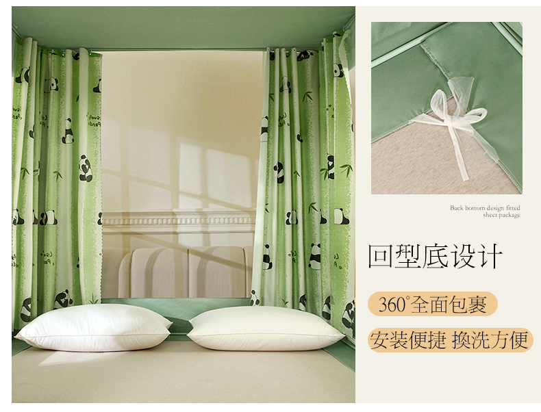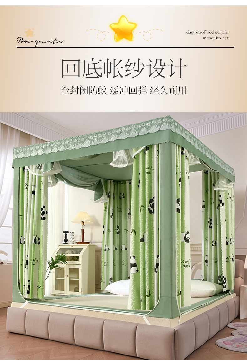 商品名称:显高蚊帐 2025新款U型坐床遮光防尘床帘式蚊帐 竹林熊猫