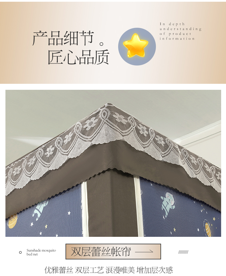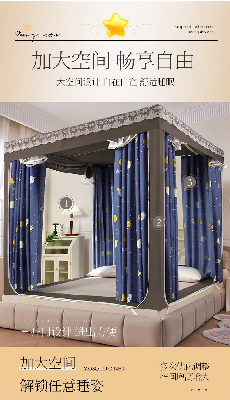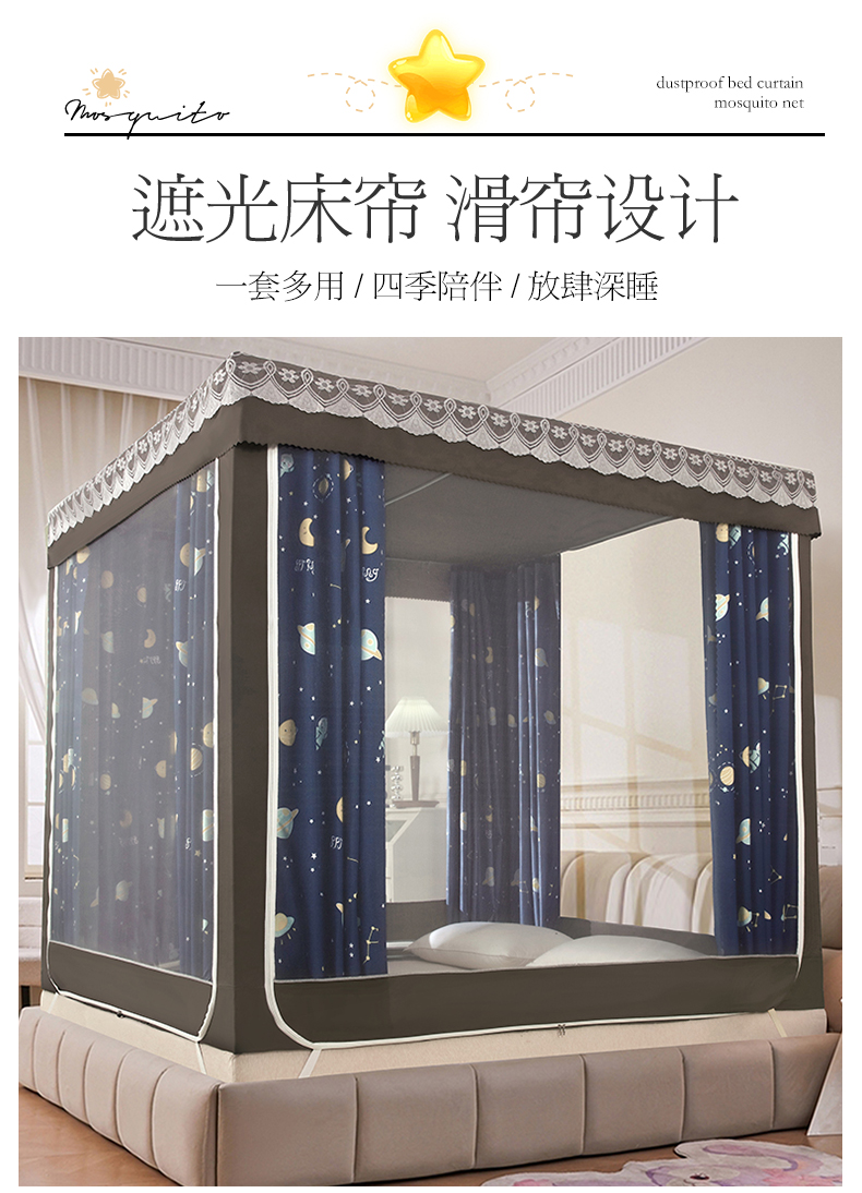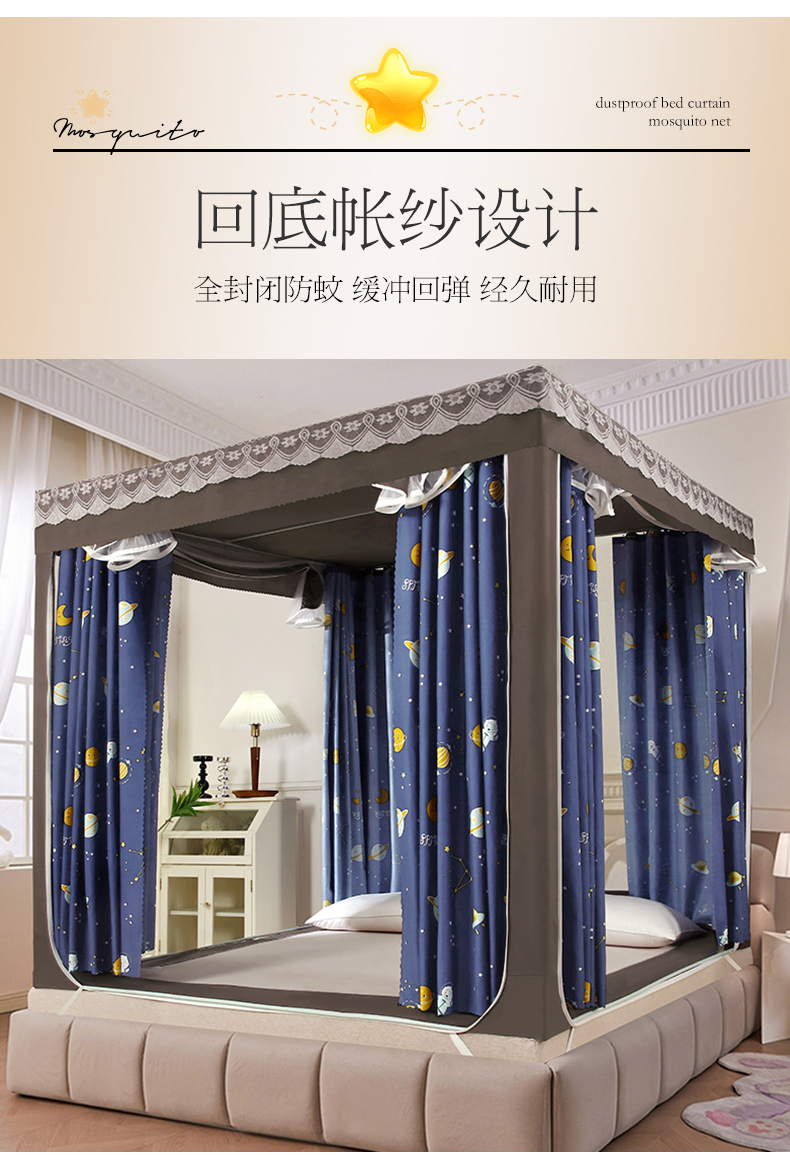 显高蚊帐 2025新款U型坐床遮光防尘床帘式蚊帐 星梦奇缘