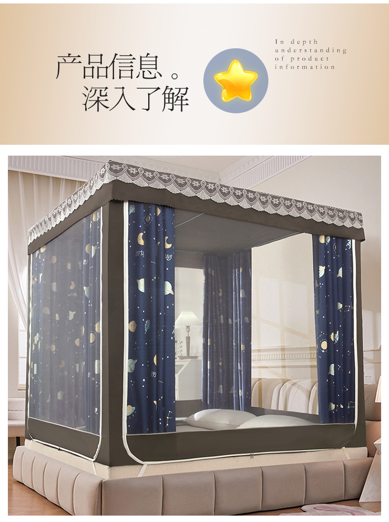 商品名称:显高蚊帐 2025新款U型坐床遮光防尘床帘式蚊帐 星梦奇缘