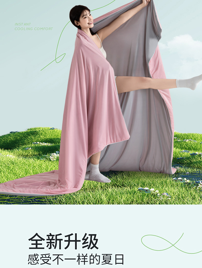 名兮家居2025春夏新款纯色双拼凉感丝夏凉被-场景二 豆沙-浅灰