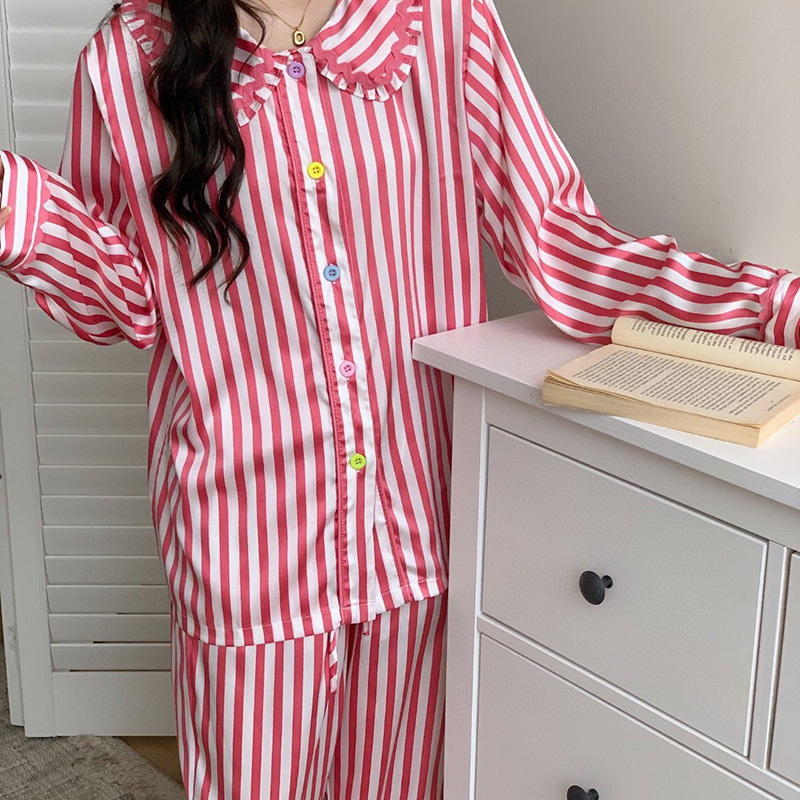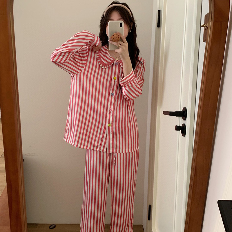 (总)妍景家居生活馆 2025新款拼色条纹娃娃领套装