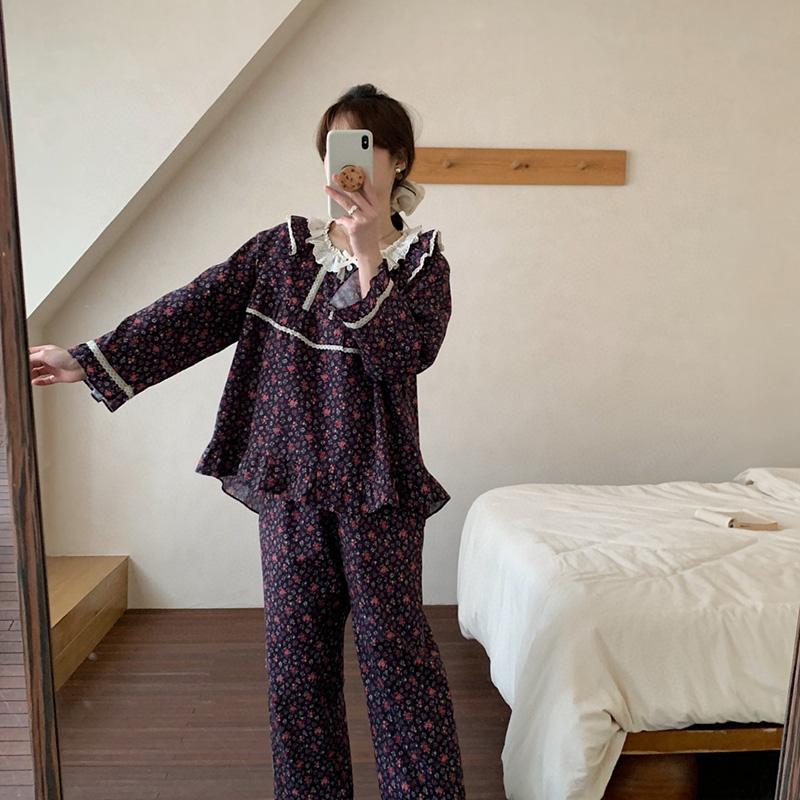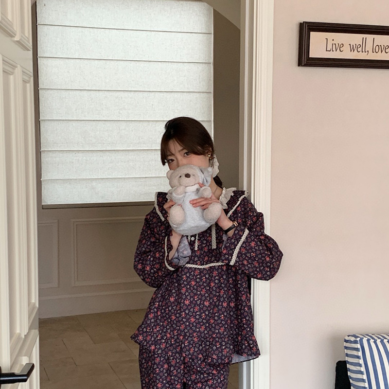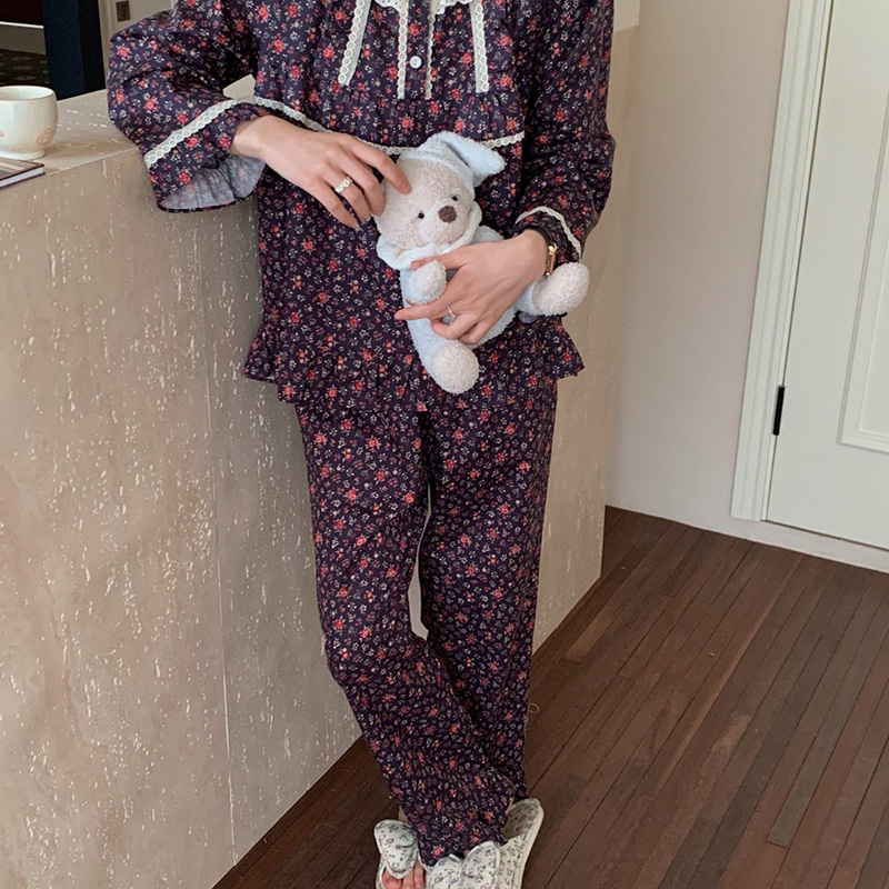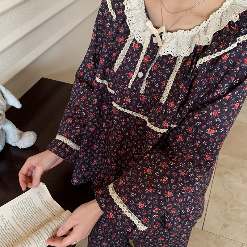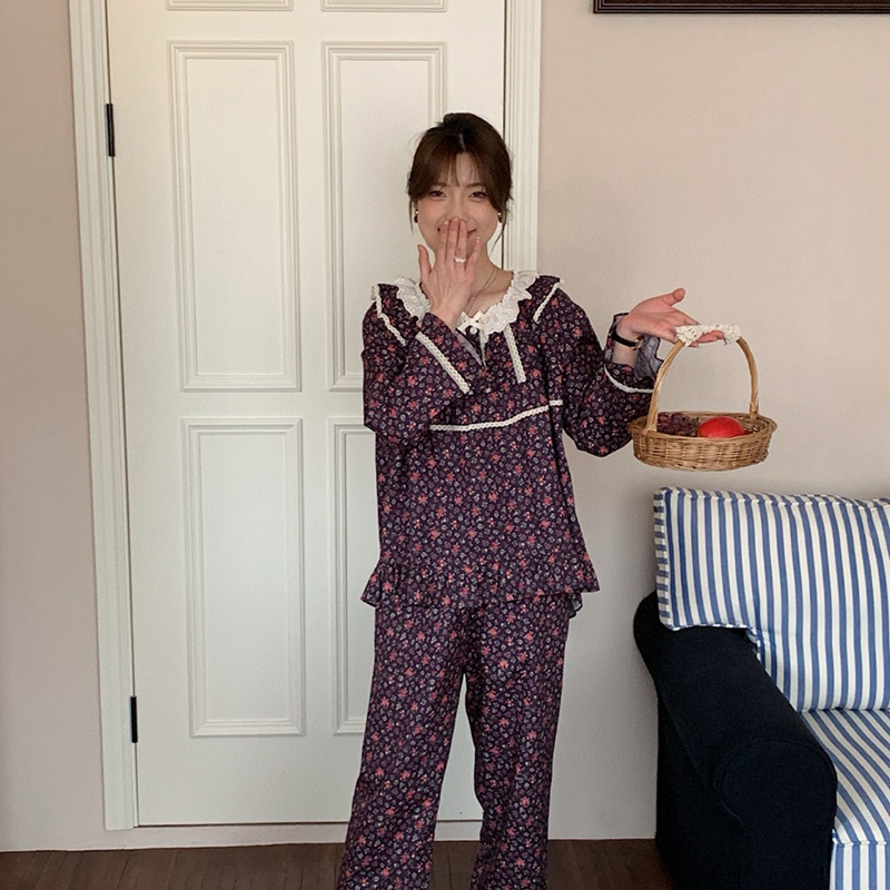 商品名称:(总)妍景家居生活馆 2025新款紫罗兰翻领碎花蕾丝套装25009