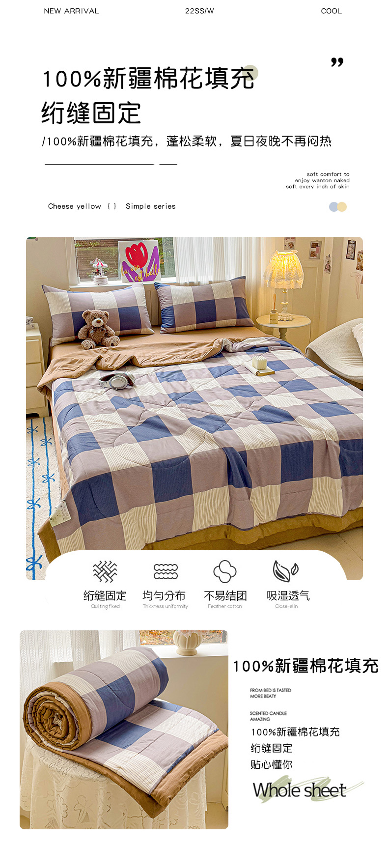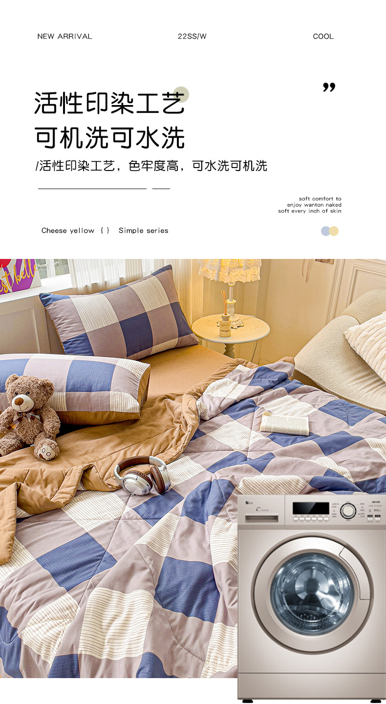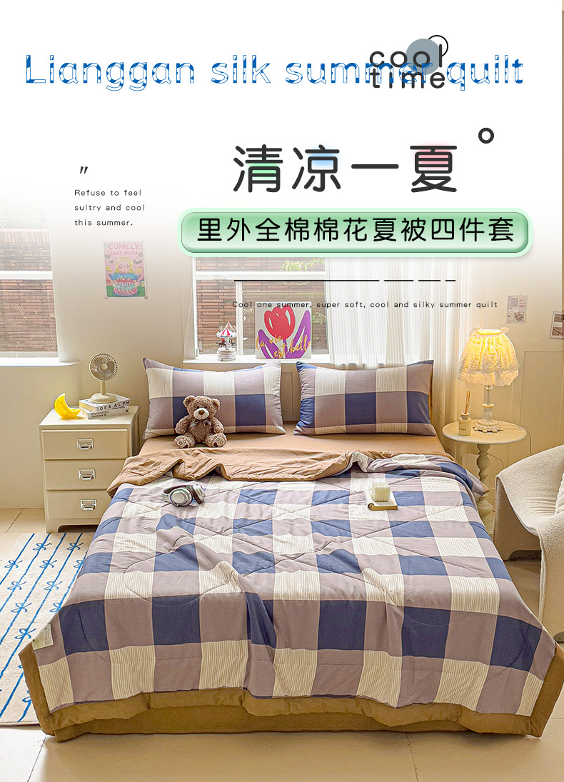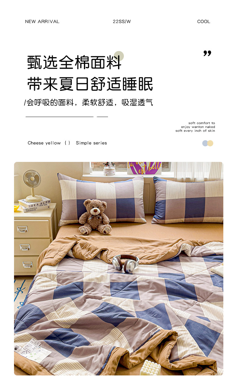 • 91家纺网 家纺一手货源 找家纺 初相识被业 2025新款里外全棉夏被棉花夏被四件套印花夏凉被空调被 格纹空间