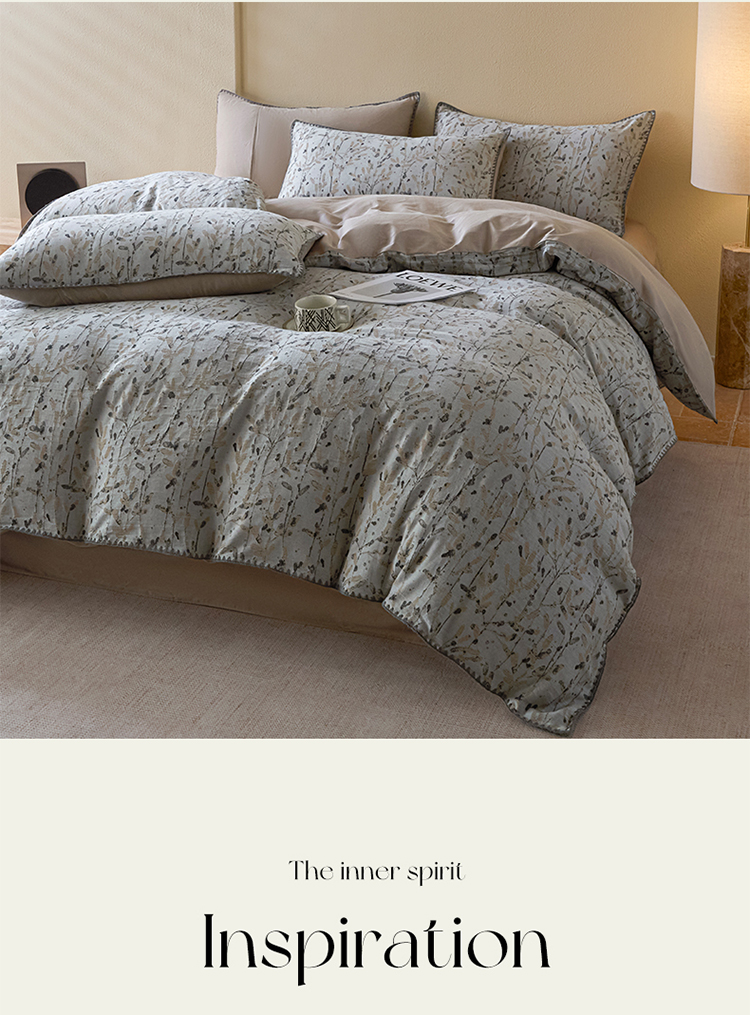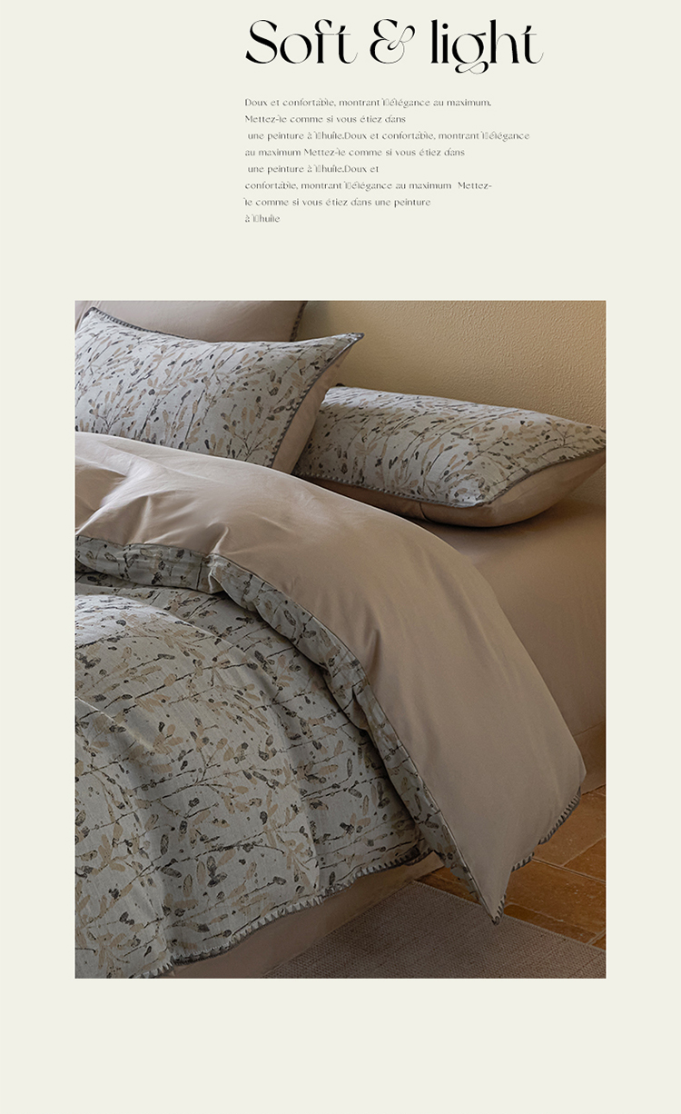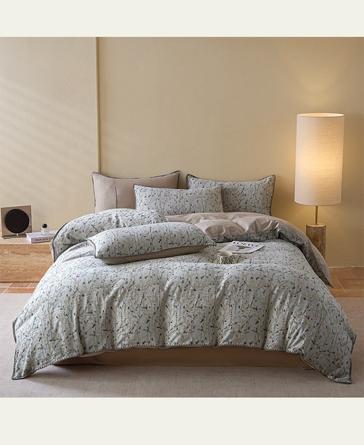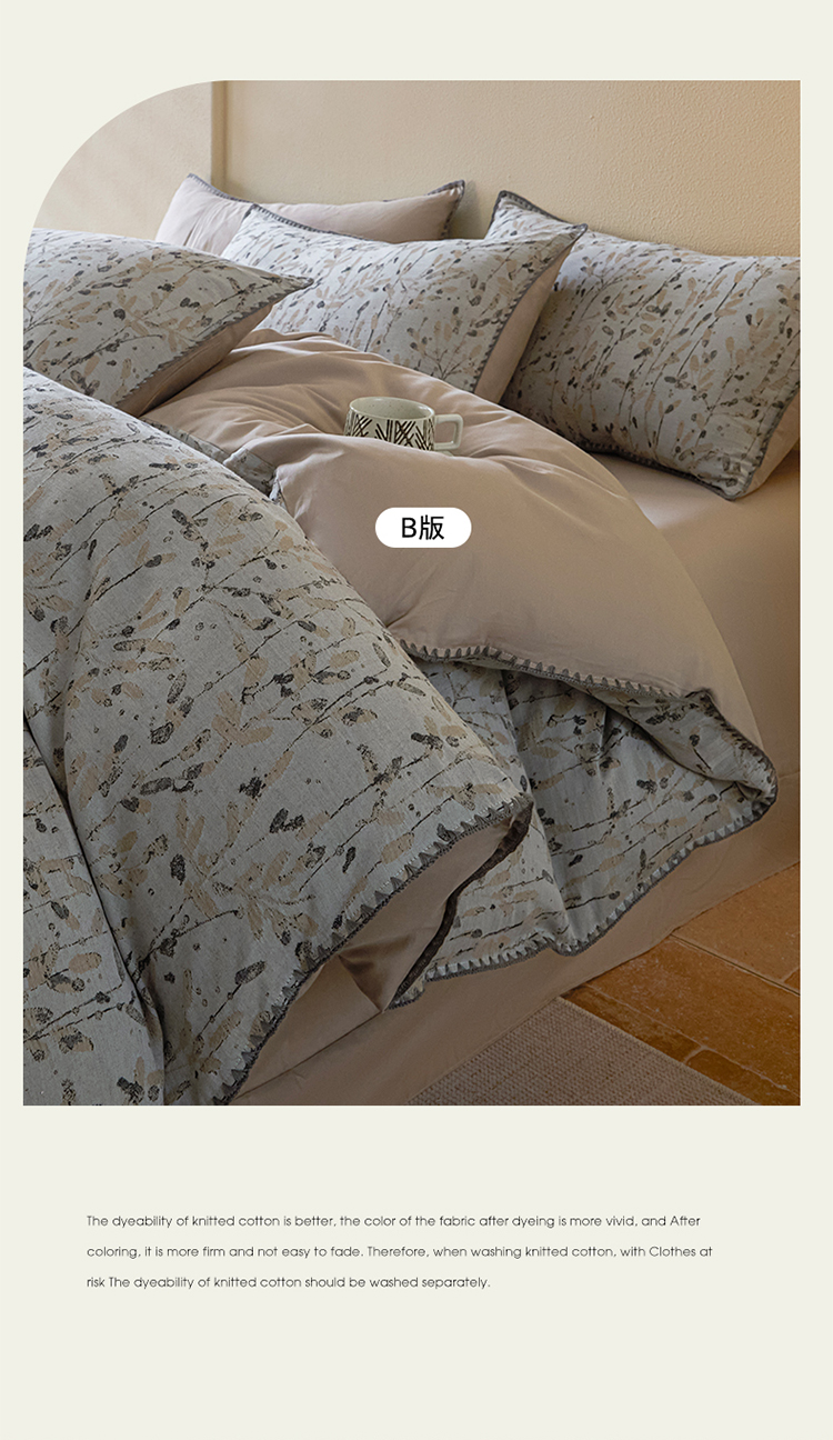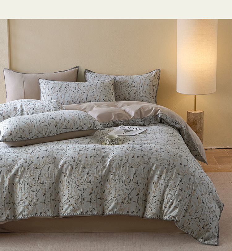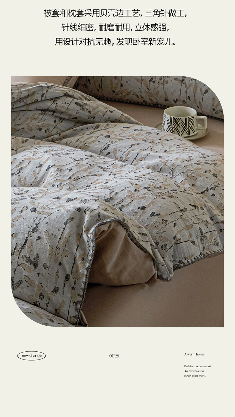 2025新款亲肤全棉三层纱提花四件套 叶语-珠子褐