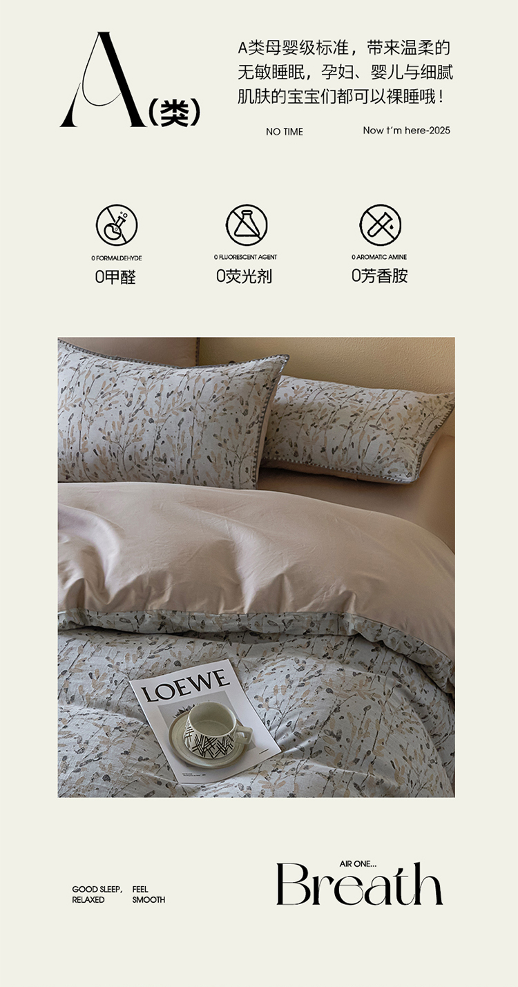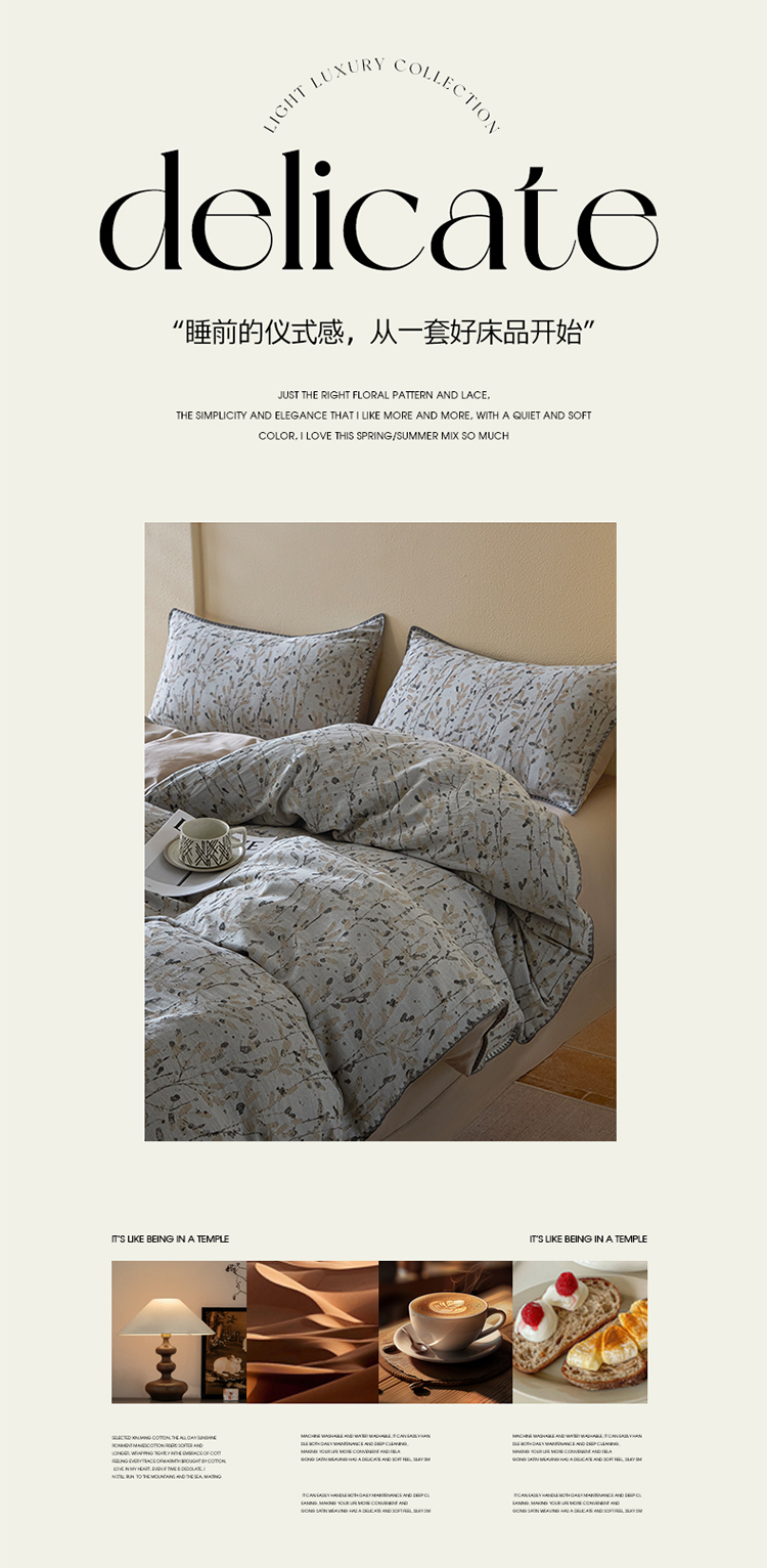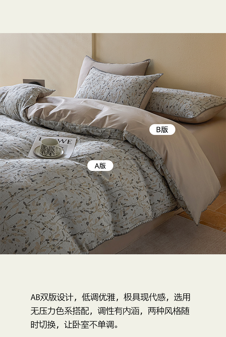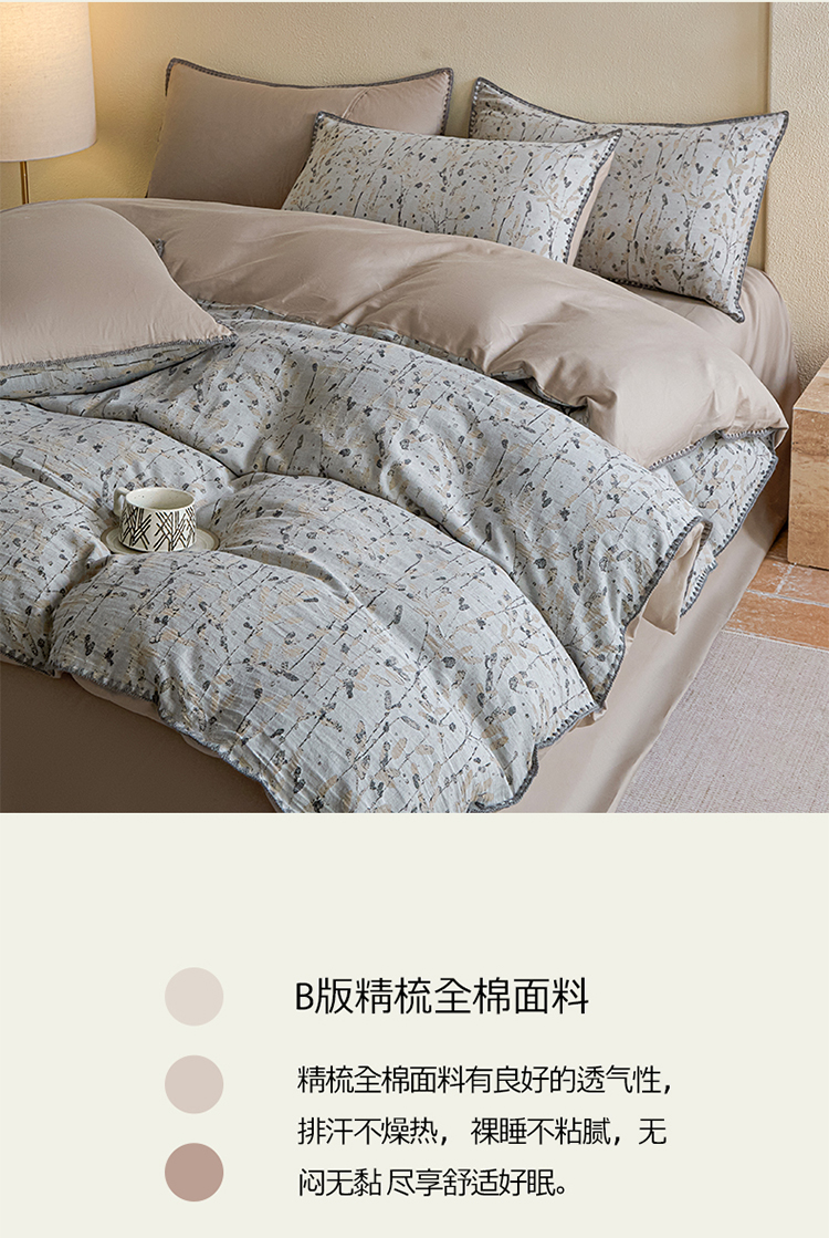 商品名称:2025新款亲肤全棉三层纱提花四件套 叶语-珠子褐