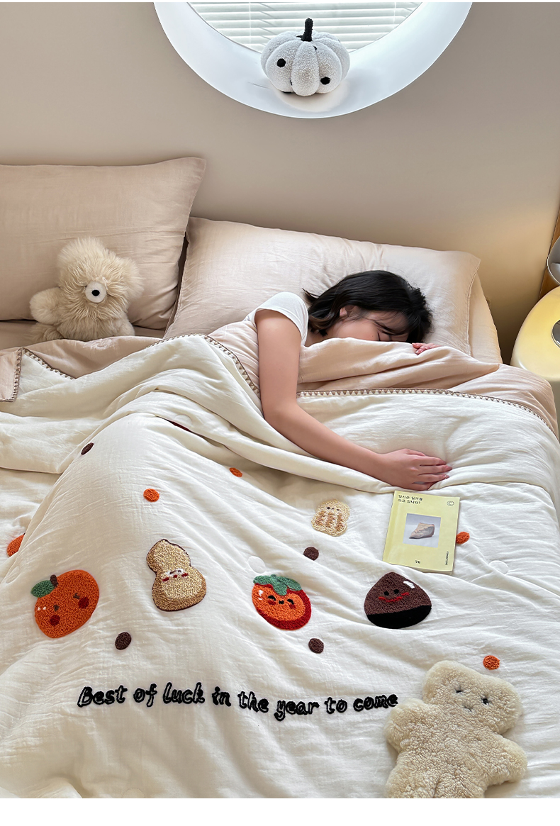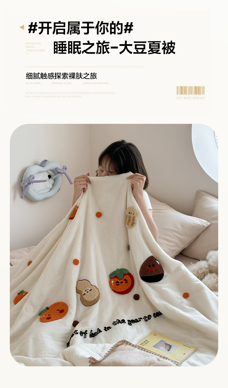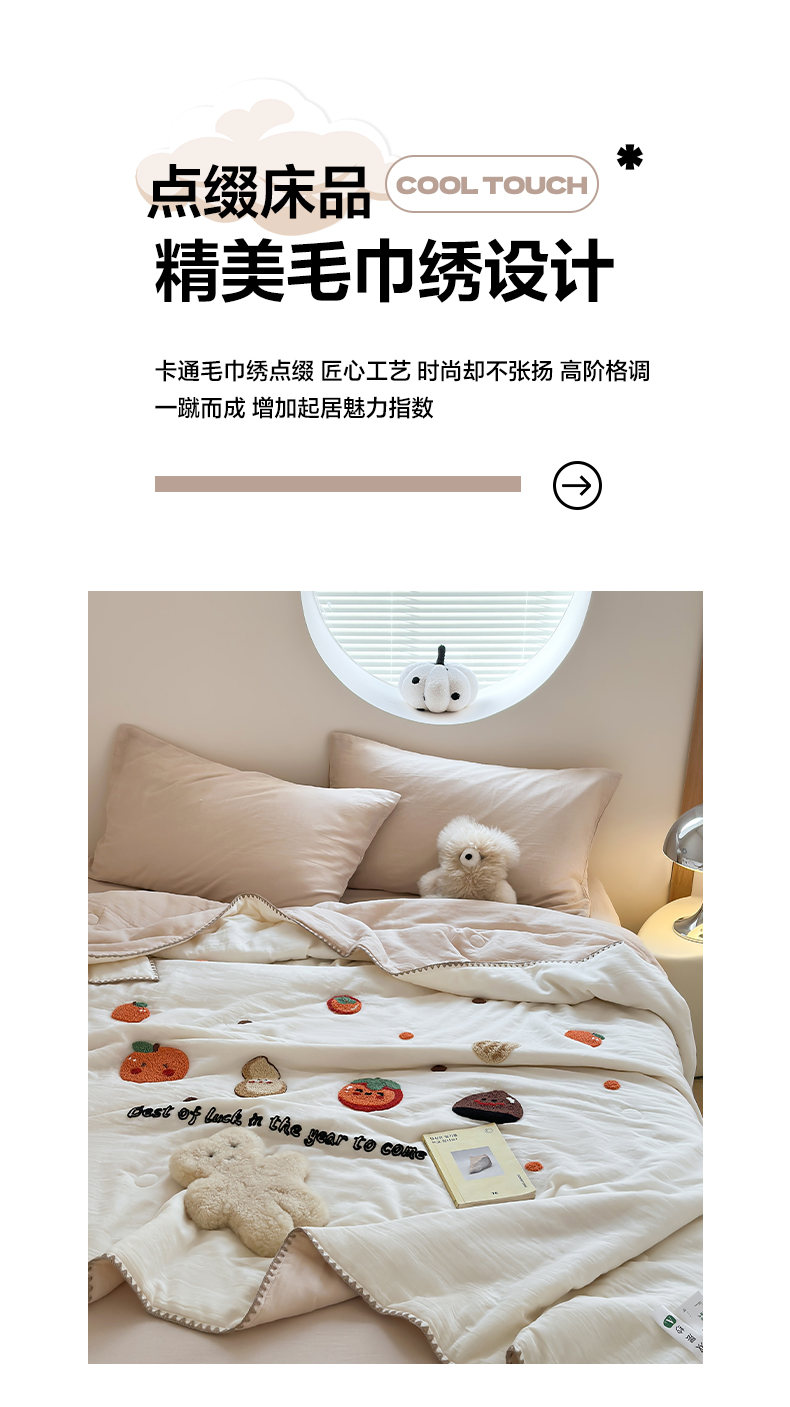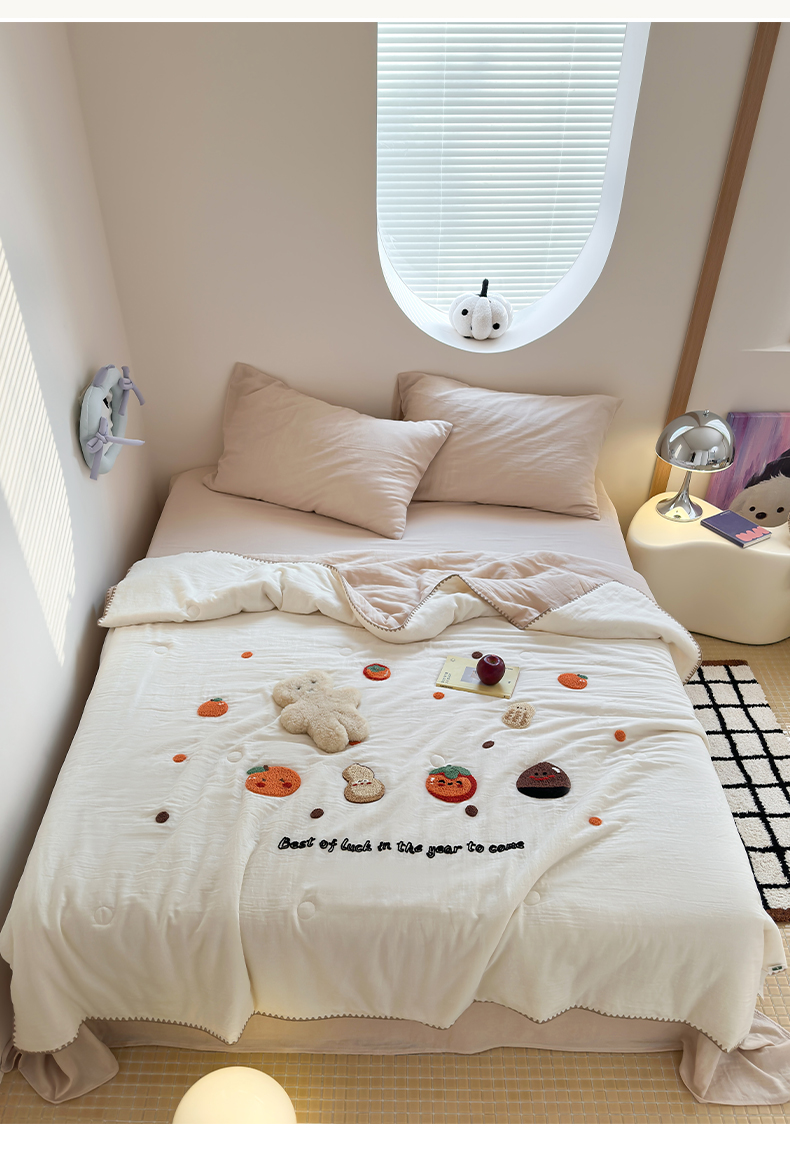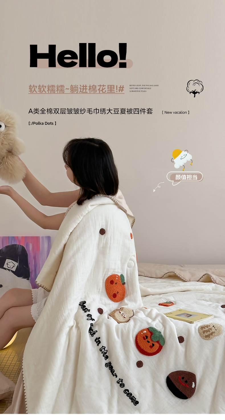 • 91家纺网 家纺一手货源 找家纺 一加一 2025新款全棉双层纱皱皱纱毛巾绣夏被被子被芯 甜甜小丸子