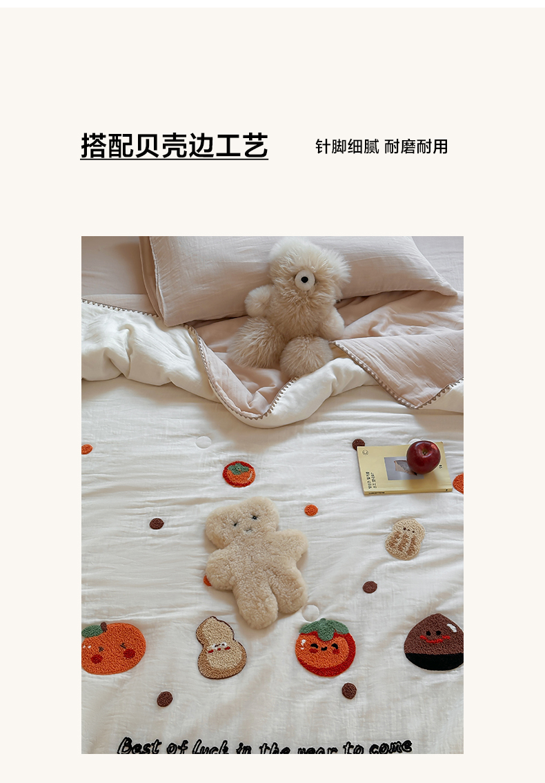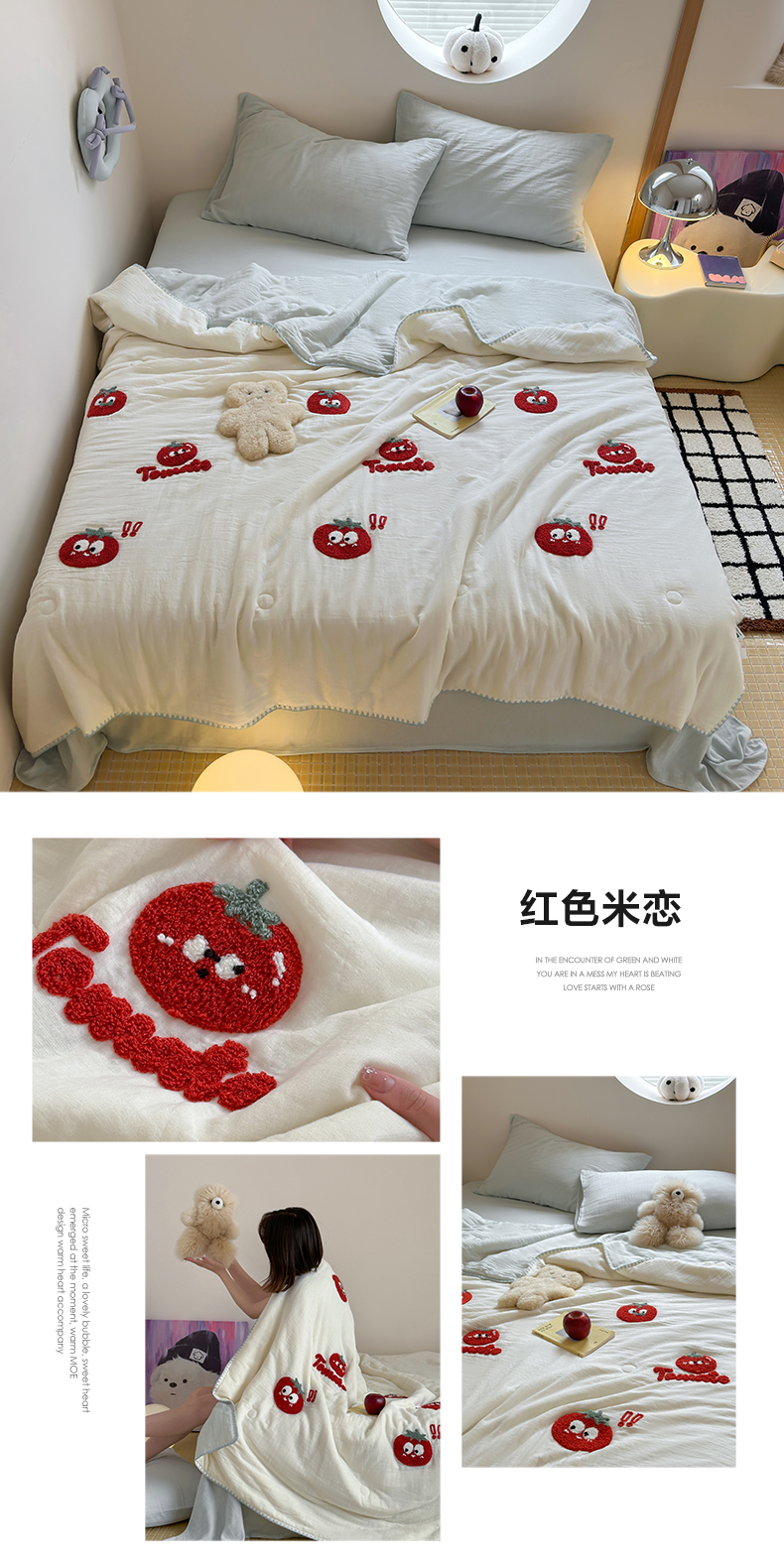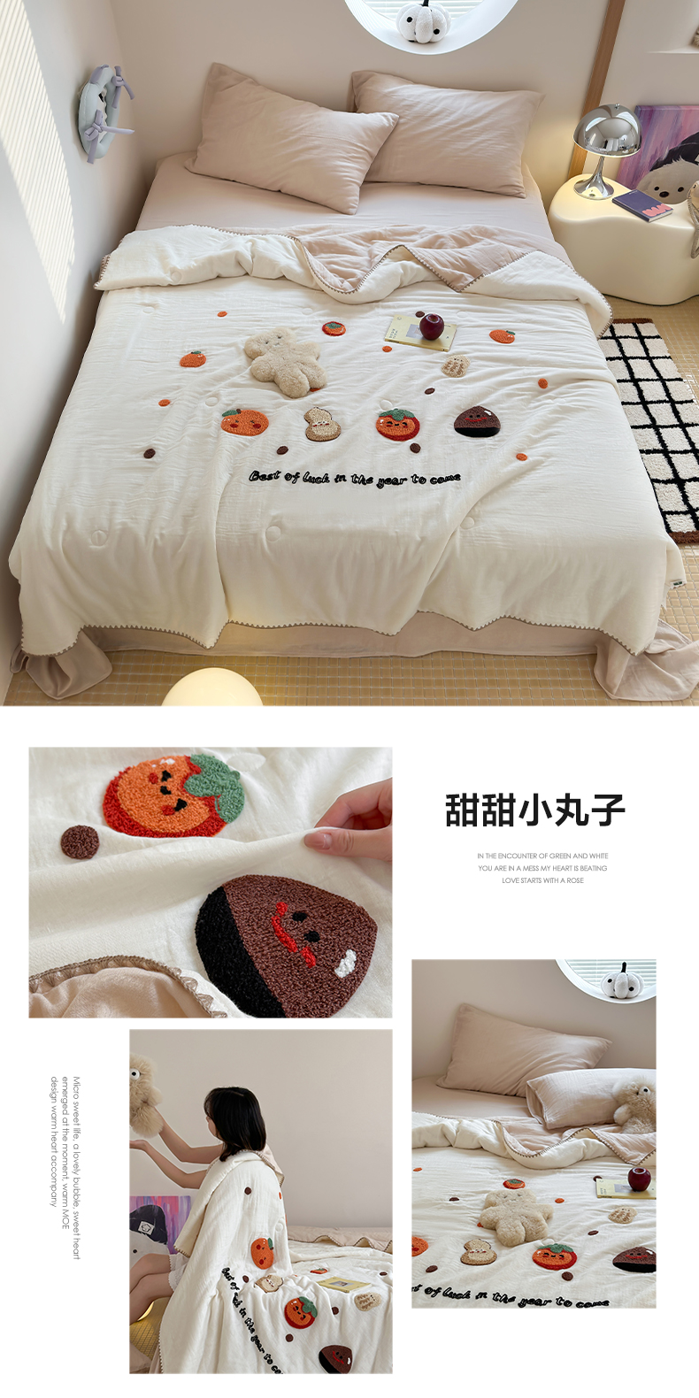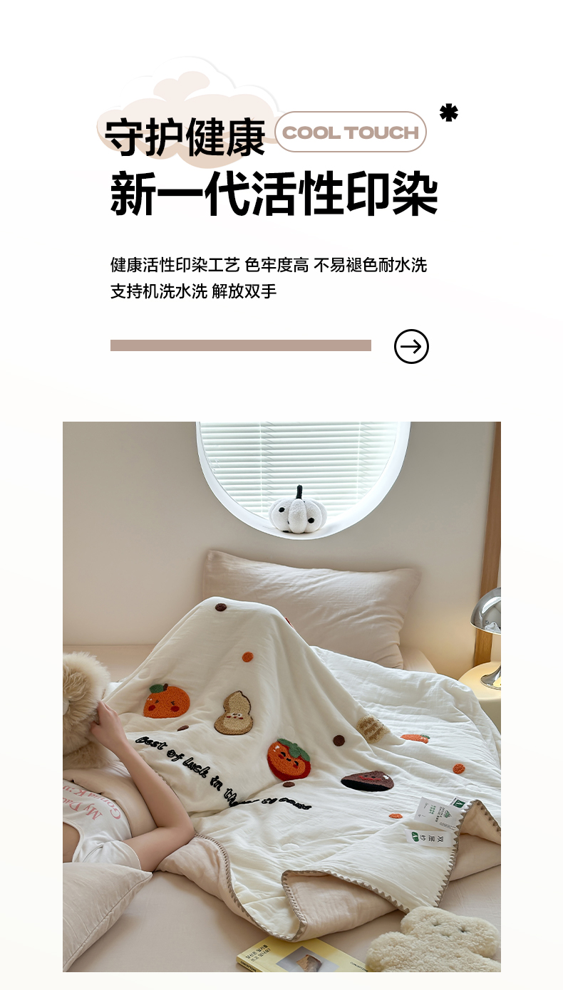 • 91家纺网 家纺一手货源 找家纺 一加一 2025新款全棉双层纱皱皱纱毛巾绣夏被被子被芯 甜甜小丸子