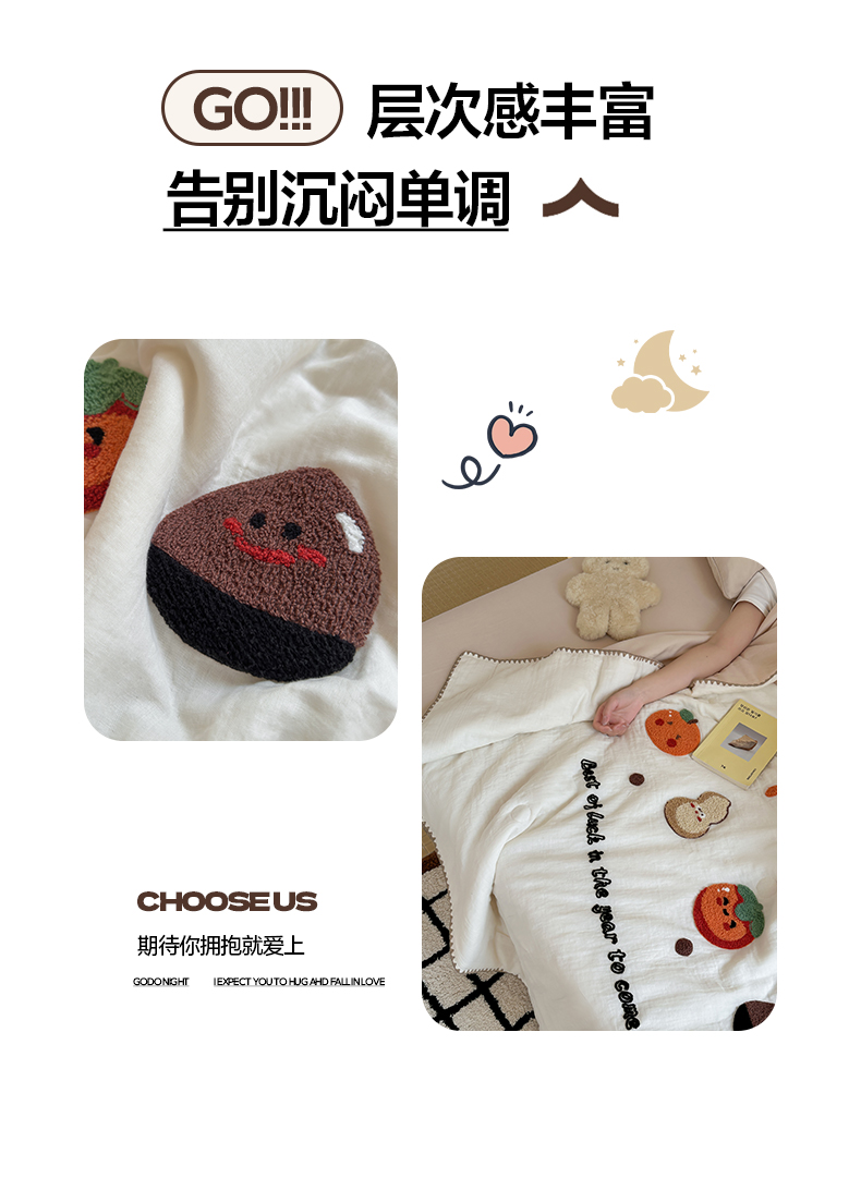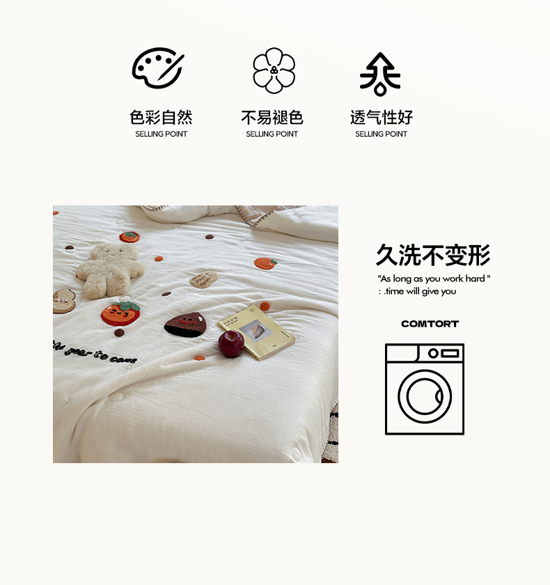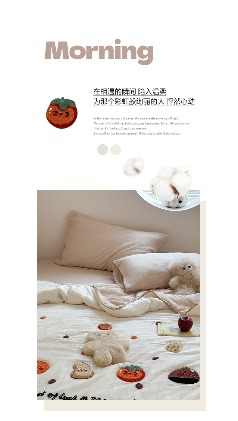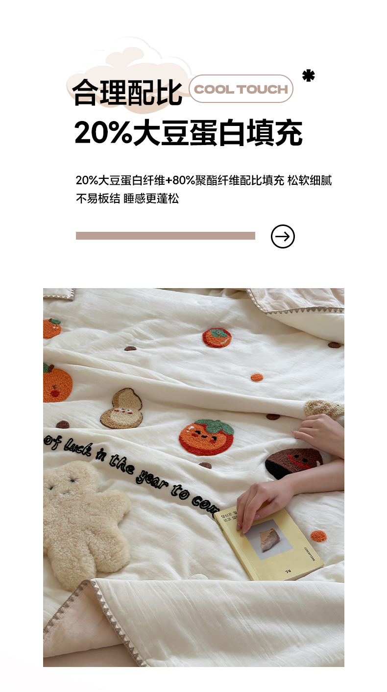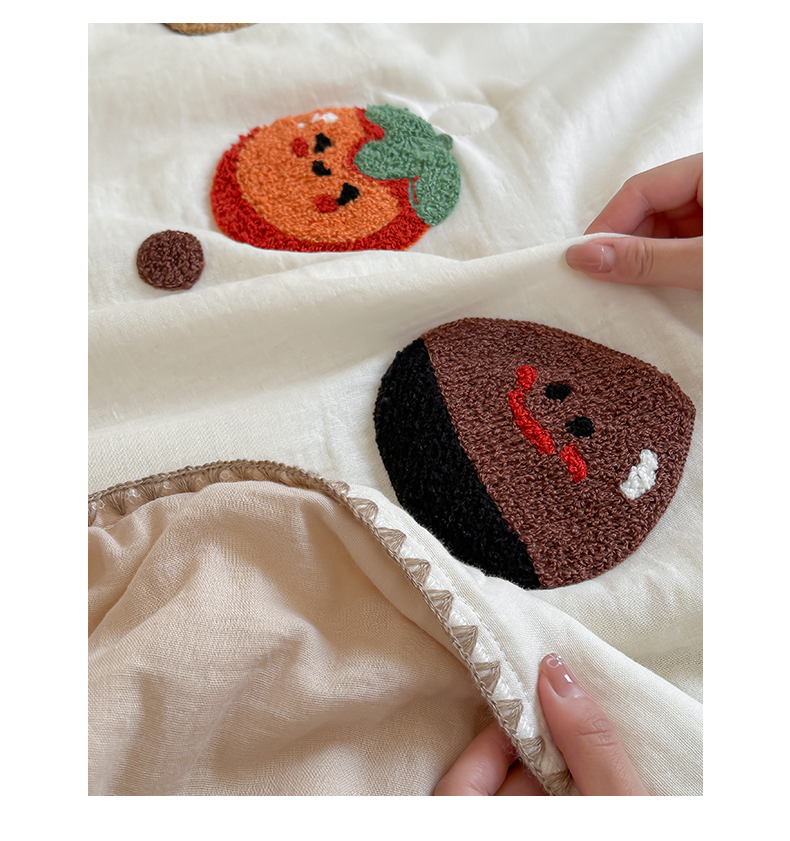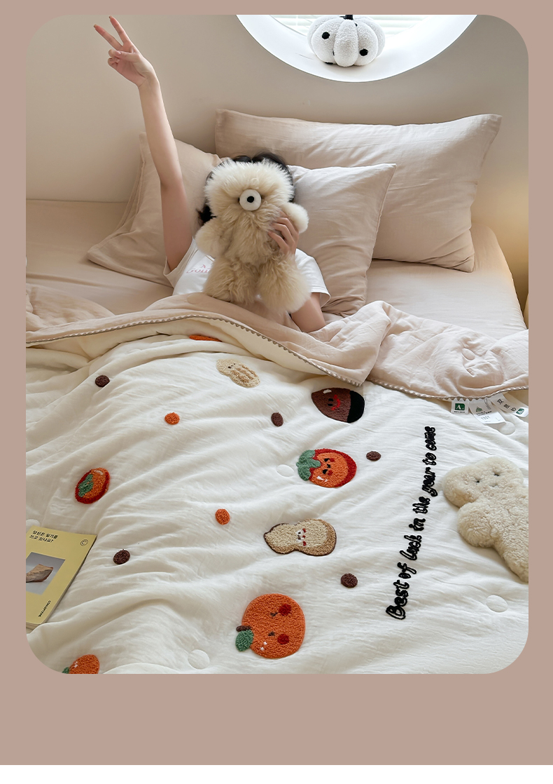 • 91家纺网 家纺一手货源 找家纺 一加一 2025新款全棉双层纱皱皱纱毛巾绣夏被被子被芯 甜甜小丸子