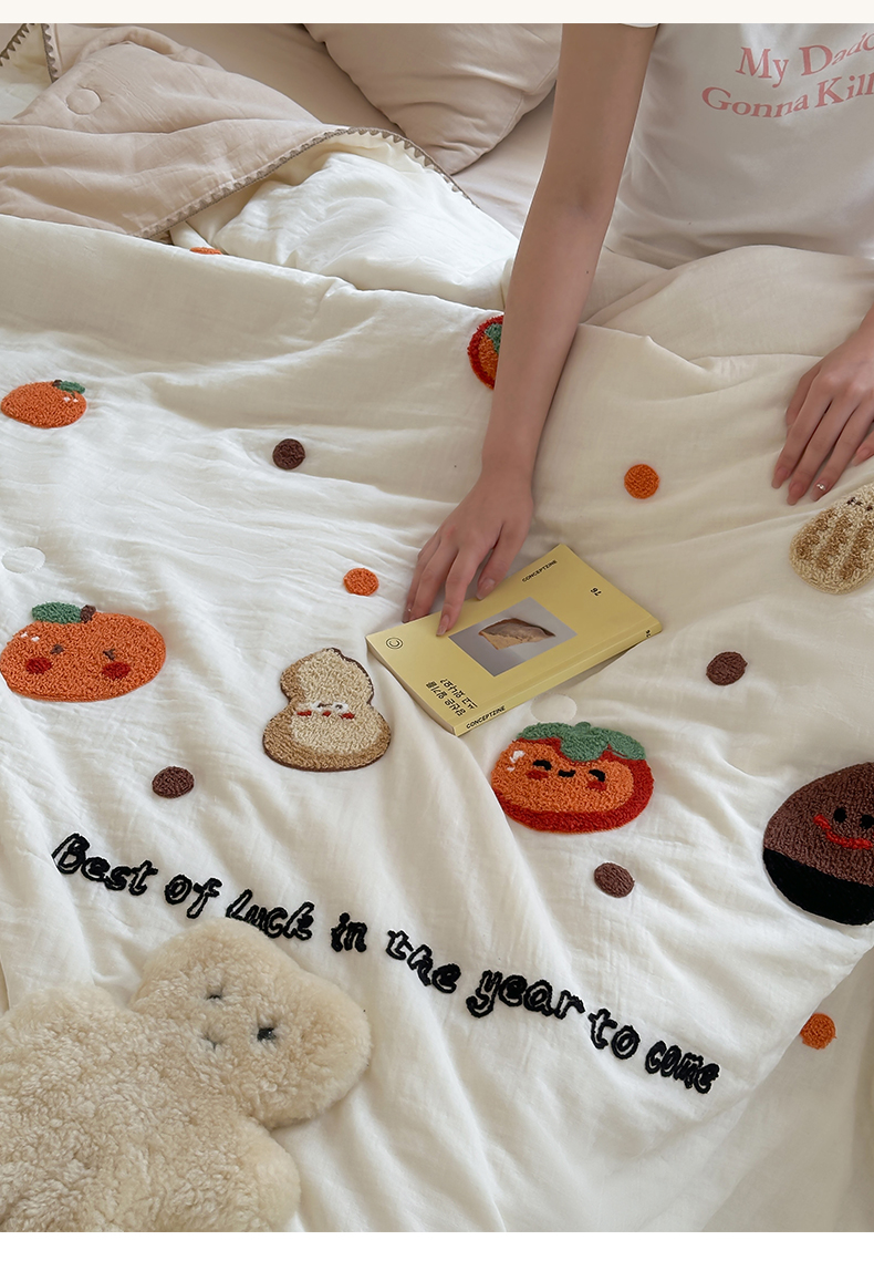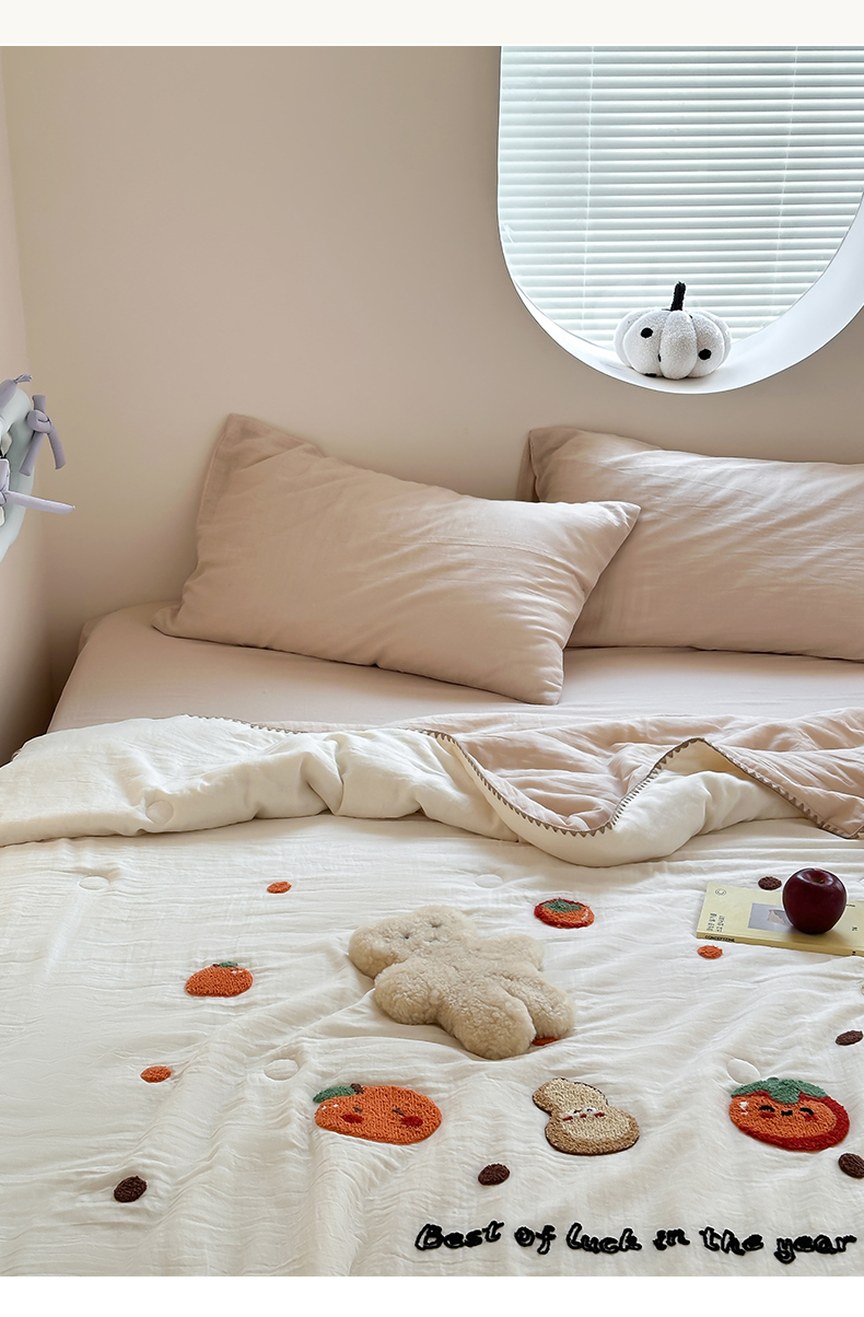 一加一 2025新款全棉双层纱皱皱纱毛巾绣夏被被子被芯 甜甜小丸子