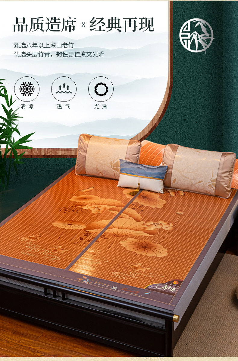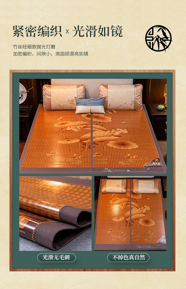 (总)新月家纺(锦威郎) 2025新款年年有余碳化刺绣双面席竹席