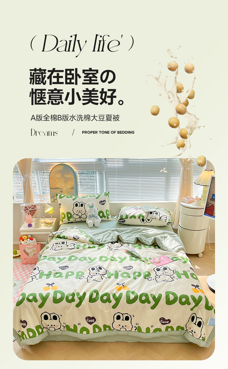 当前位置: 91家纺网 > 商品网购 > 床品套件 > 四件套 > 夏被四件套 > 一加一 2025新款A棉B水洗棉大豆夏被四件套 HAPPY狗