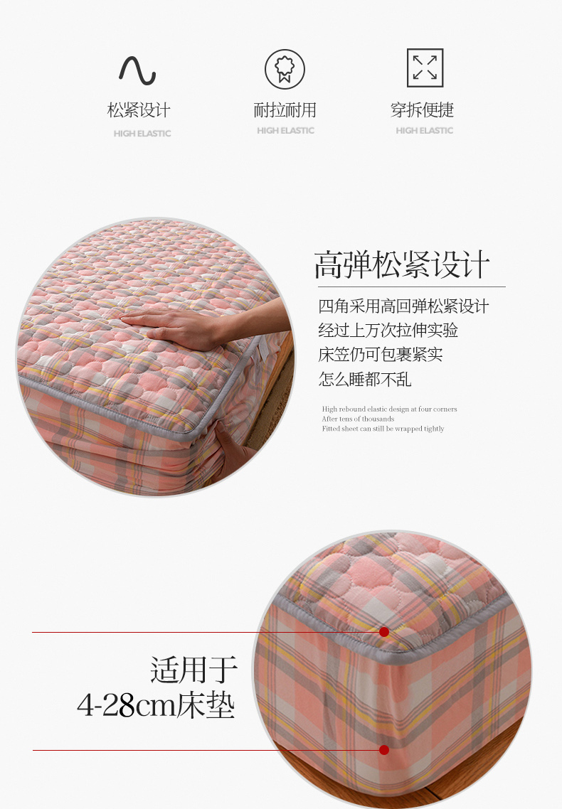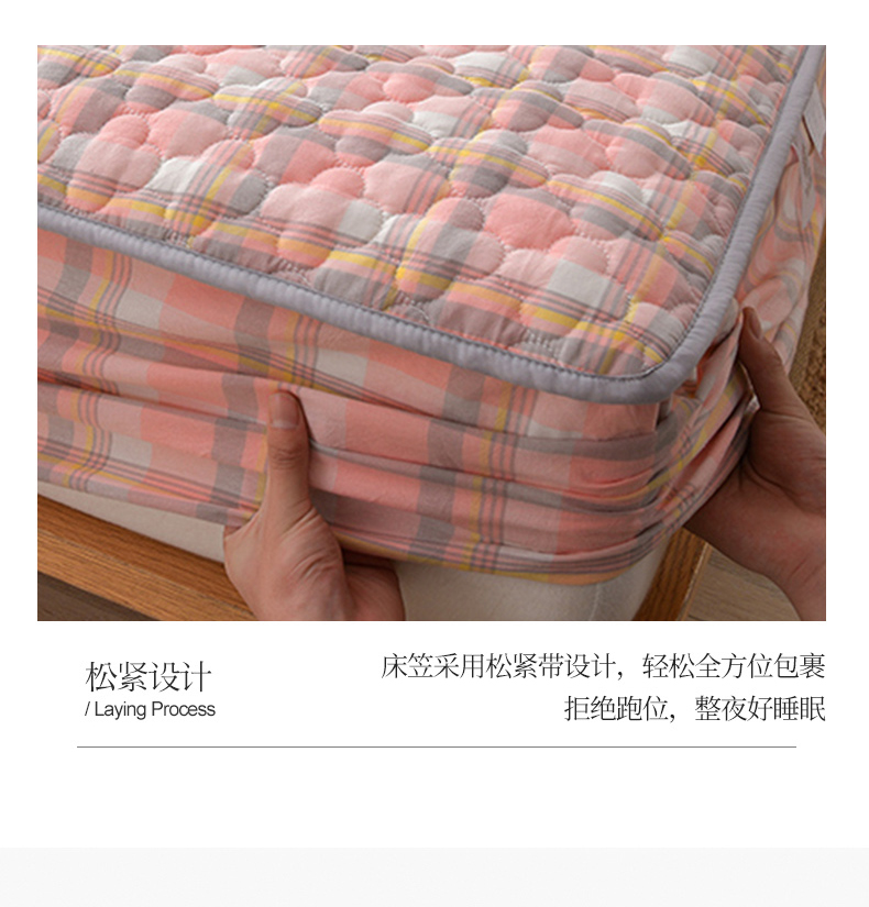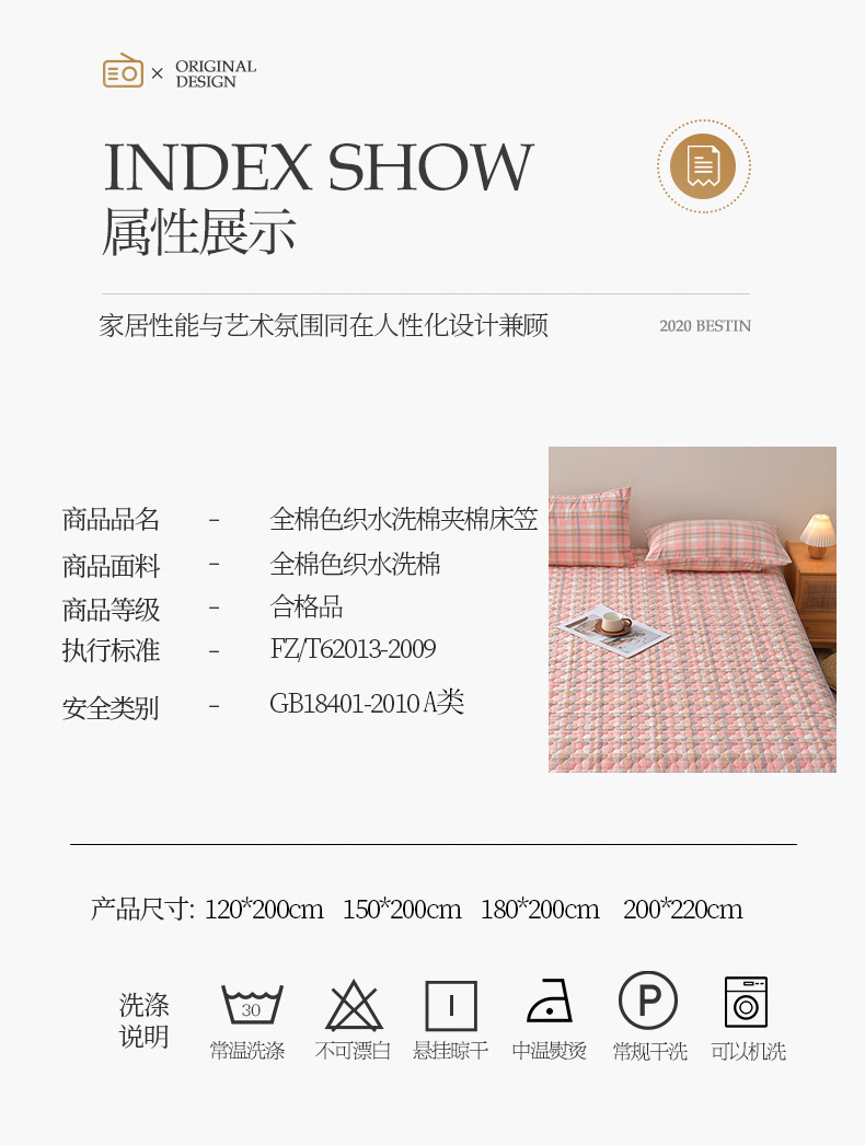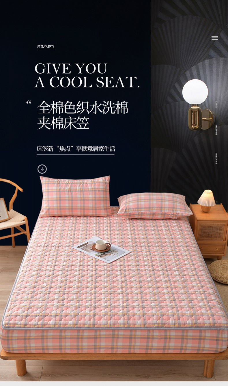 (总)乐逸家纺 2025新款无印风全棉色织水洗棉夹棉床笠,凯里灰,凯里粉,凯里绿,美拉德橘,千鸟格粉,千鸟格灰,千鸟格绿,千鸟格驼,千鸟格招财金,无印纯净白