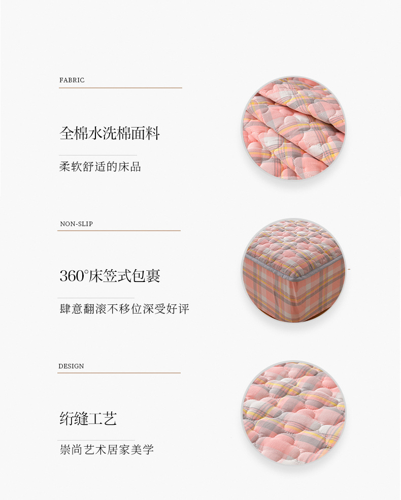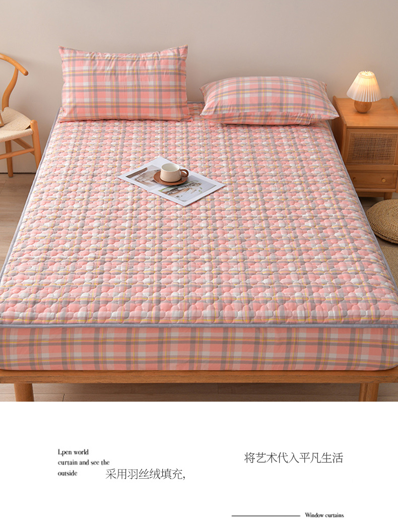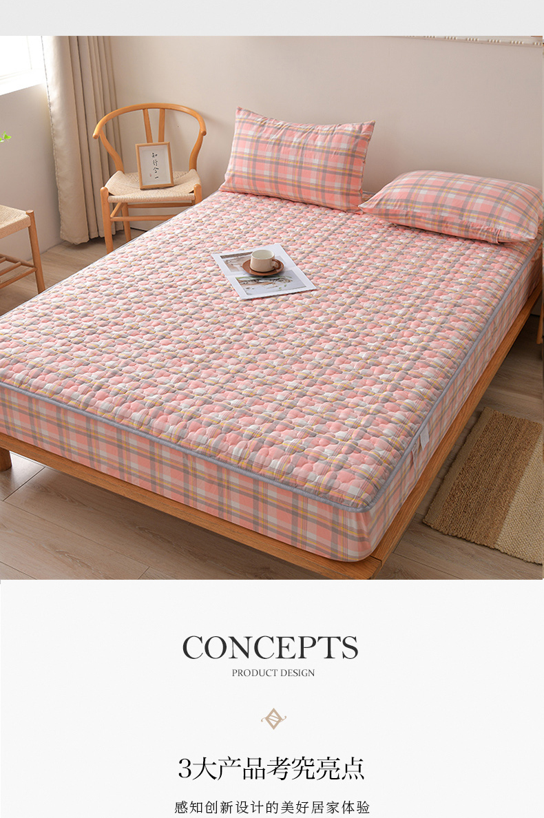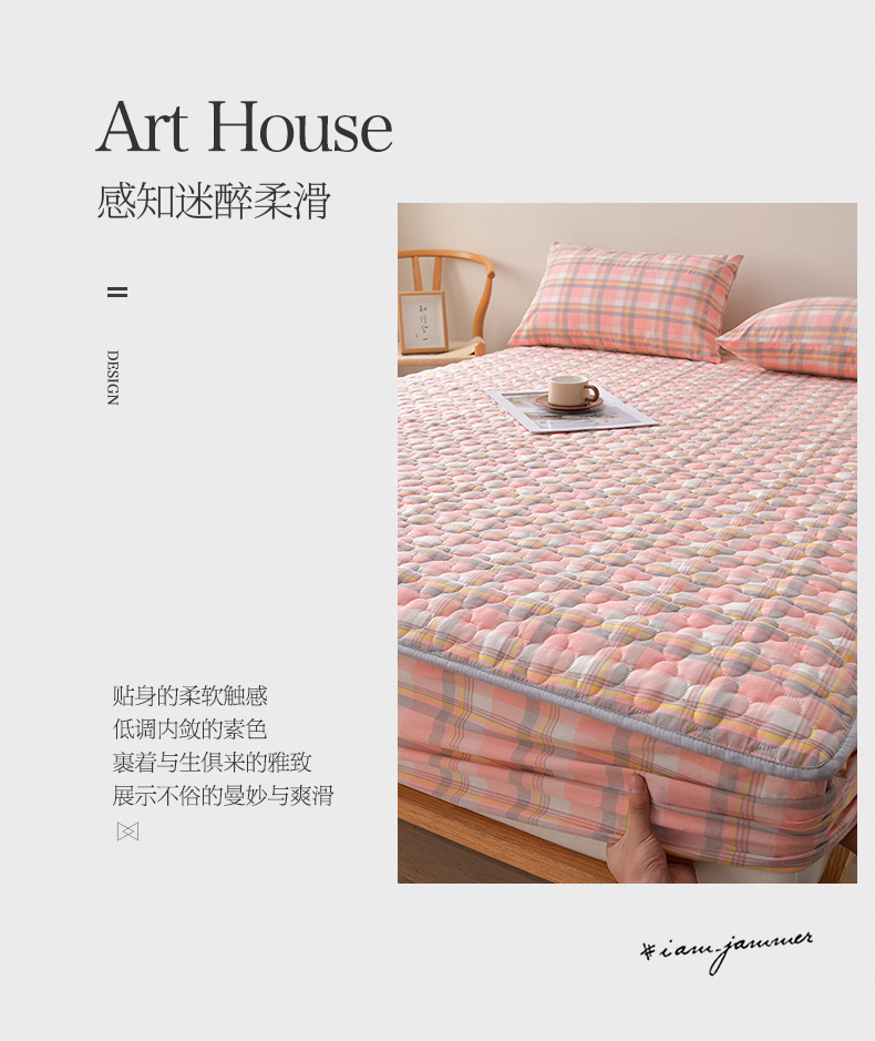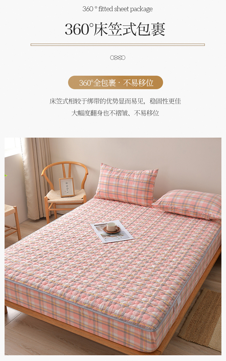 (总)乐逸家纺 2025新款无印风全棉色织水洗棉夹棉床笠,凯里灰,凯里粉,凯里绿,美拉德橘,千鸟格粉,千鸟格灰,千鸟格绿,千鸟格驼,千鸟格招财金,无印纯净白