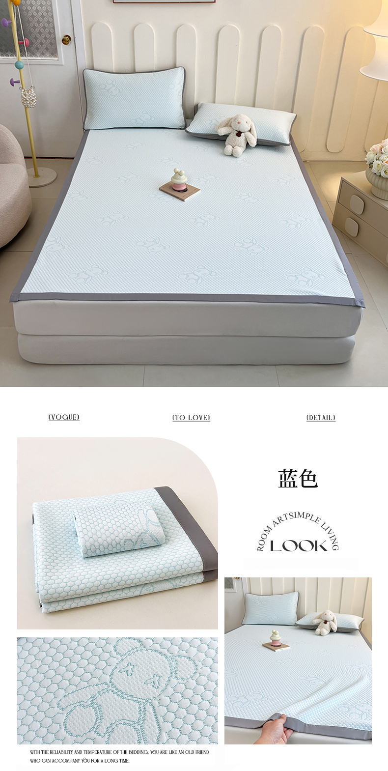 (总)2025新款冰豆豆凉席三件套软席子