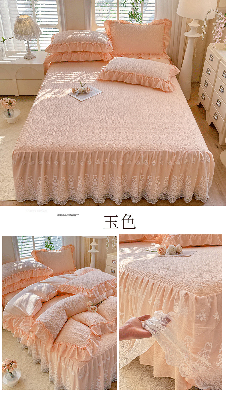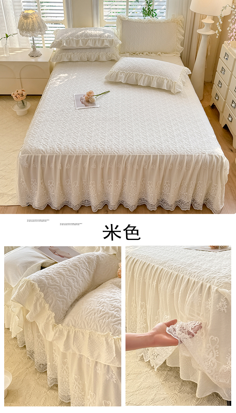 商品名称:(总)花香四季家纺 2025新款夹棉绗缝床裙单件三件套法式四件套套件蕾丝公主风