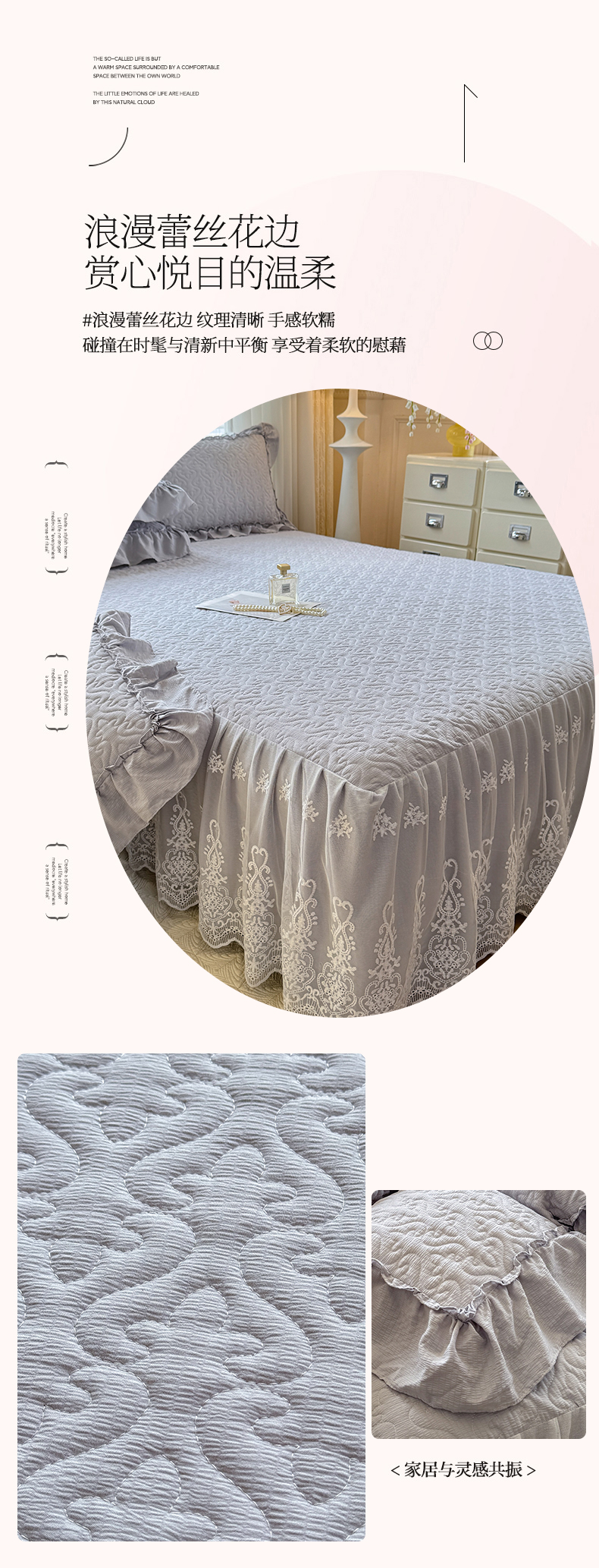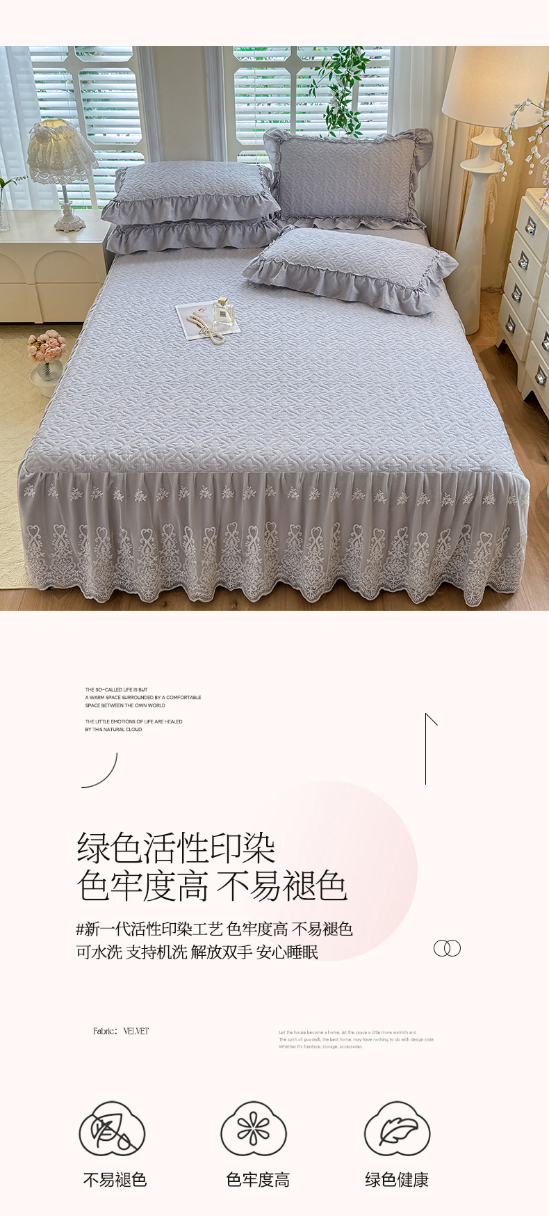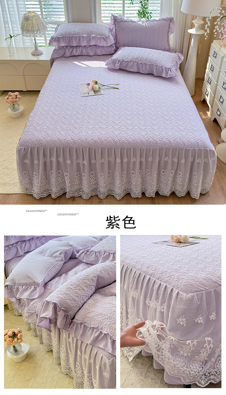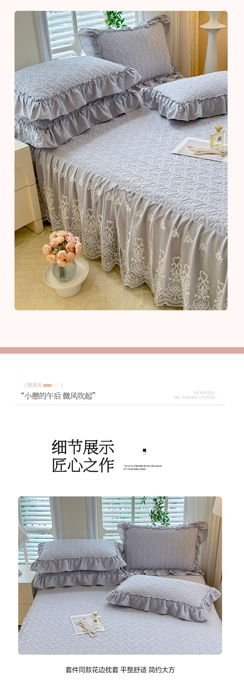 (总)花香四季家纺 2025新款夹棉绗缝床裙单件三件套法式四件套套件蕾丝公主风,灰色,绿色,米色,玉色,紫色