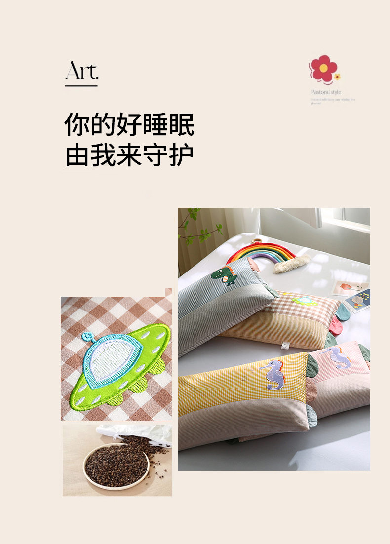 当前位置: 91家纺网 > 商品网购 > 枕头/枕芯/保健枕/颈椎枕 > 普通枕芯 > 2025全棉水洗棉贴布绣儿童荞麦枕头幼儿园学生枕芯 粉小格