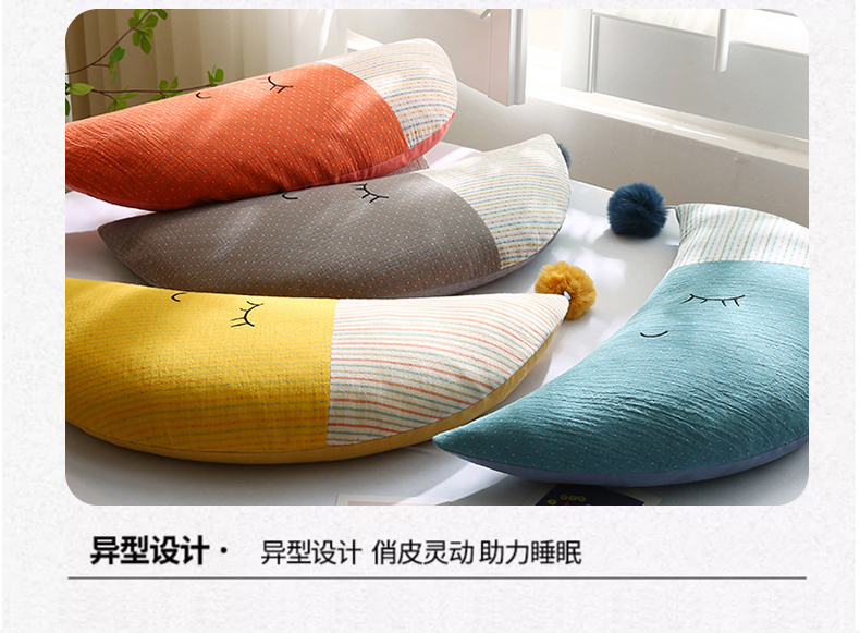 (总)蔻眠 花边款多功能全棉月亮长抱枕夹腿抱枕芯月亮枕头,主图,花边款月亮-驼格,花边款月亮-橙格,花边款月亮-灰格,花边款月亮-绿格