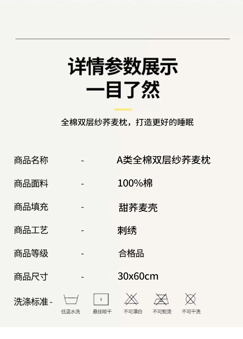 商品名称:(总)2025月亮全棉双层纱儿童荞麦枕头学生成人护颈枕芯