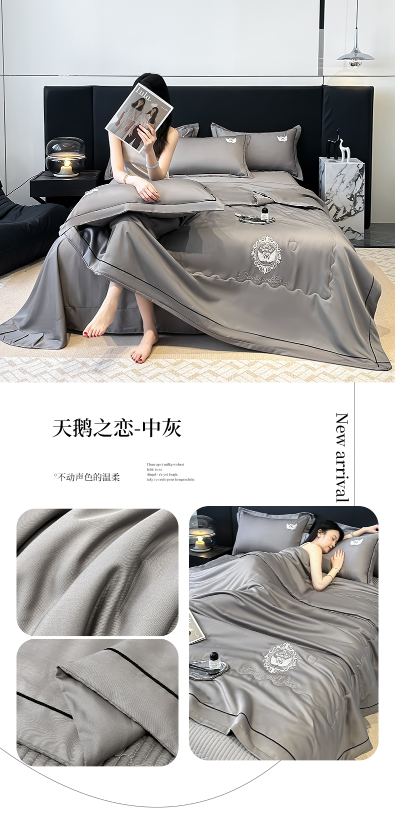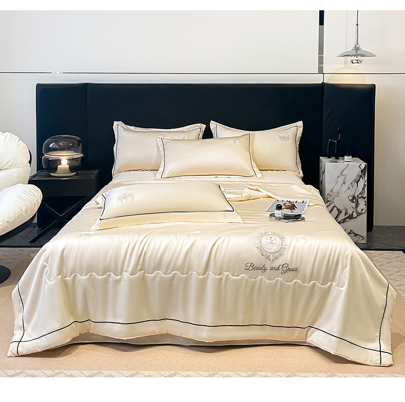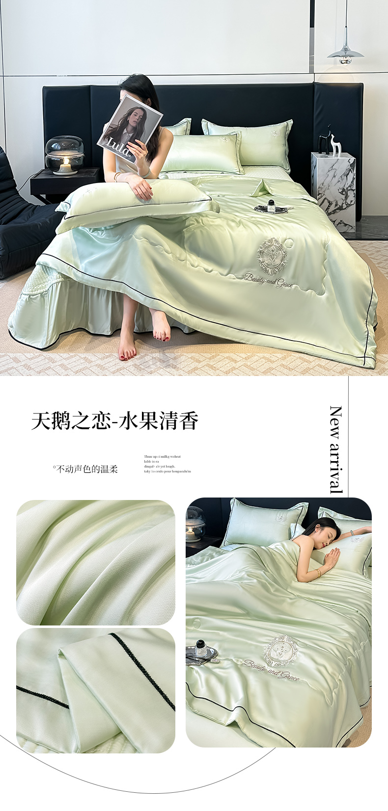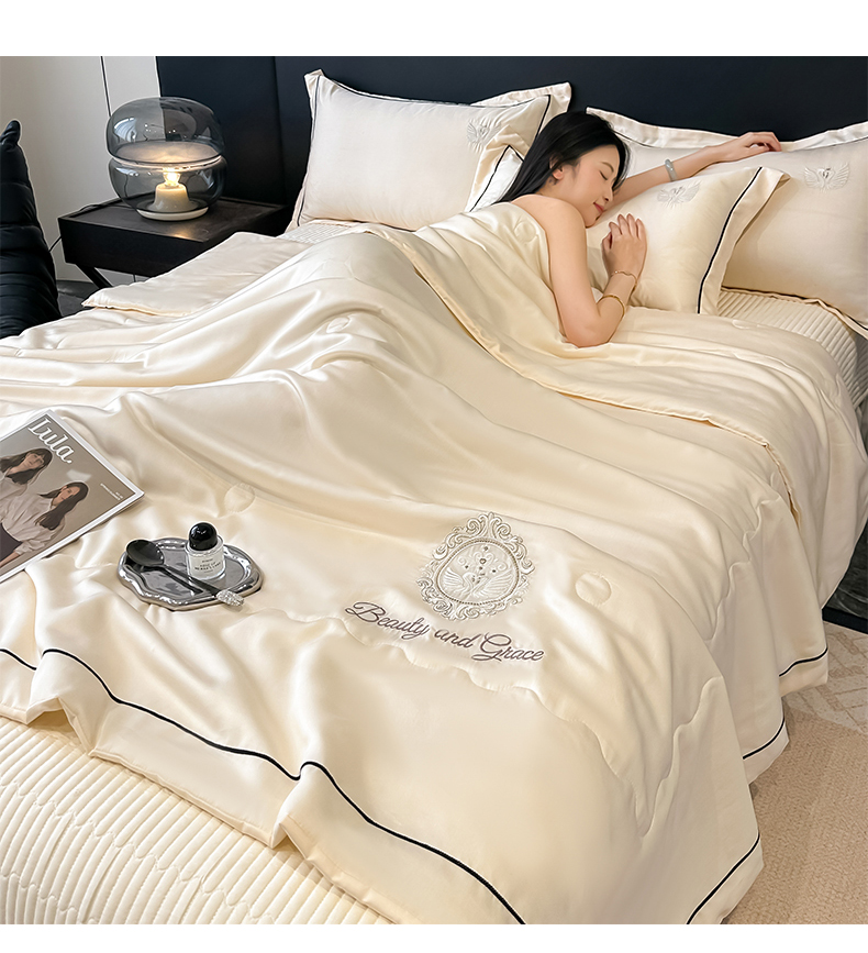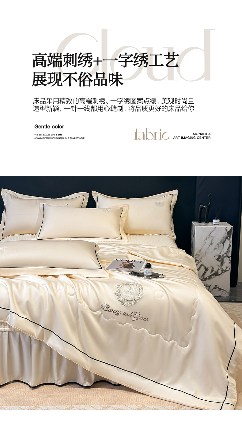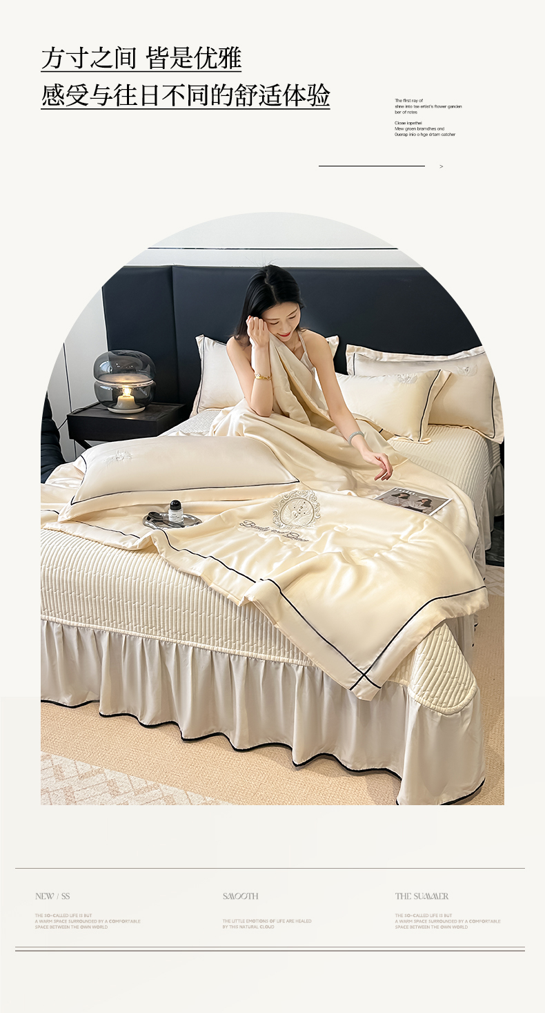 (总)富米莱(原臻工厂) 2025新款水洗真丝冰丝刺绣夏被床盖四件套夏凉被