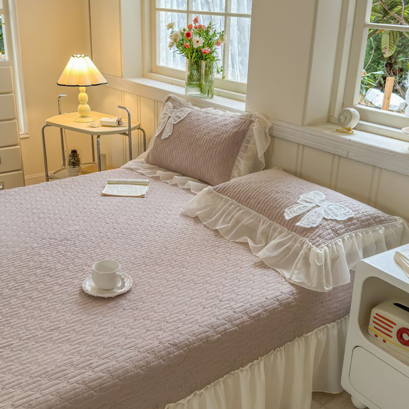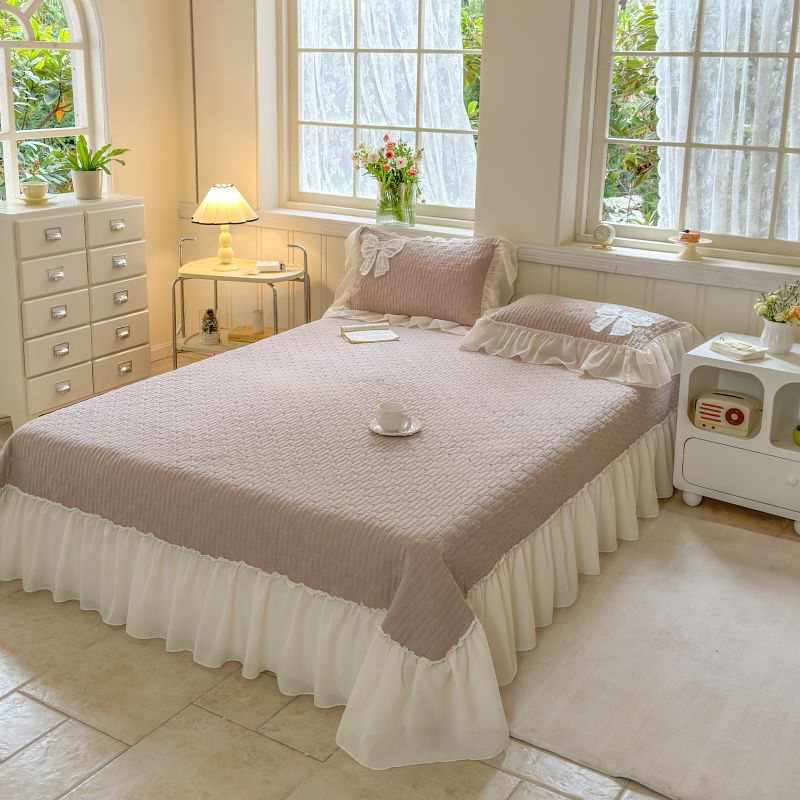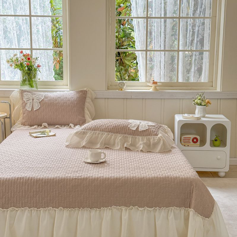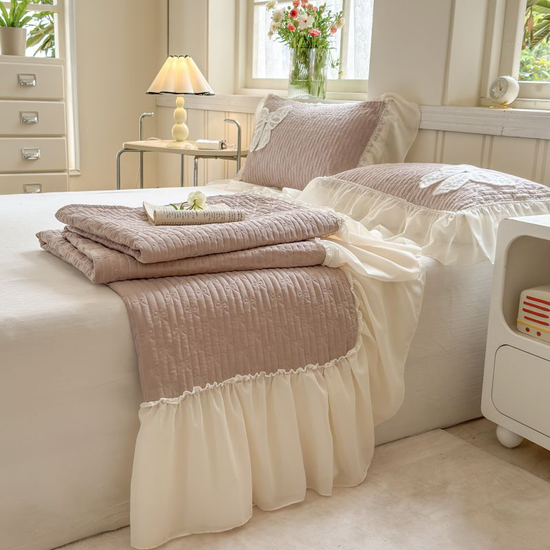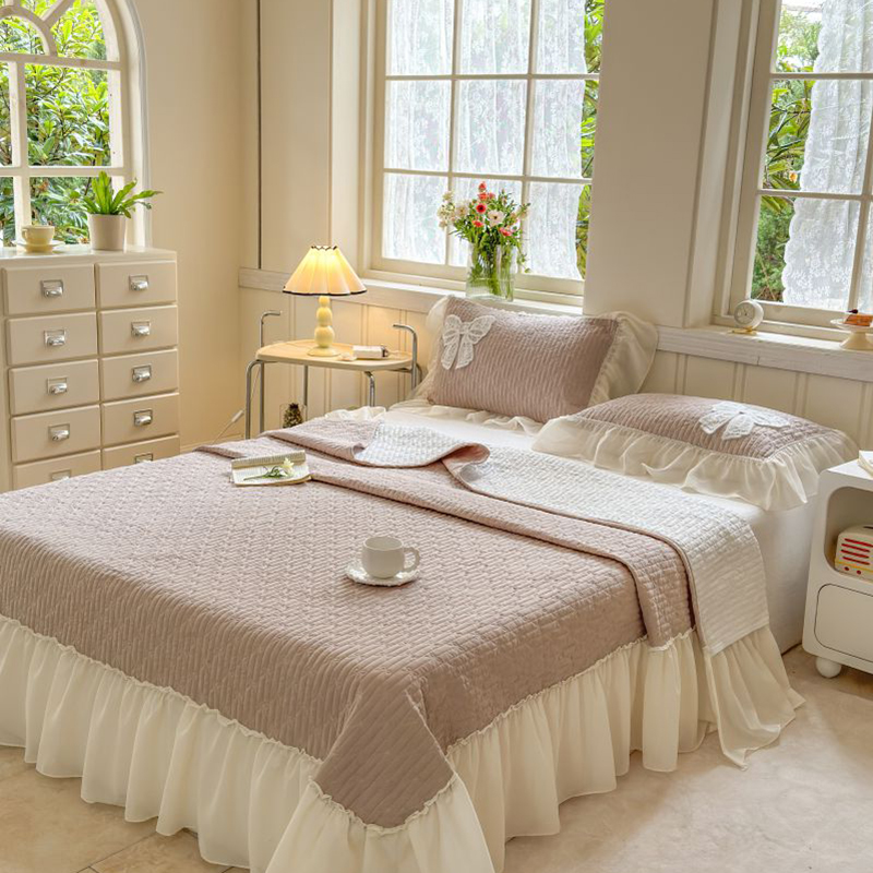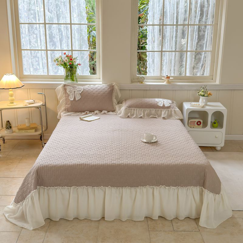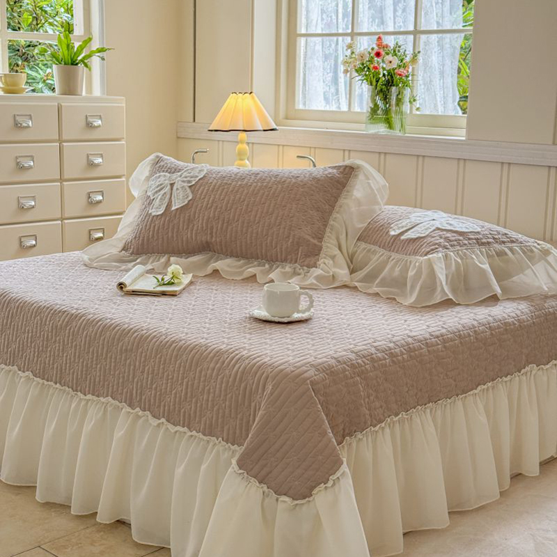 商品名称:八方汇 2025新款雪纺床盖三件套 奶茶色