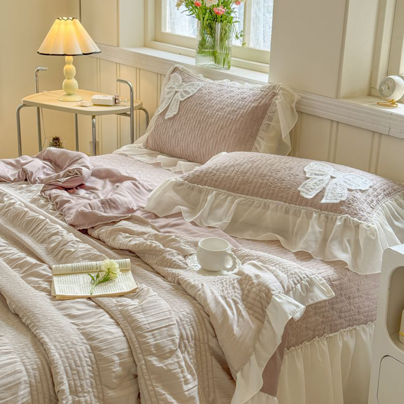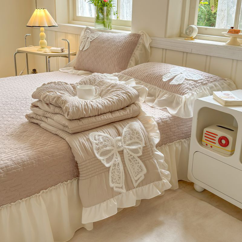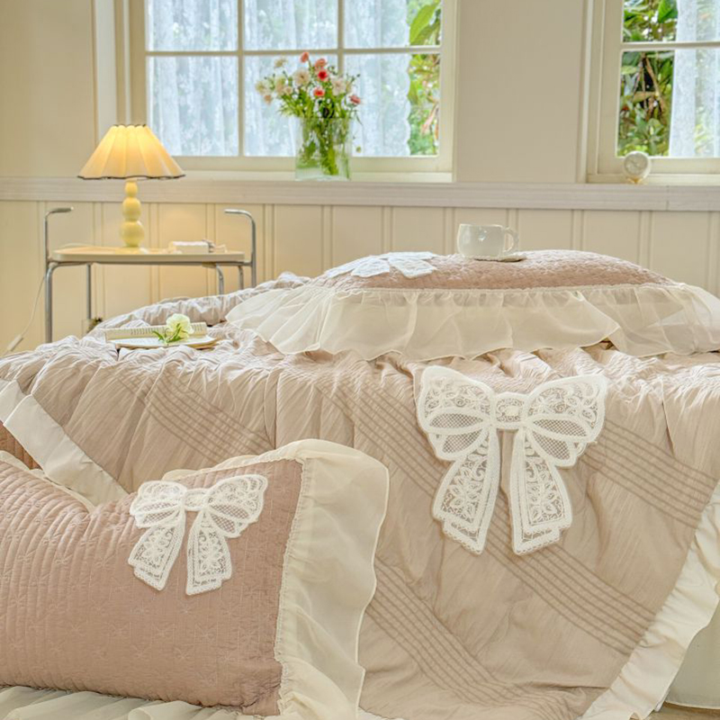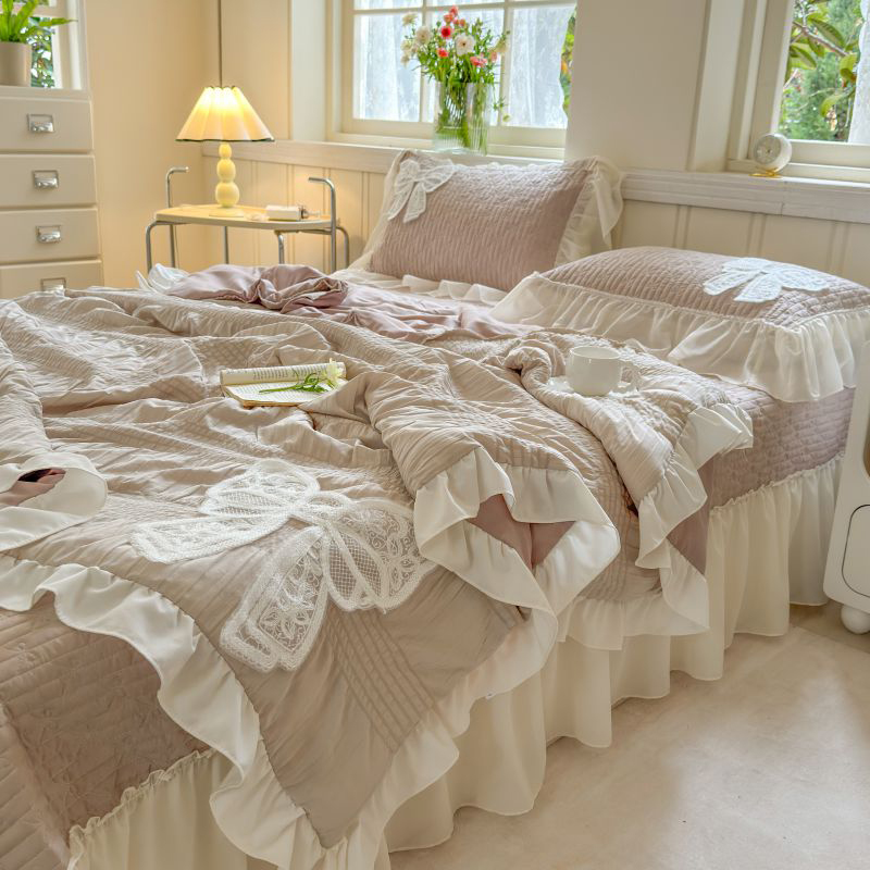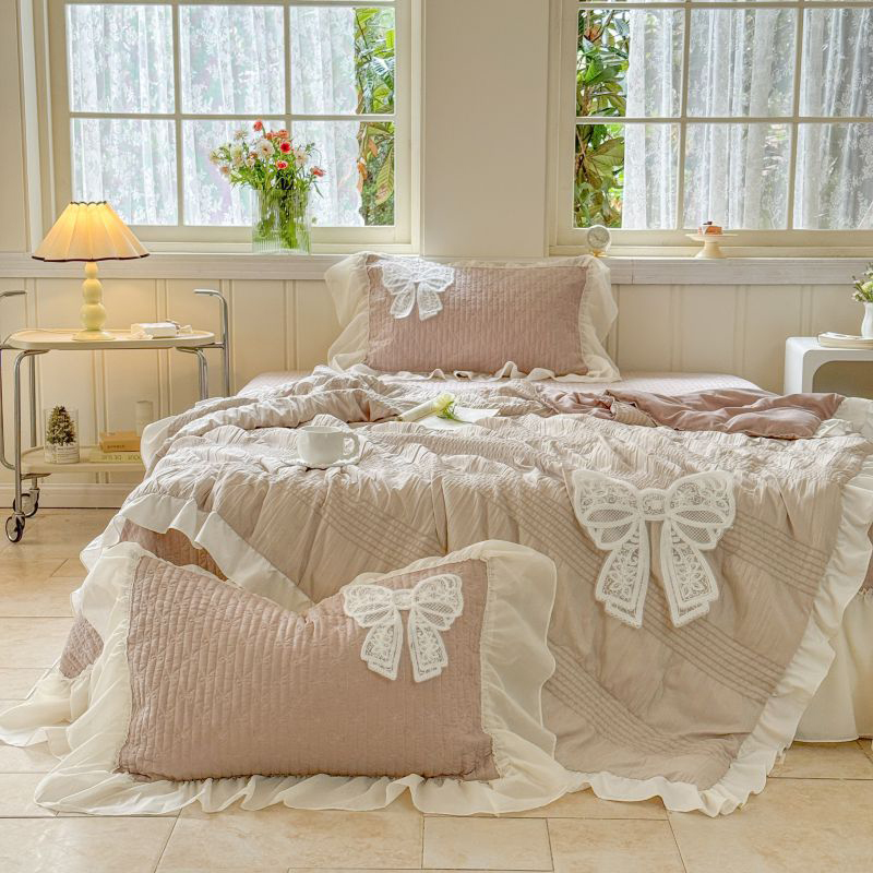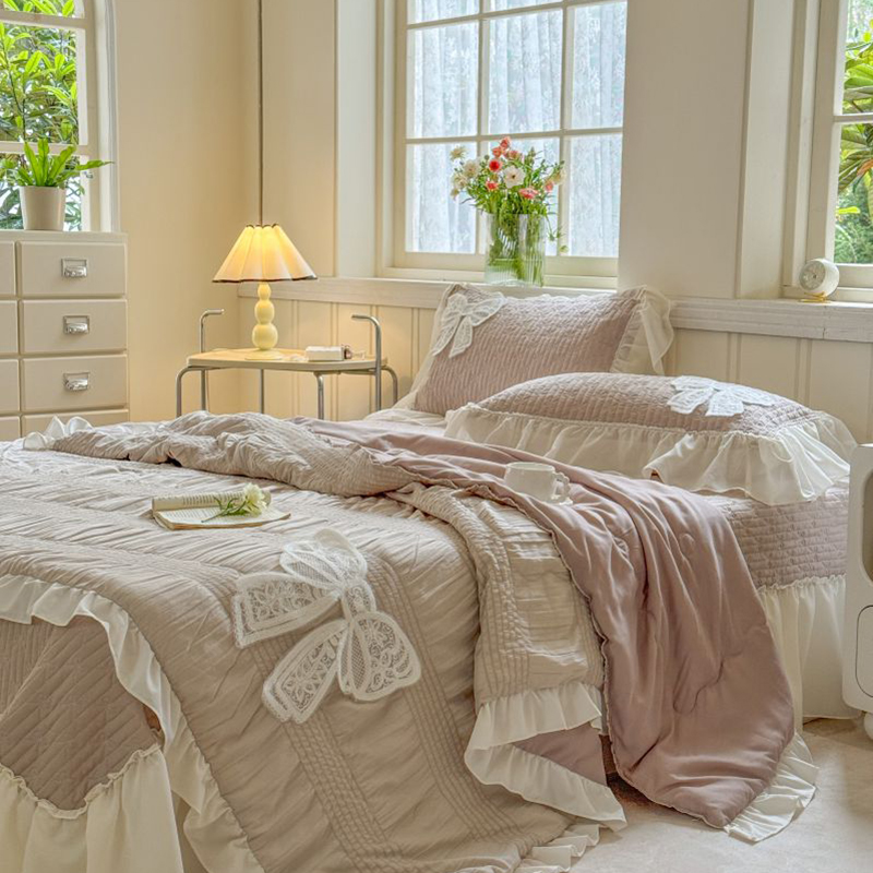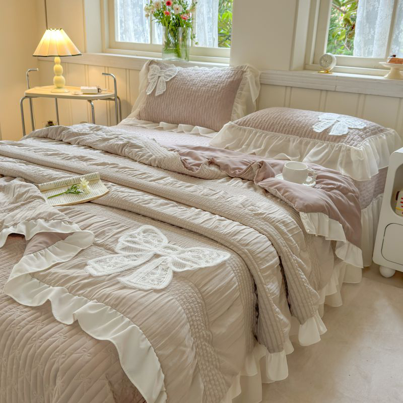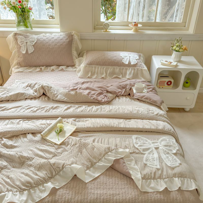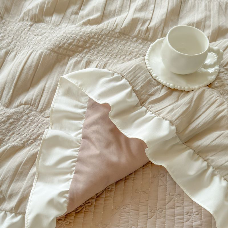 八方汇 2025新款雪纺床盖夏被四件套 奶茶色