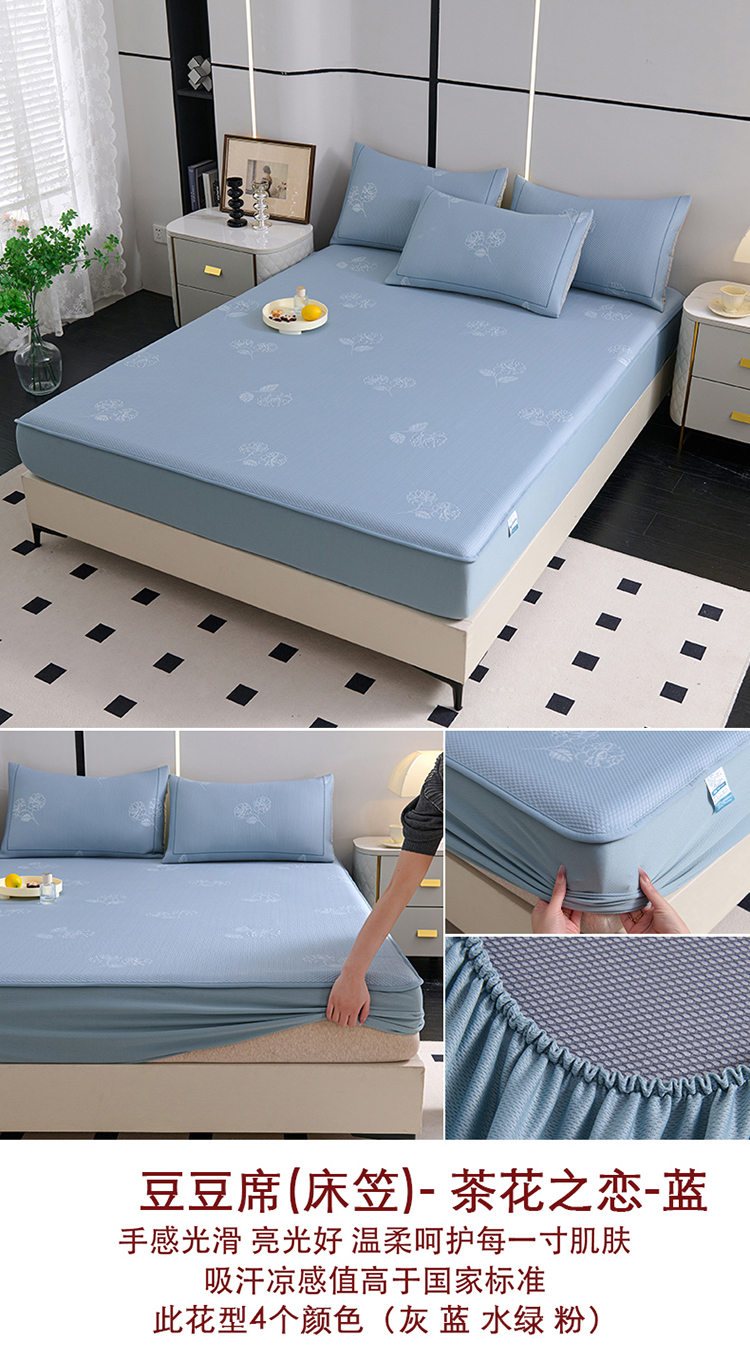 商品名称:席之家 2025新款3D冰感床笠款豆豆席 床笠-茶花之恋-蓝