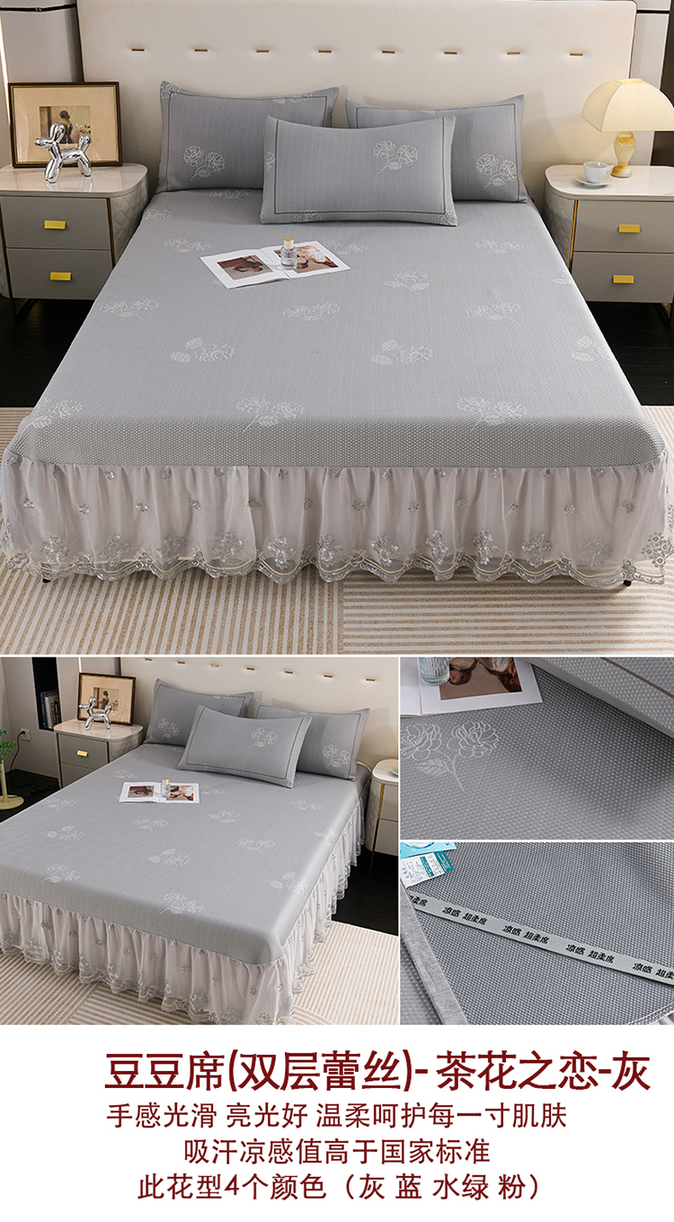 席之家 2025新款3D冰感蕾丝床裙豆豆席 蕾丝-茶花之恋-灰